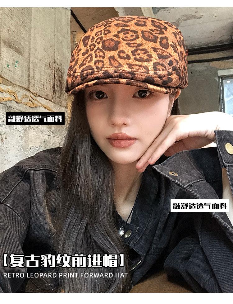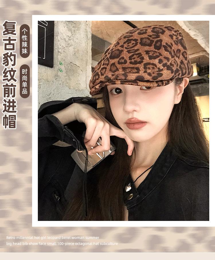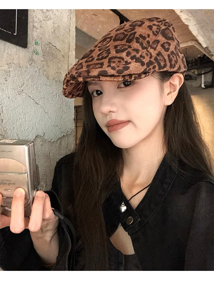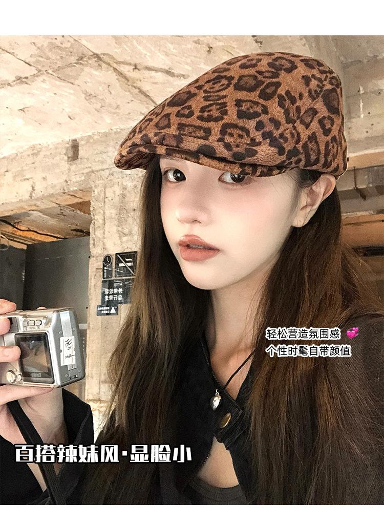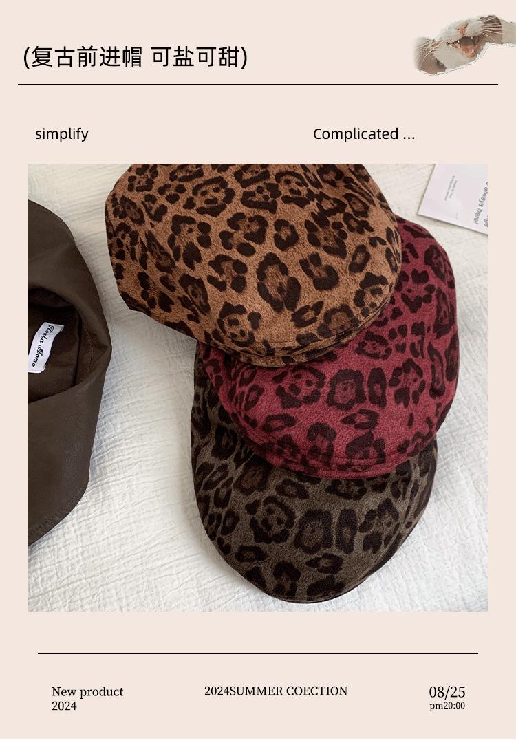 Sombrero estilo americano con estampado de leopardo retro para mujer, moda de otoño e invierno, combina con todo, pequeño, dulce y fresco, estilo Spice Girl, con lengüeta de pato, Bailey.
