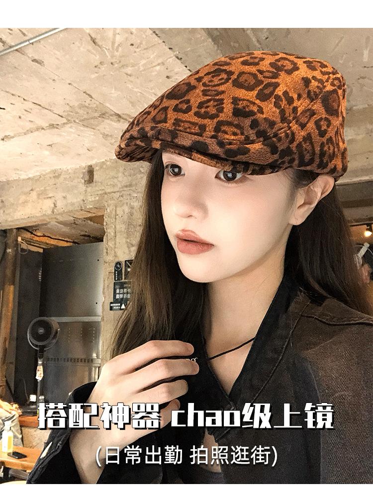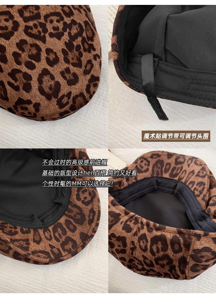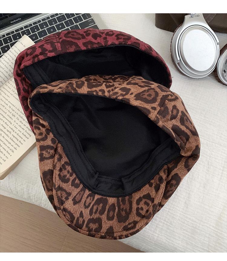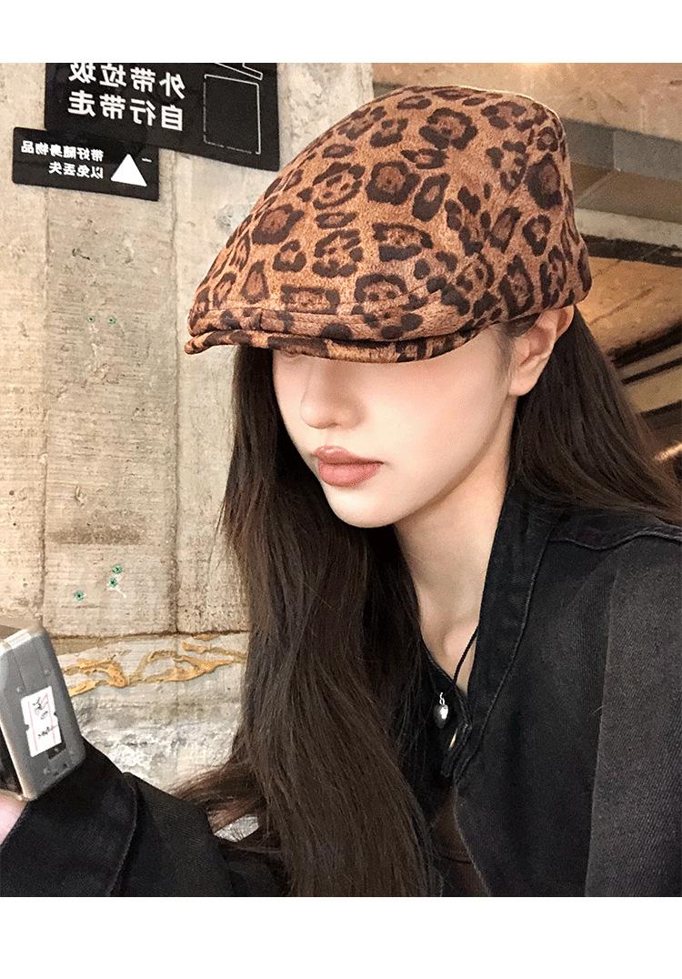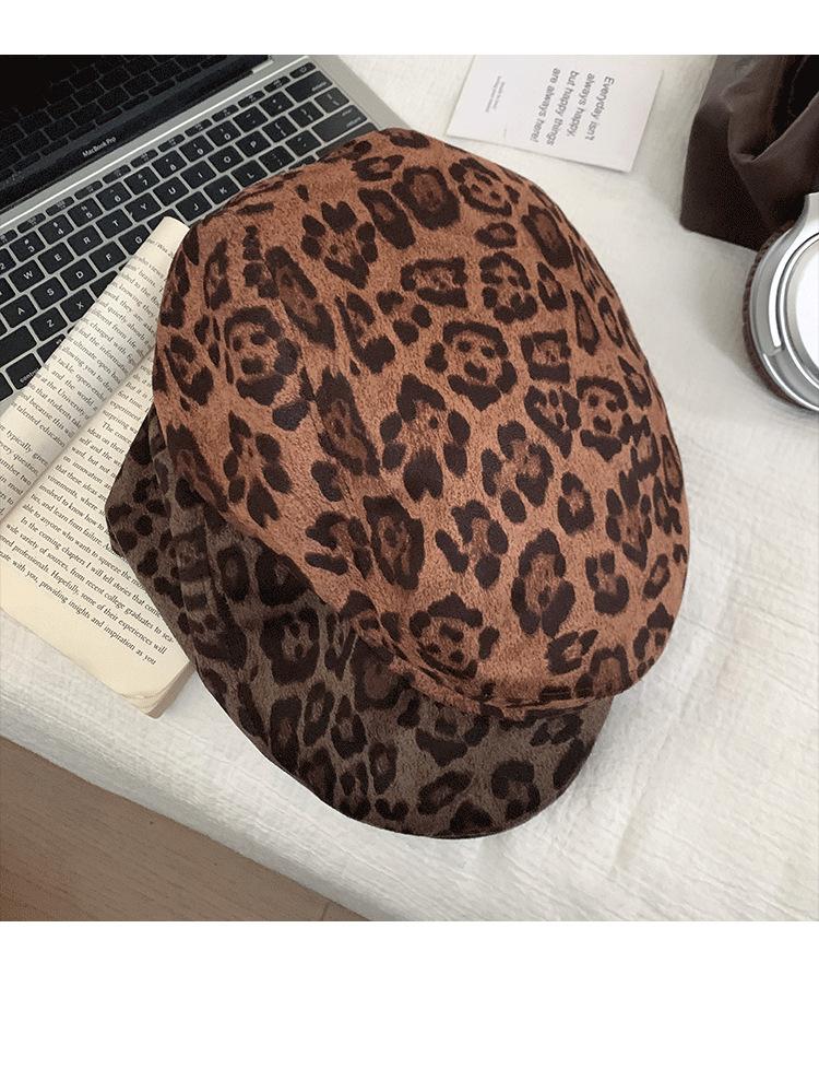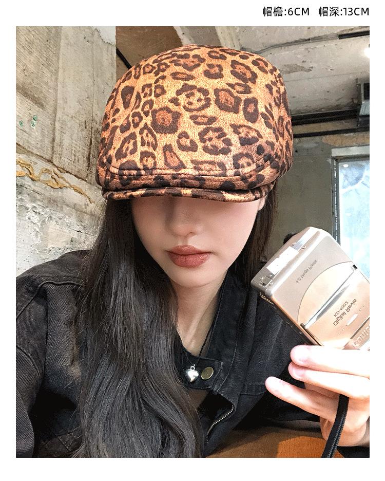 Sombrero estilo americano con estampado de leopardo retro para mujer, moda de otoño e invierno, combina con todo, pequeño, dulce y fresco, estilo Spice Girl, con lengüeta de pato, Bailey.