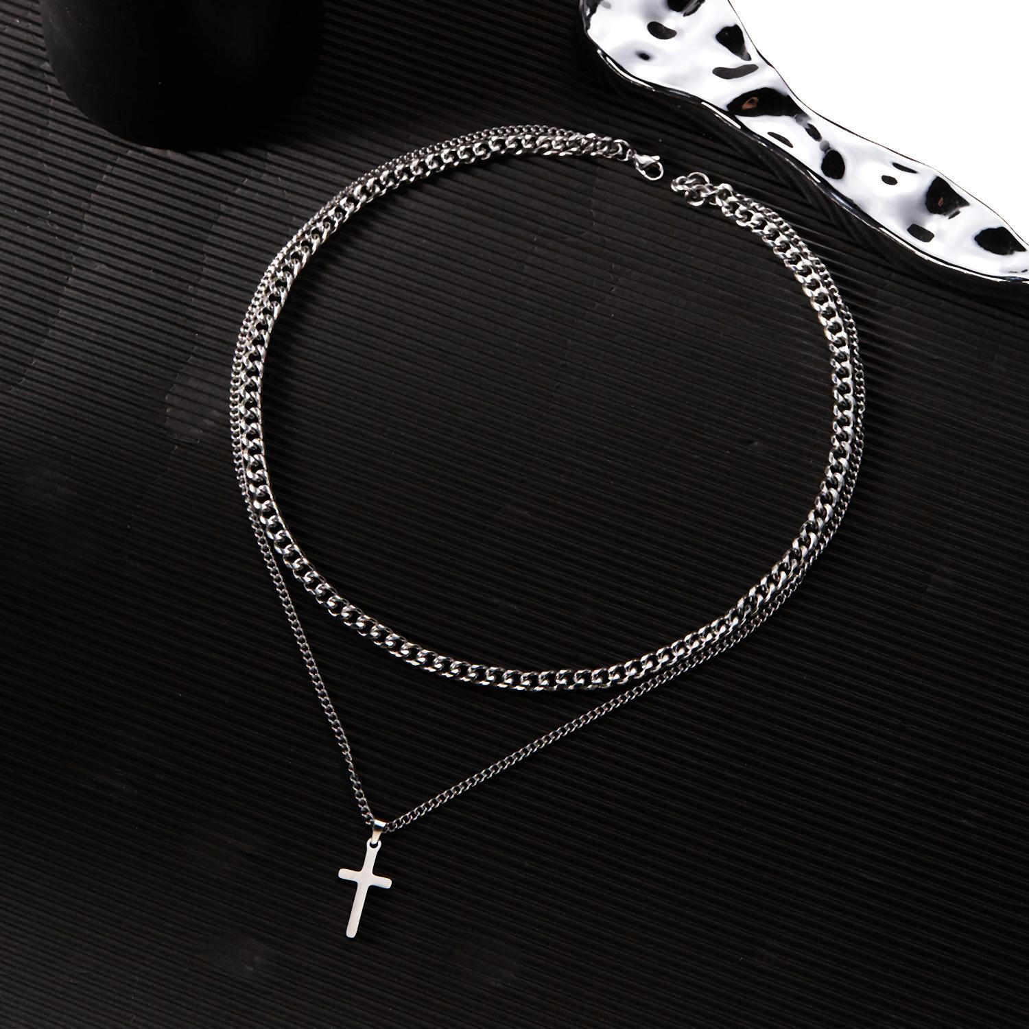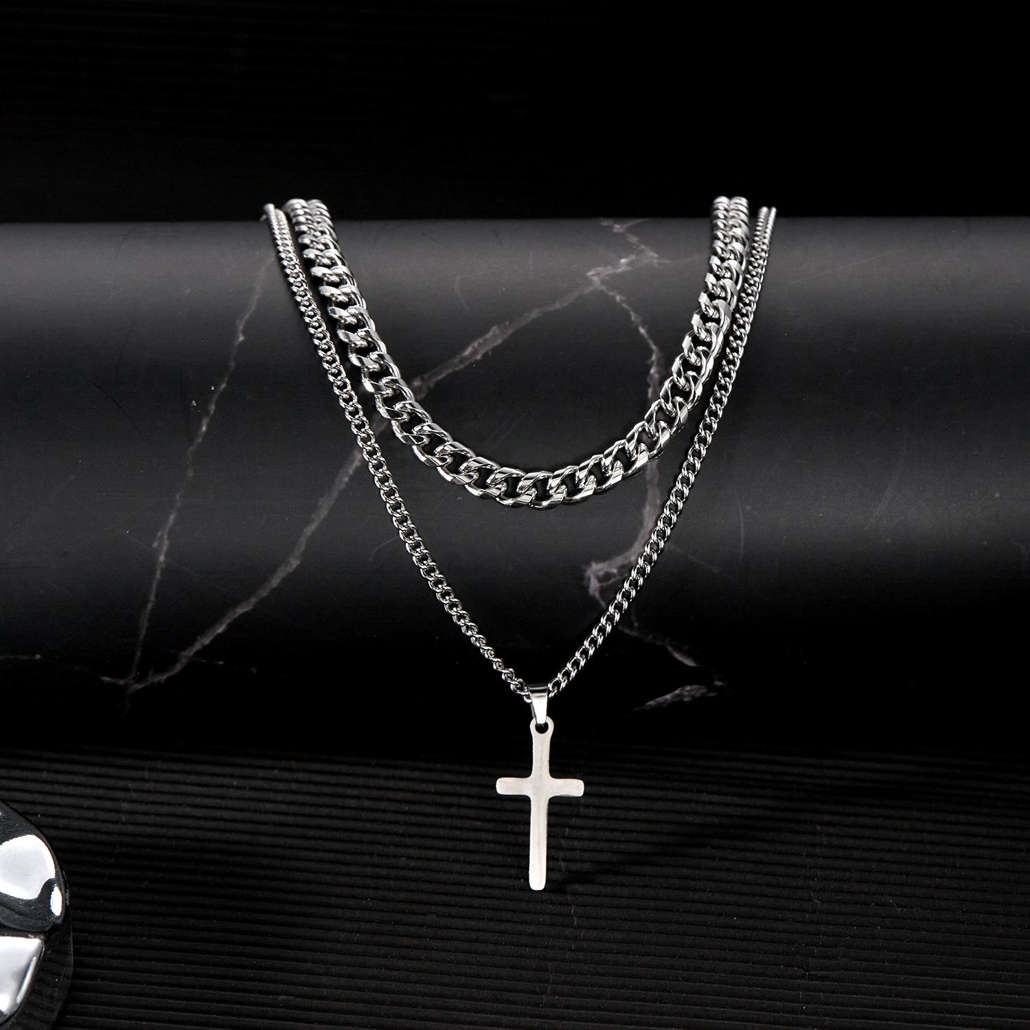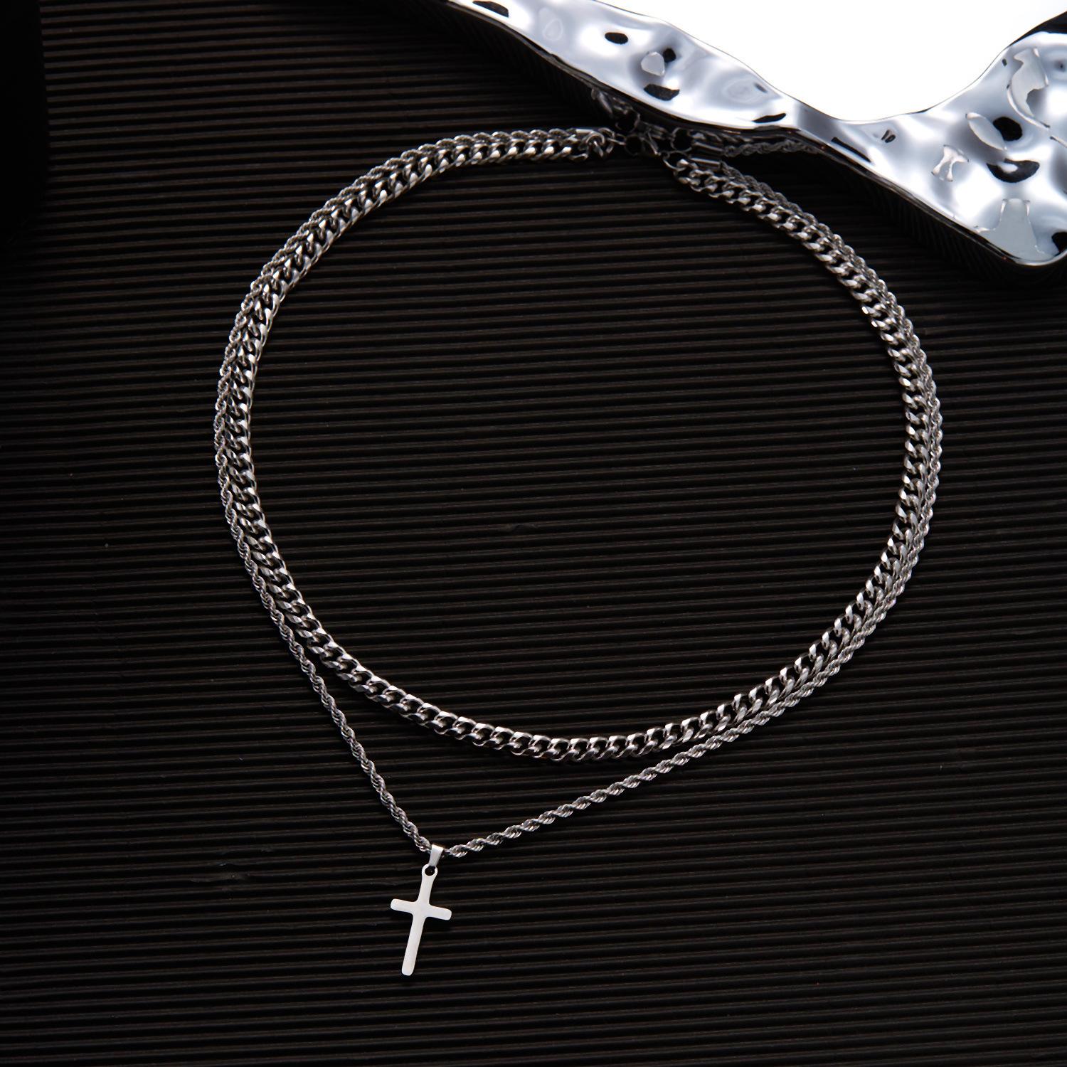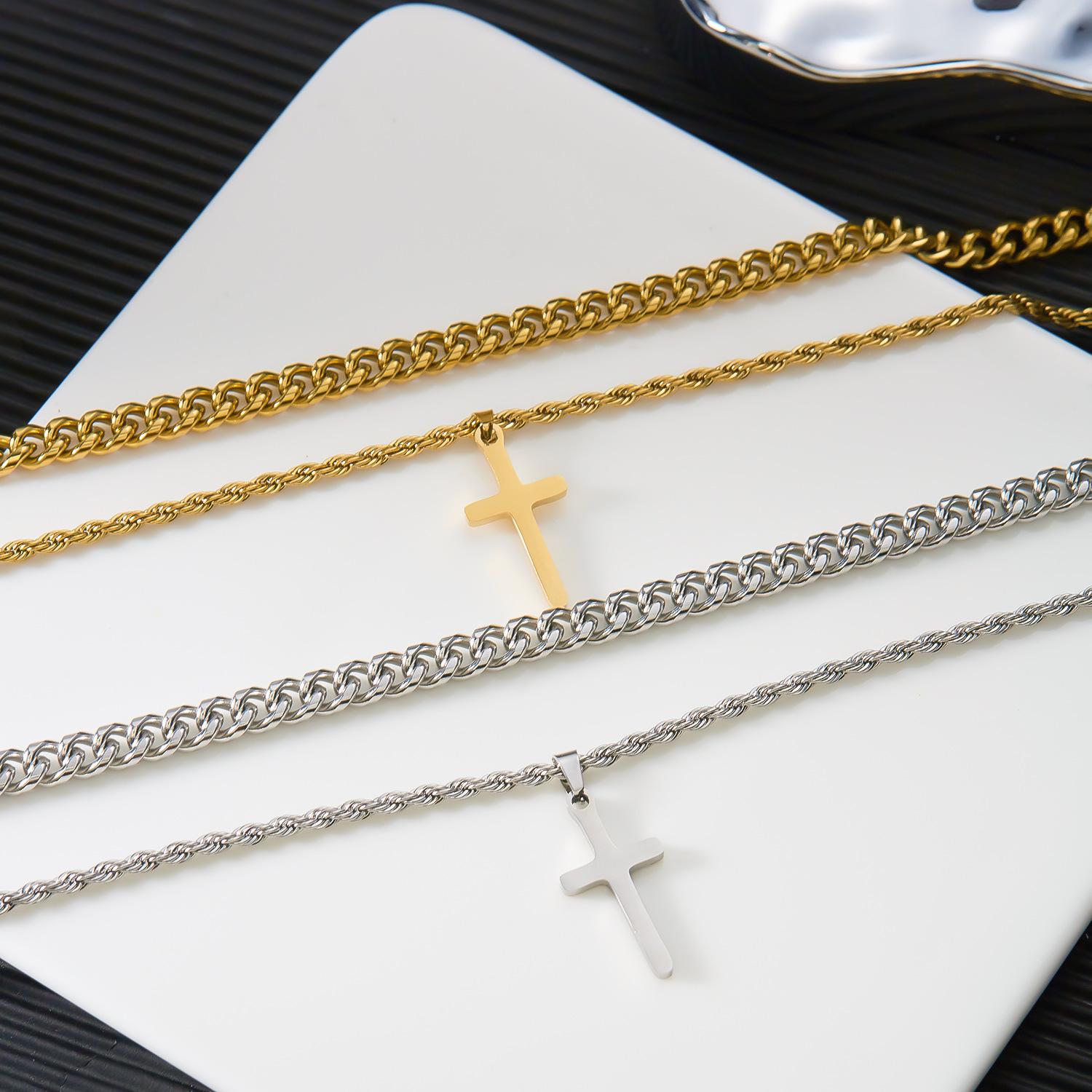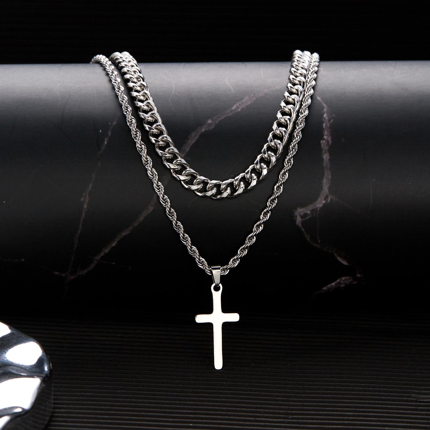 Collar con colgante de cruz de acero inoxidable para hombre, estilo hip hop, de titanio y cadena torcida, de estilo europeo y americano, combina con todo.