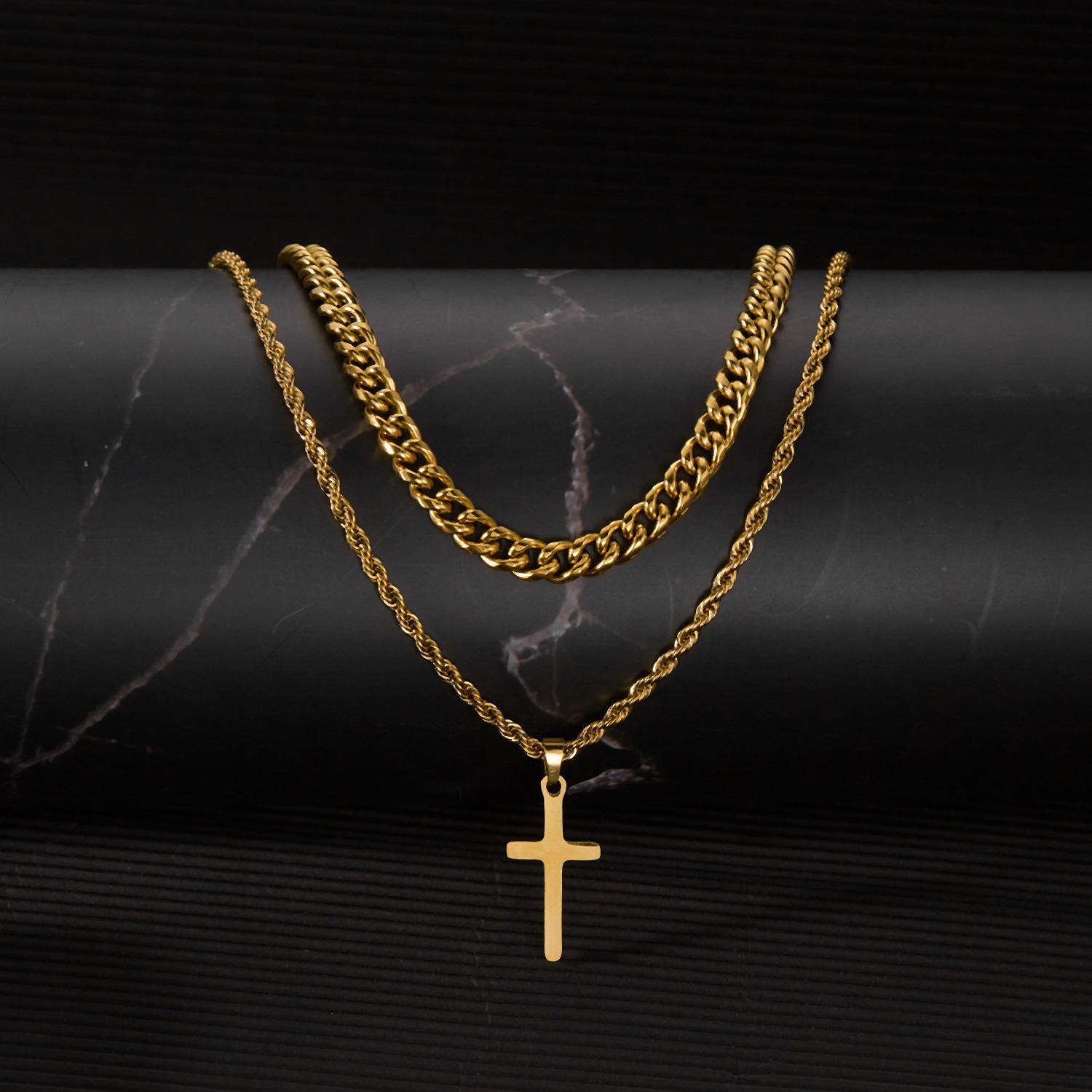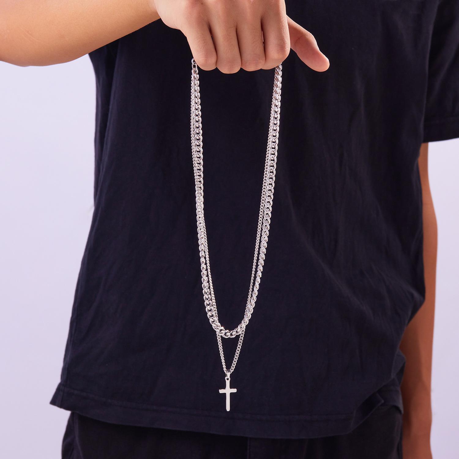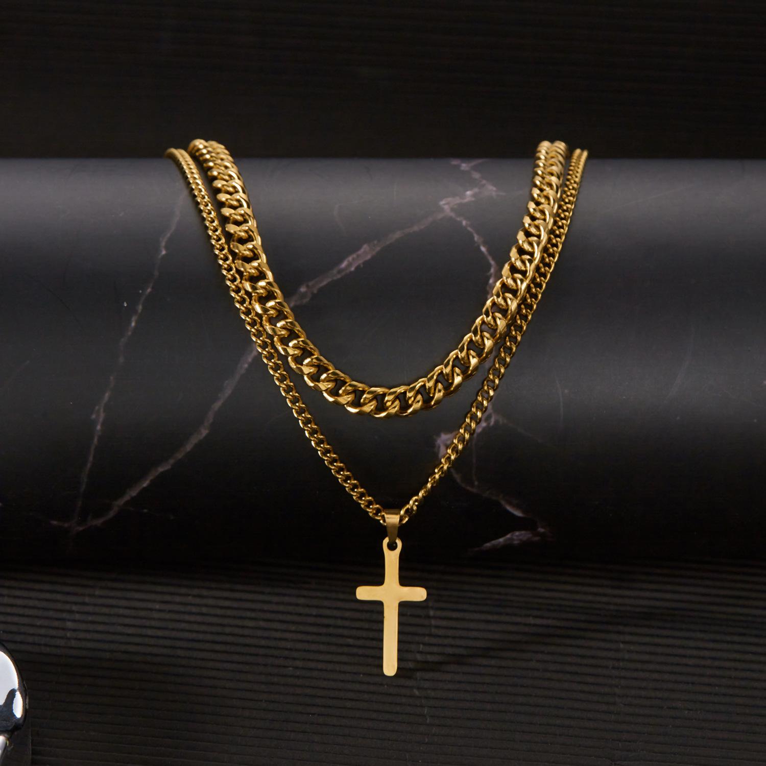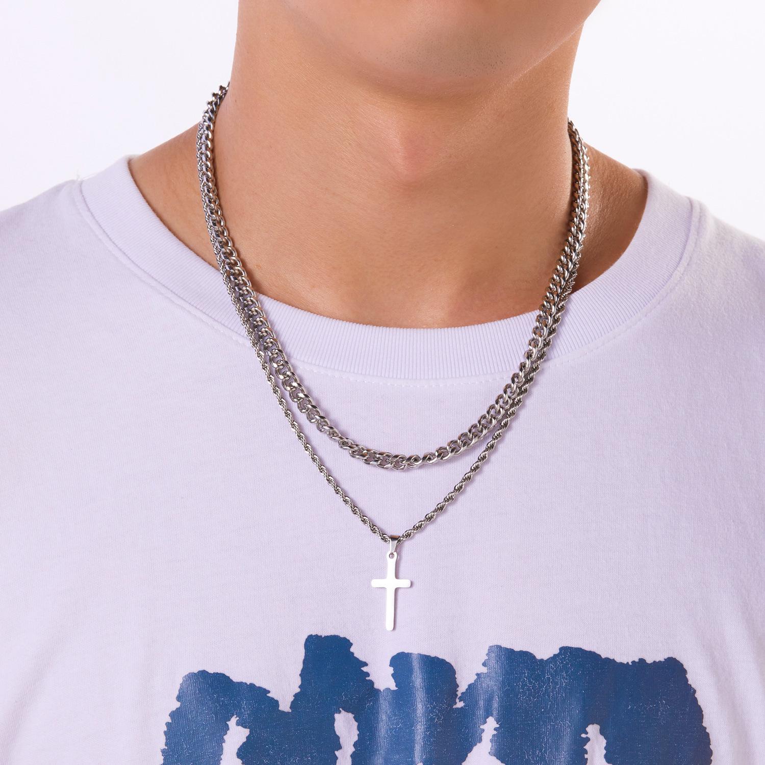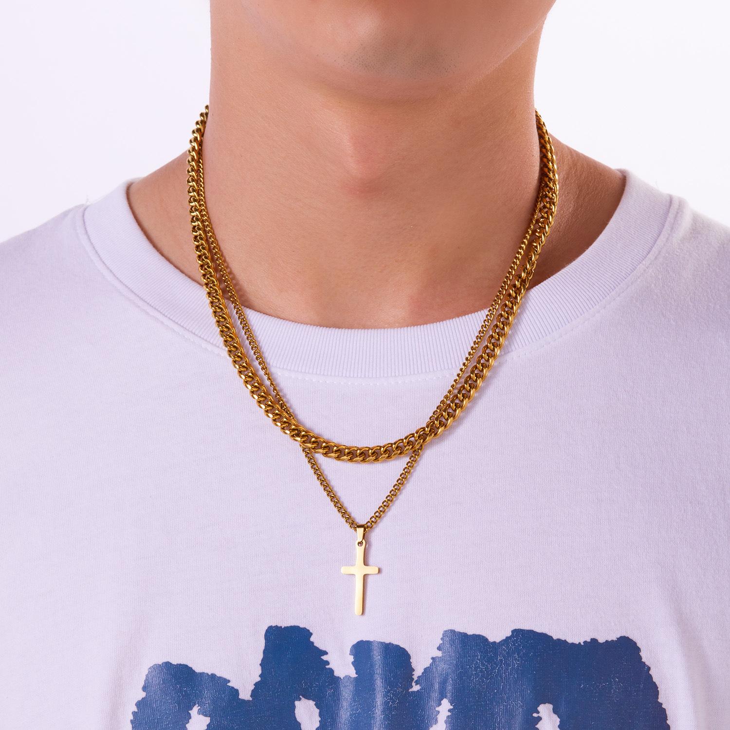 Collar con colgante de cruz de acero inoxidable para hombre, estilo hip hop, de titanio y cadena torcida, de estilo europeo y americano, combina con todo.
