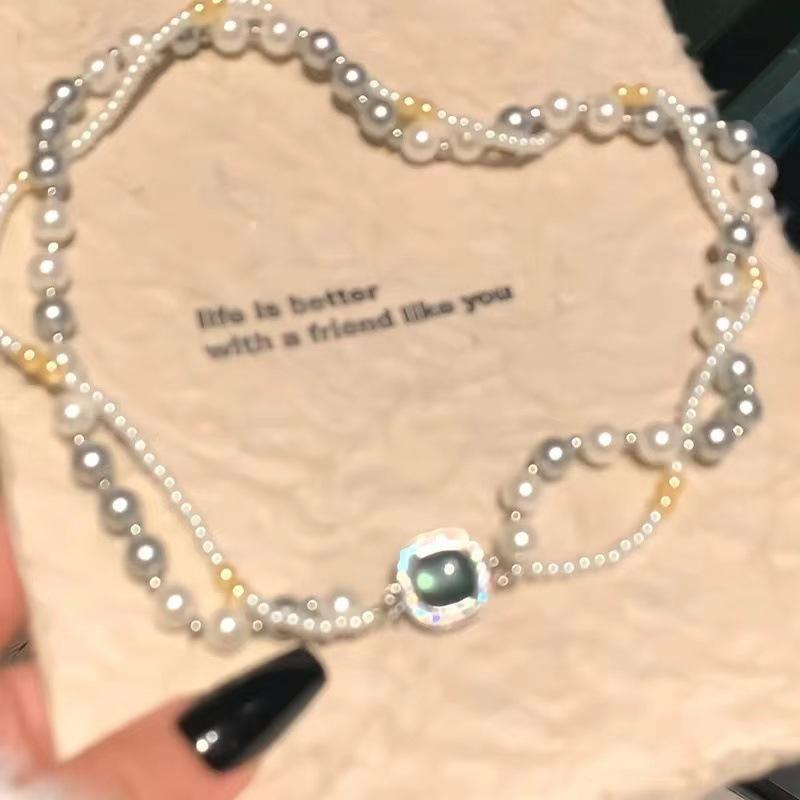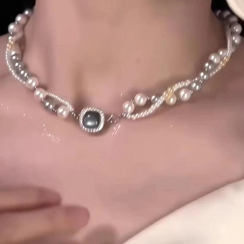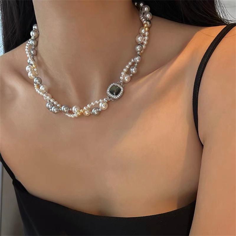 Collar de Perlas Grises Envueltas en Doble Capa "Danza de Nieve" Caperucita Roja Libro Collar de Estilo Corte Sencillo de Lujo Ligero