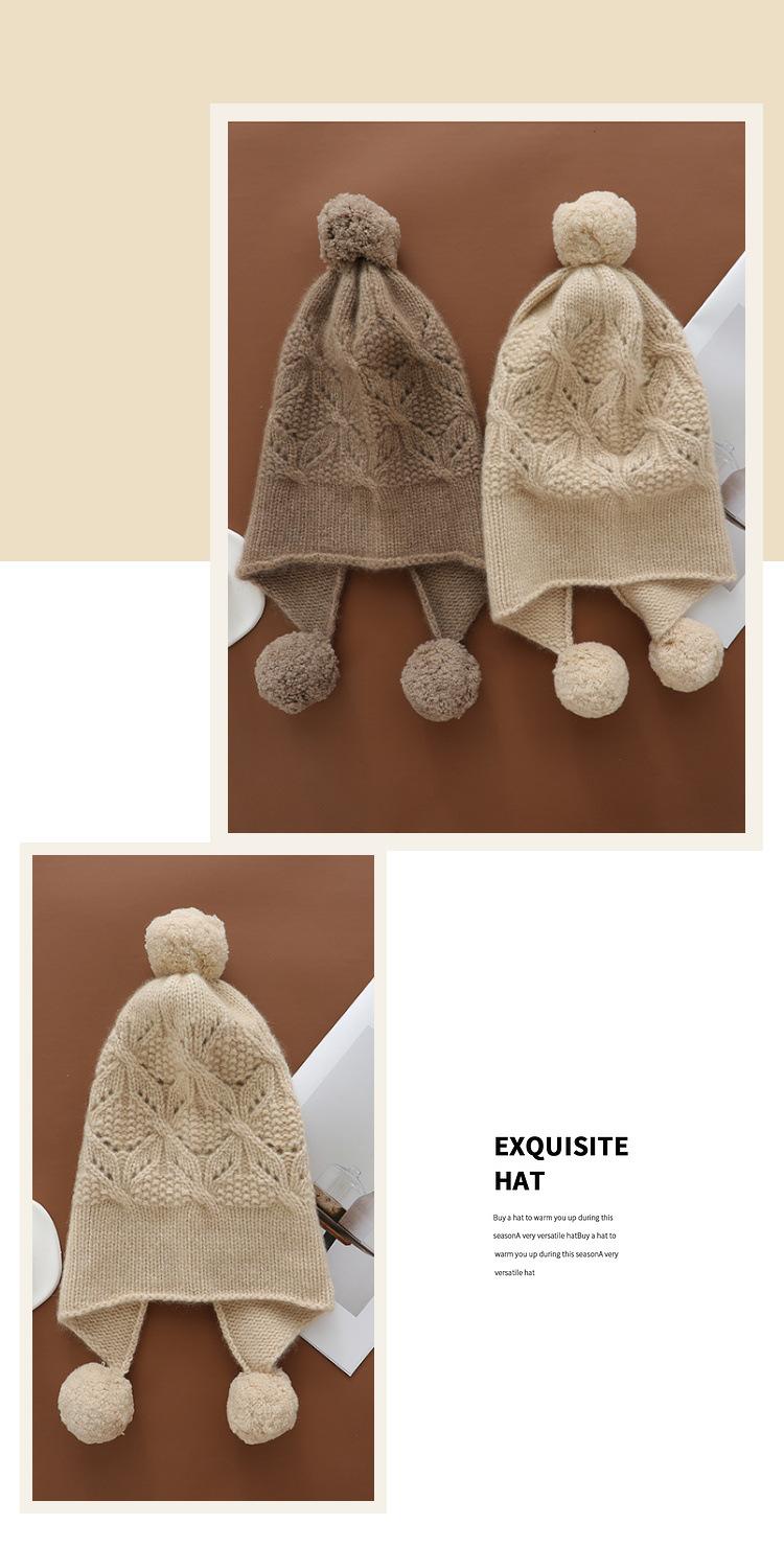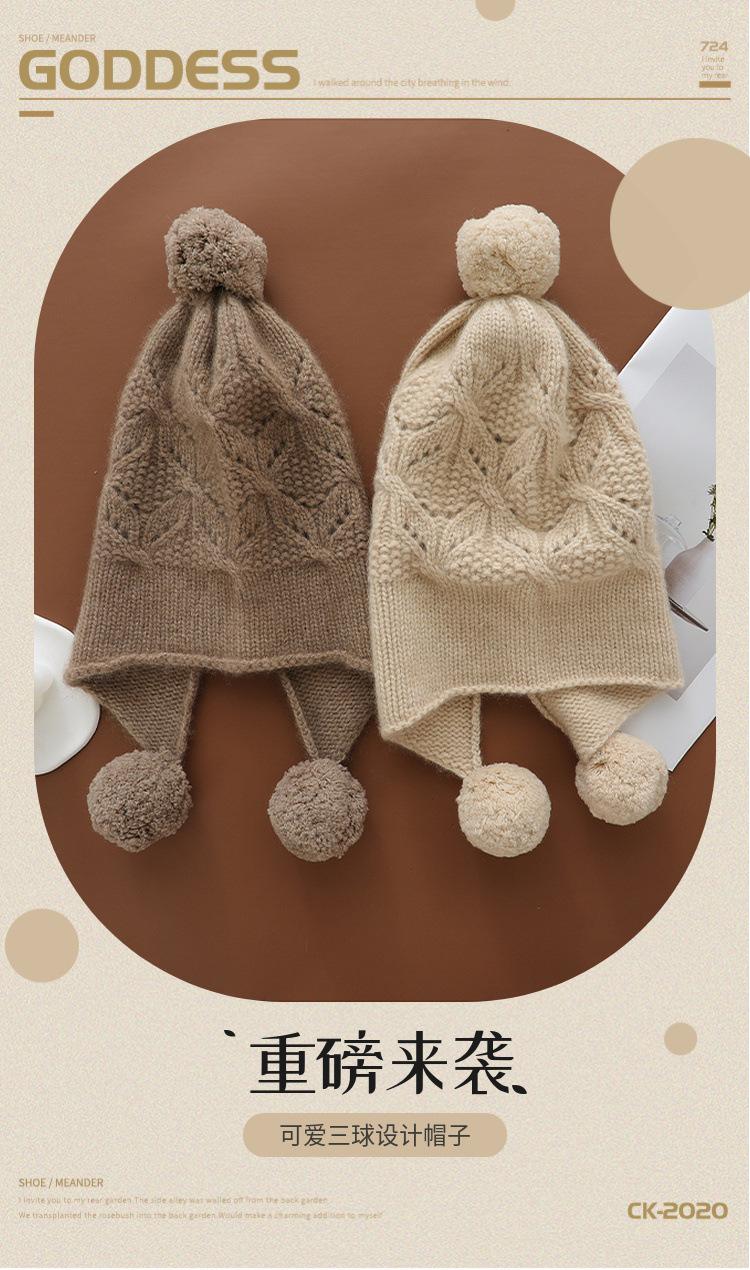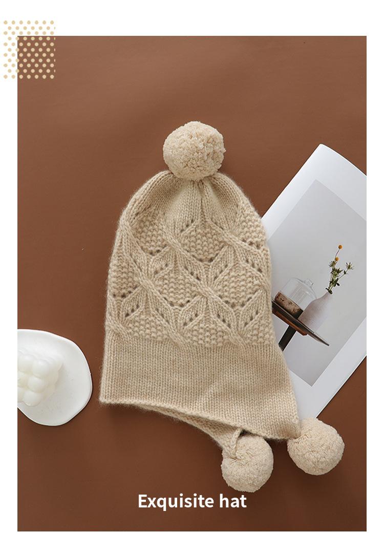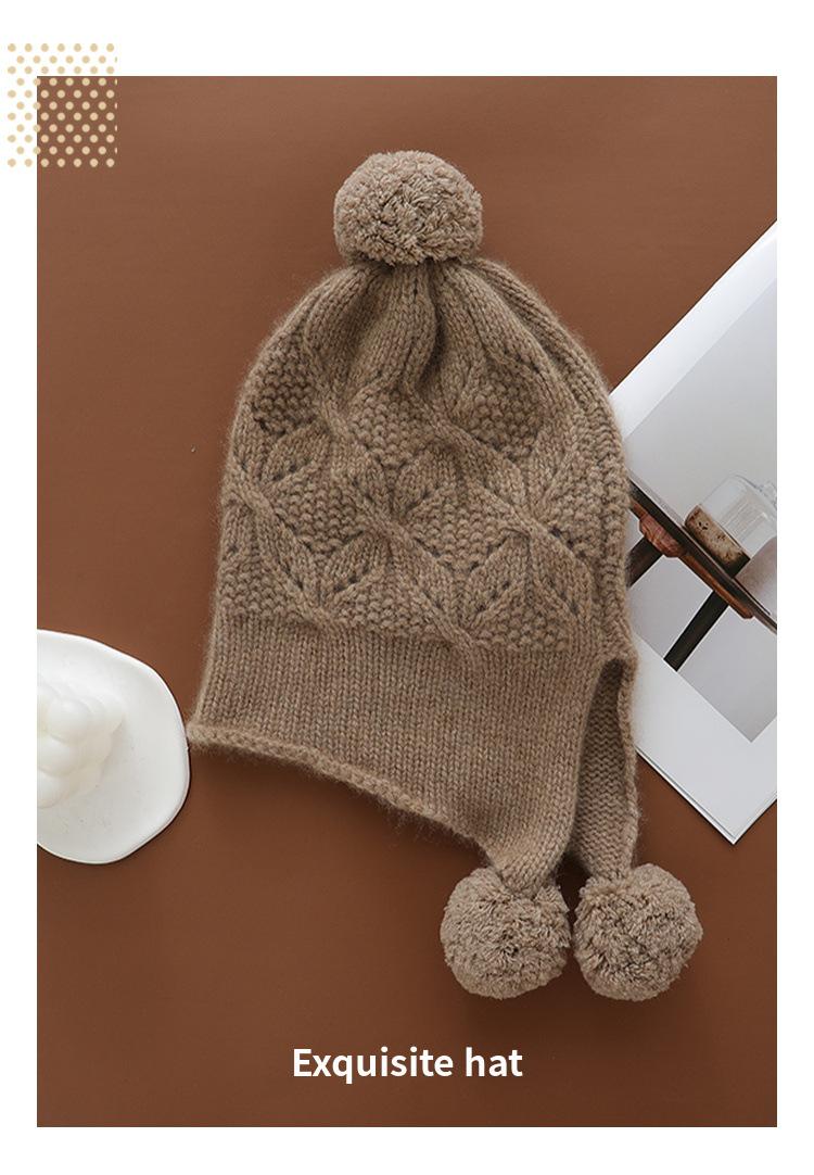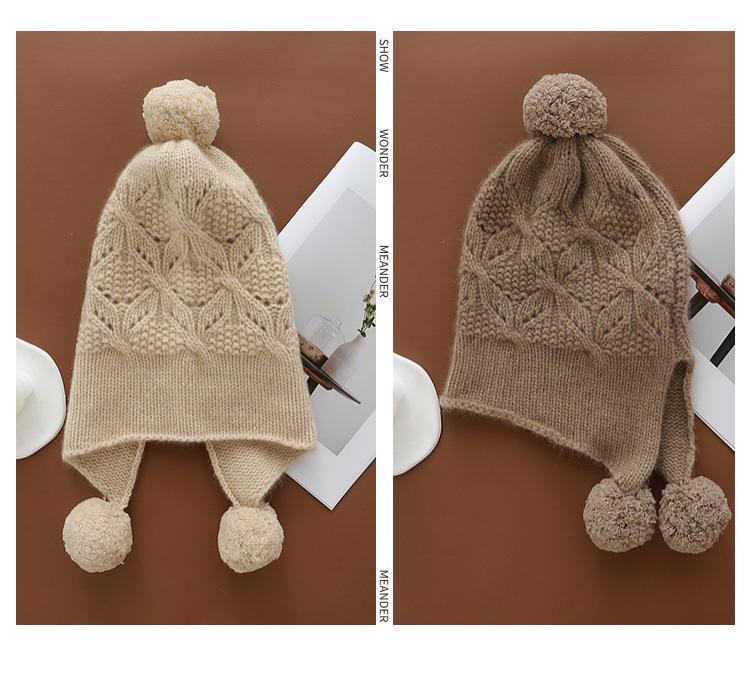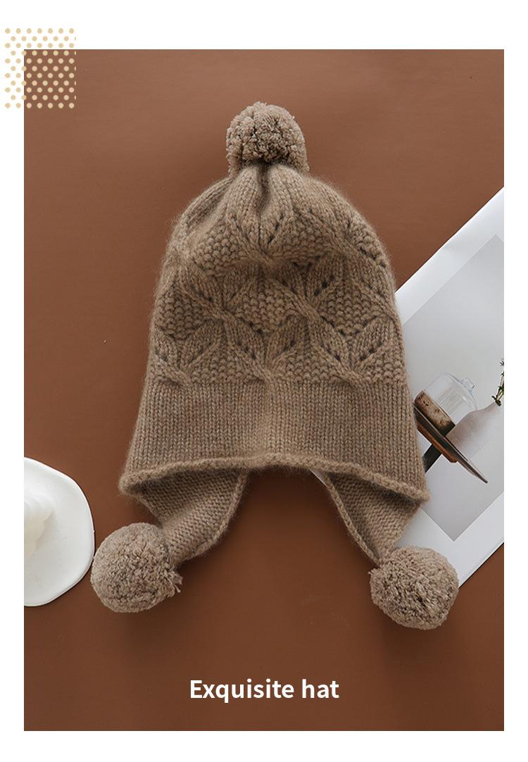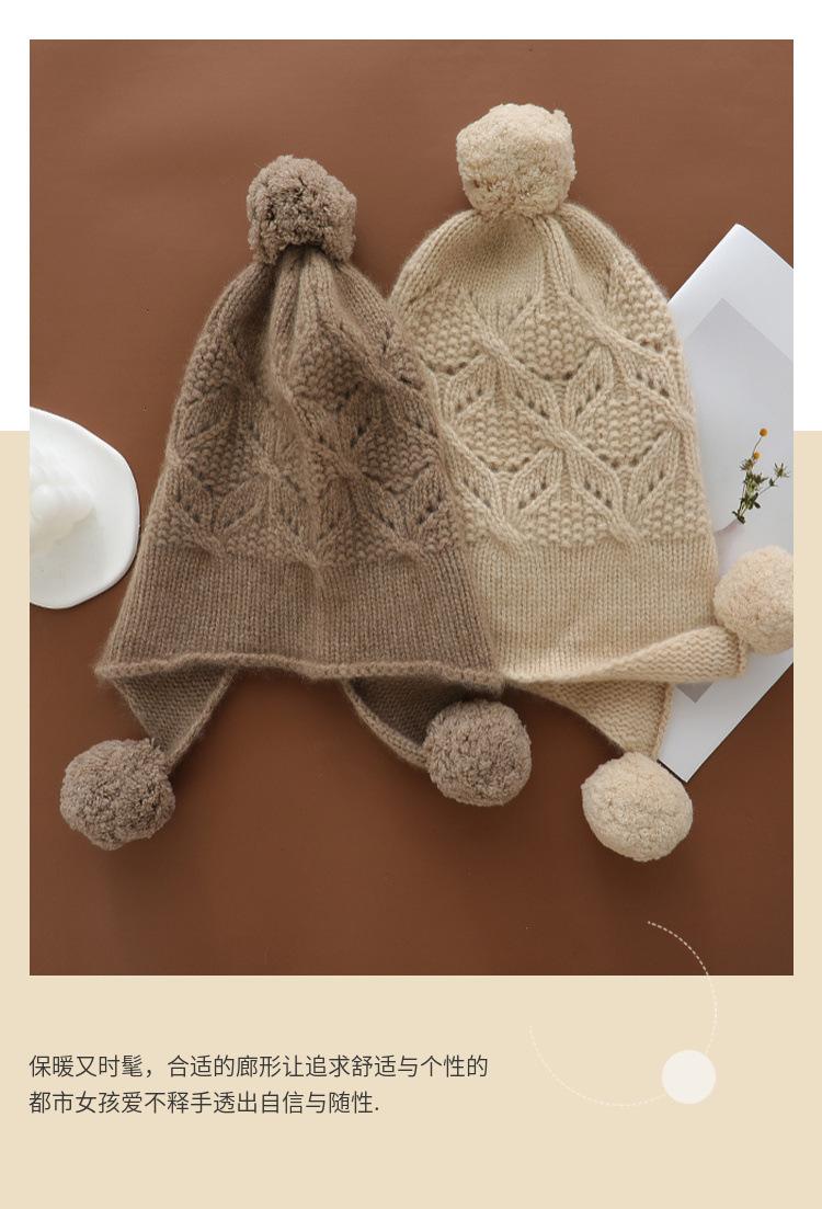 Gorro de cachemira para mujer, 100% cachemira pura, otoño e invierno, nuevo gorro de punto hueco, cálido y con protección para las orejas.