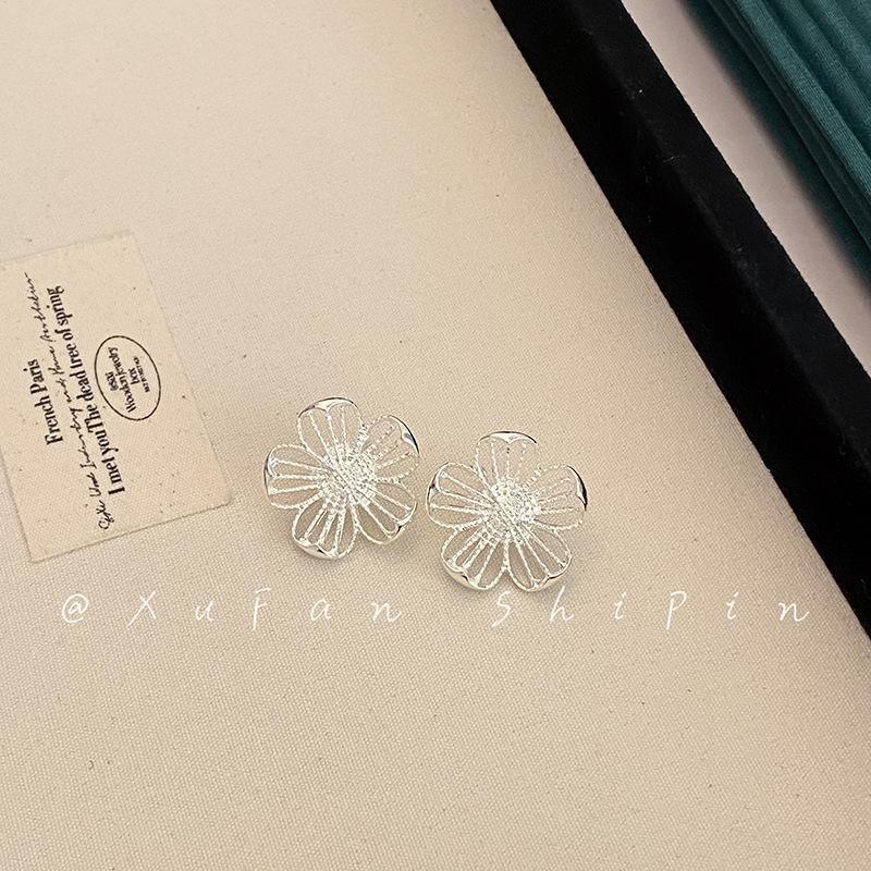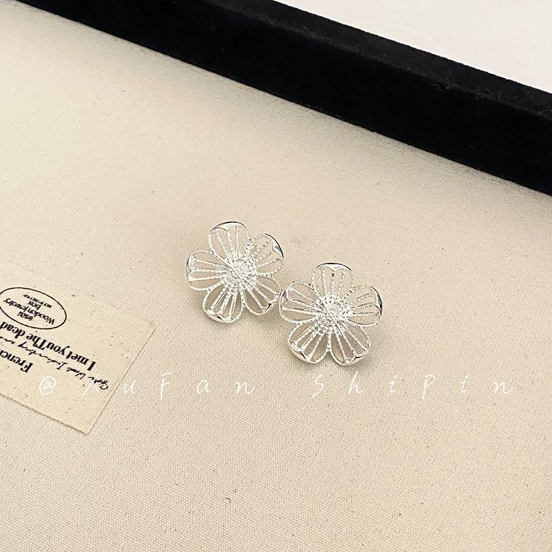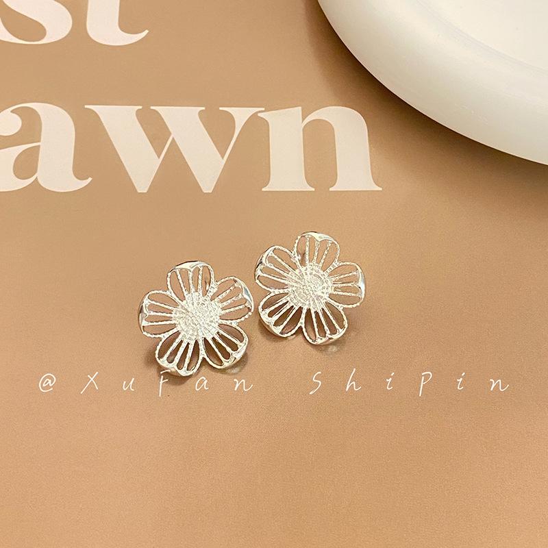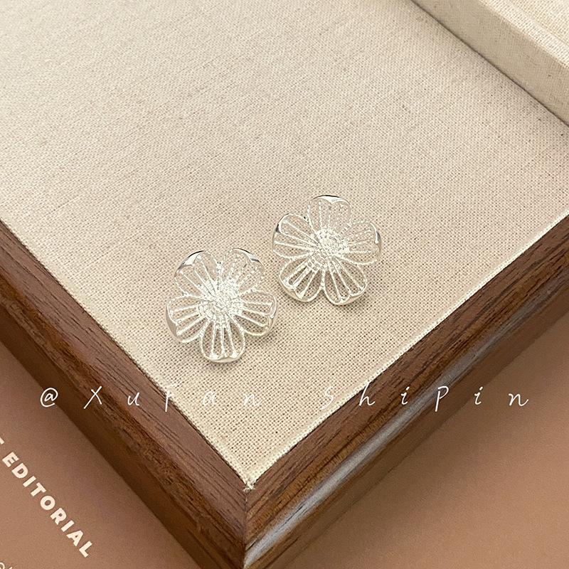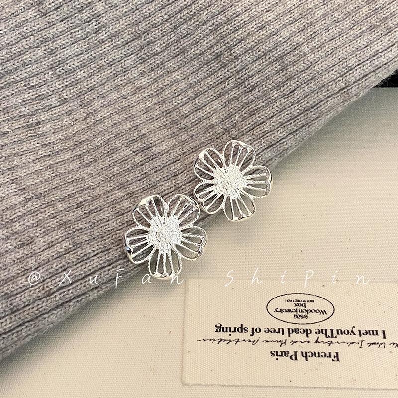 Nuevos aretes minimalistas huecos de flores para mujer, moda de lujo ligero, temperamento fresco, comodín, joyería para la oreja al por mayor