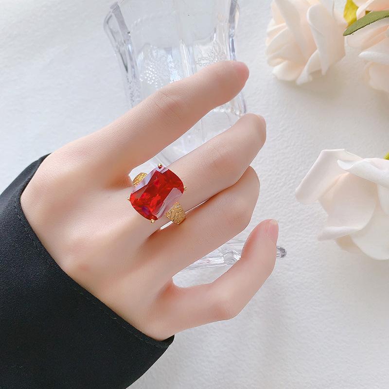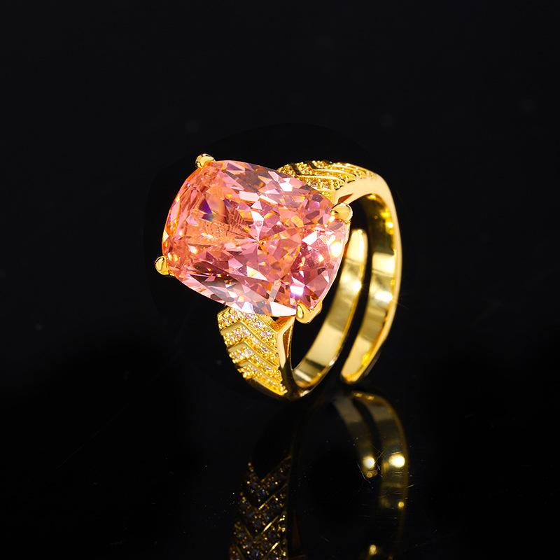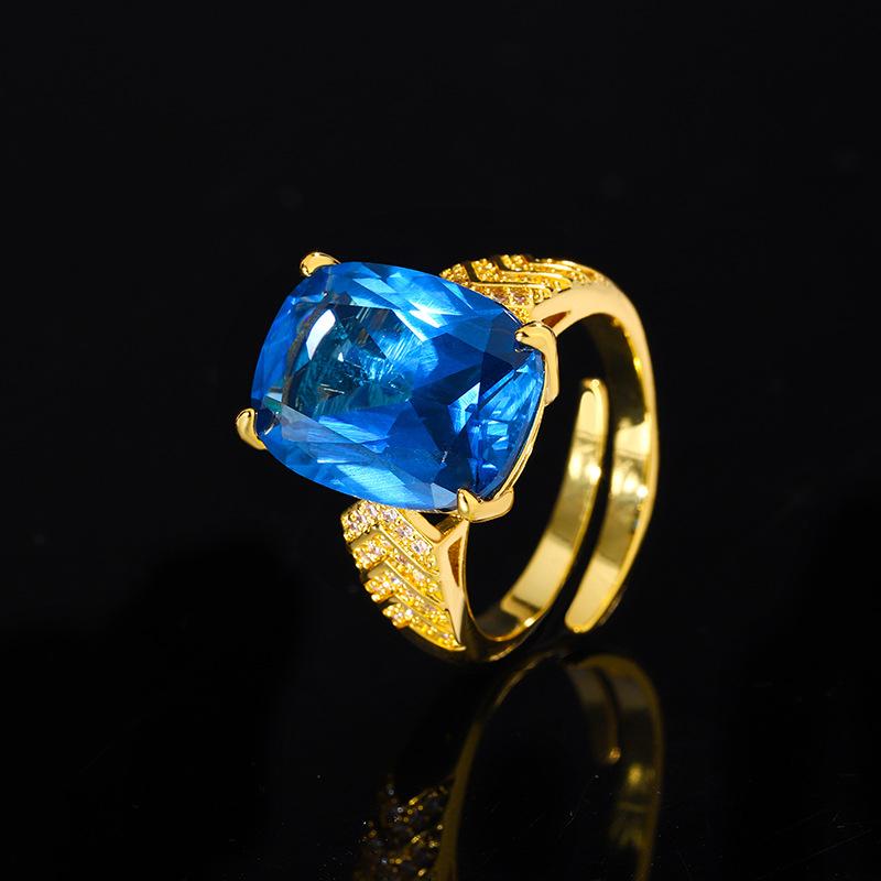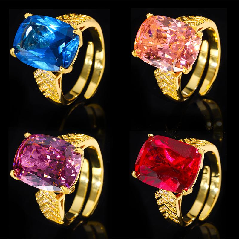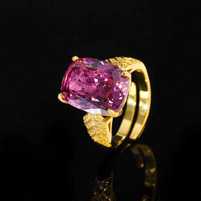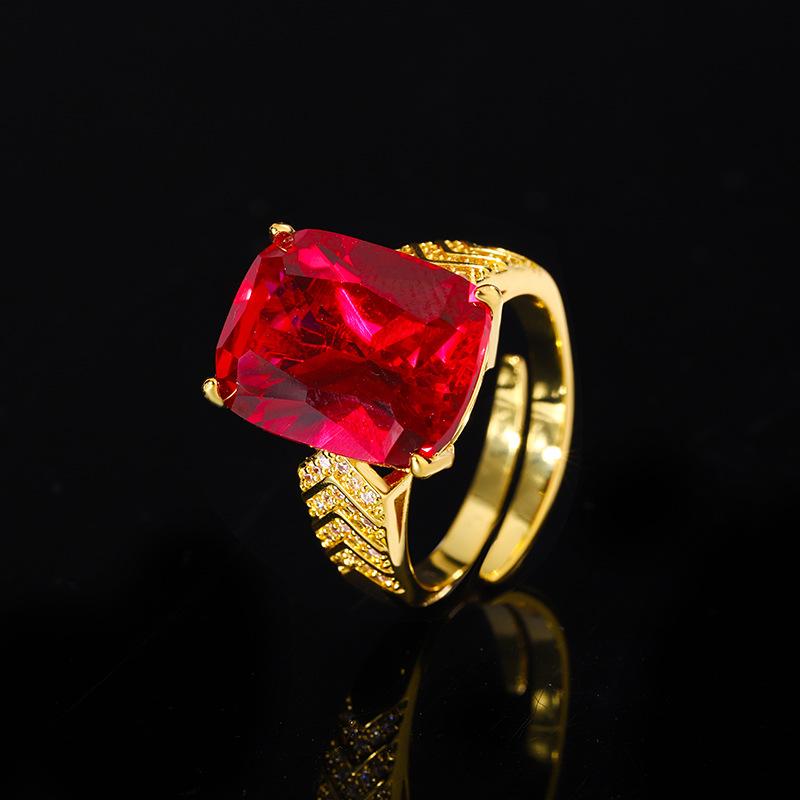2024 Zhuang Sheng Sheng joyería cobre chapado en oro nido de pájaro corte corindón gordo cuadrado retro anillo de oro al por mayor 12*16