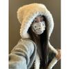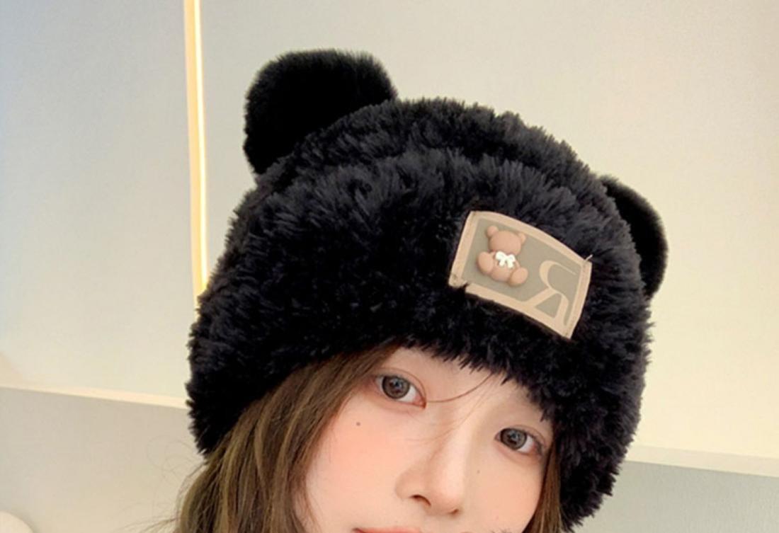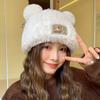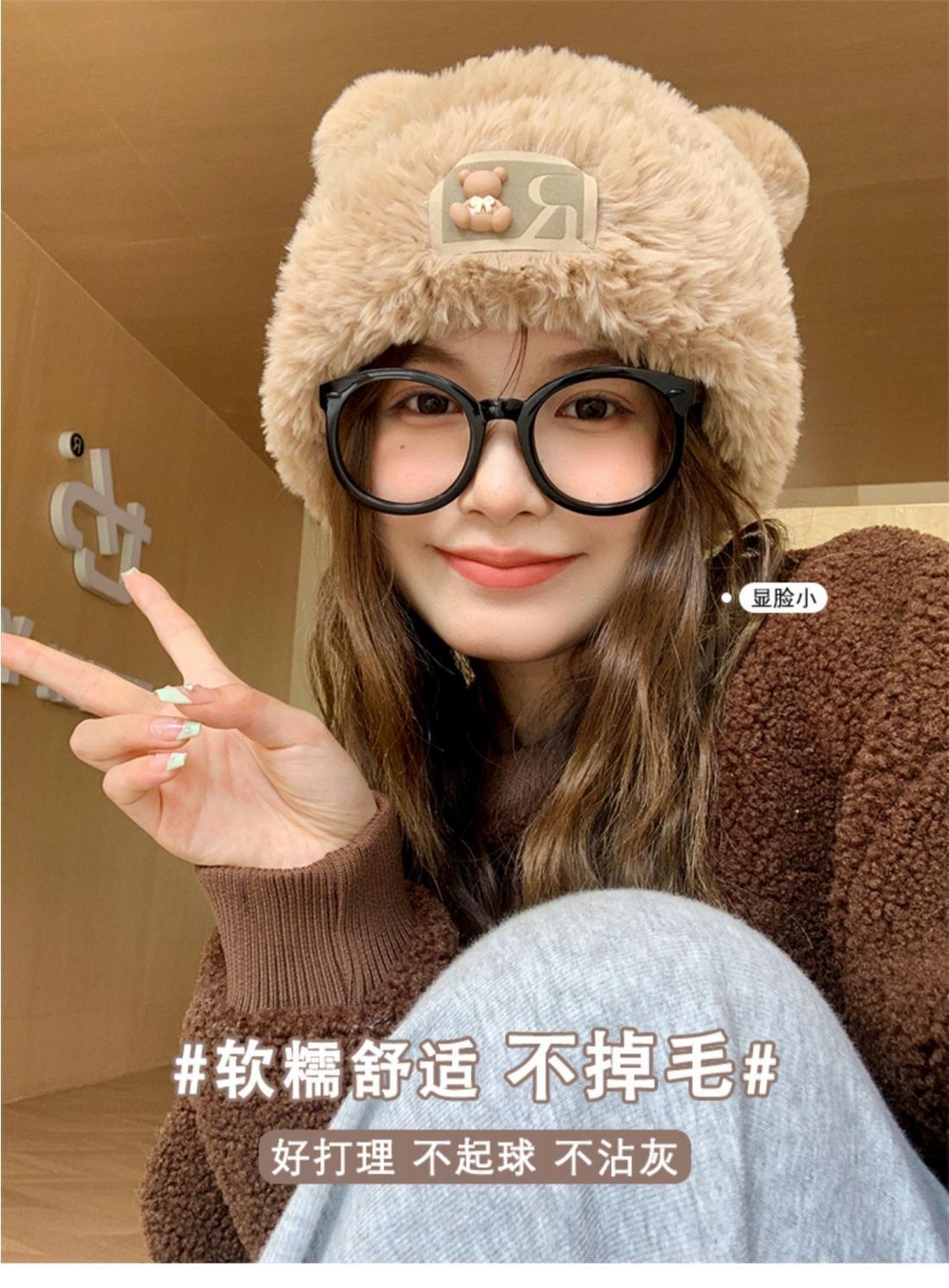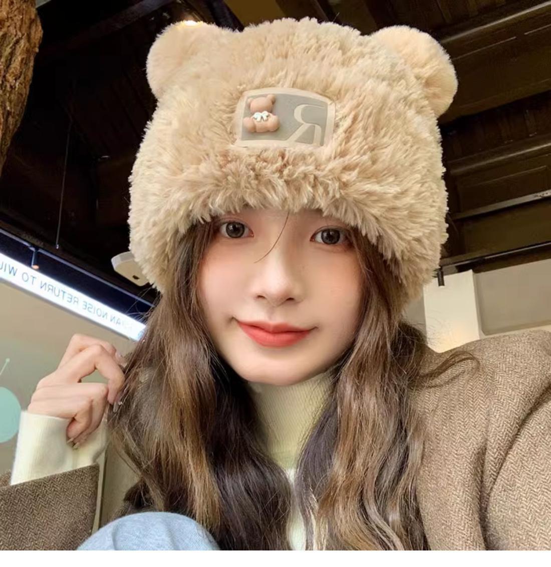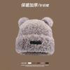 Sombrero de felpa con orejas de oso lindo para otoño e invierno para mujer, estilo coreano, circunferencia de cabeza grande, capucha para protección de orejas para Heattech y mostrar la cara pequeña, gorro frío