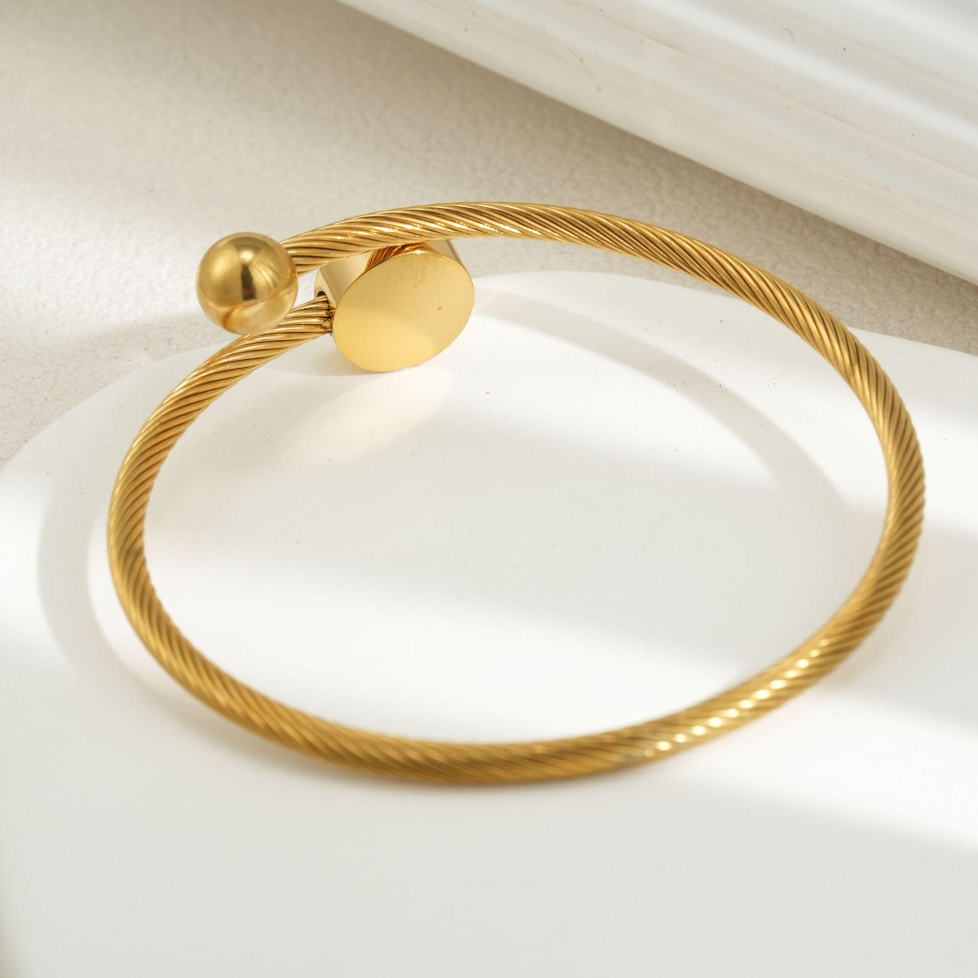 Nueva pulsera minimalista de acero inoxidable con cadena tejida en círculo para mujer, lujo ligero, nicho, anillo liso, pulsera dorada, joyería al por mayor