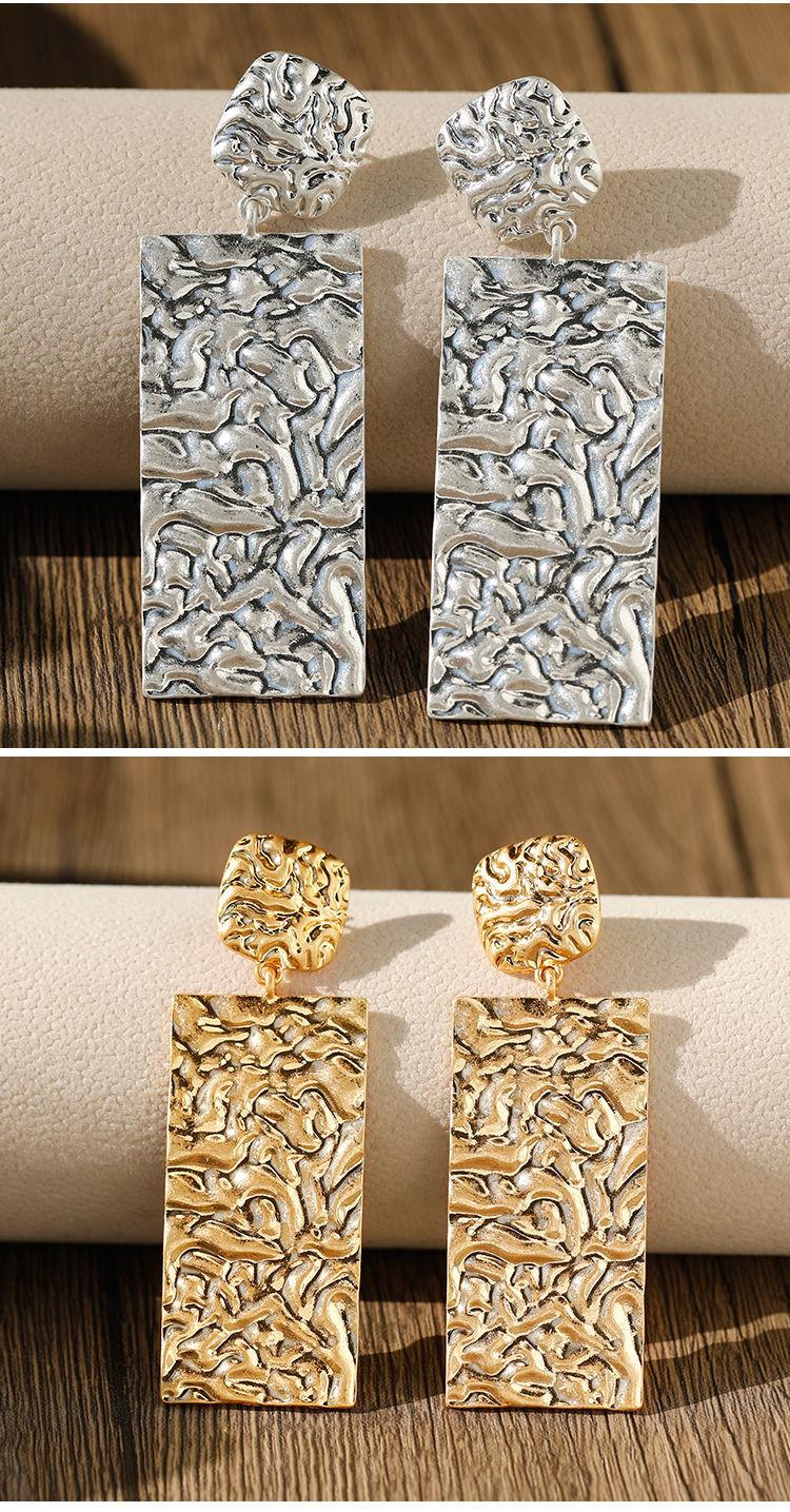 Pendientes creativos de aleación de moda simple de estilo europeo y americano, pendientes largos plisados con temperamento, pendientes geométricos populares.