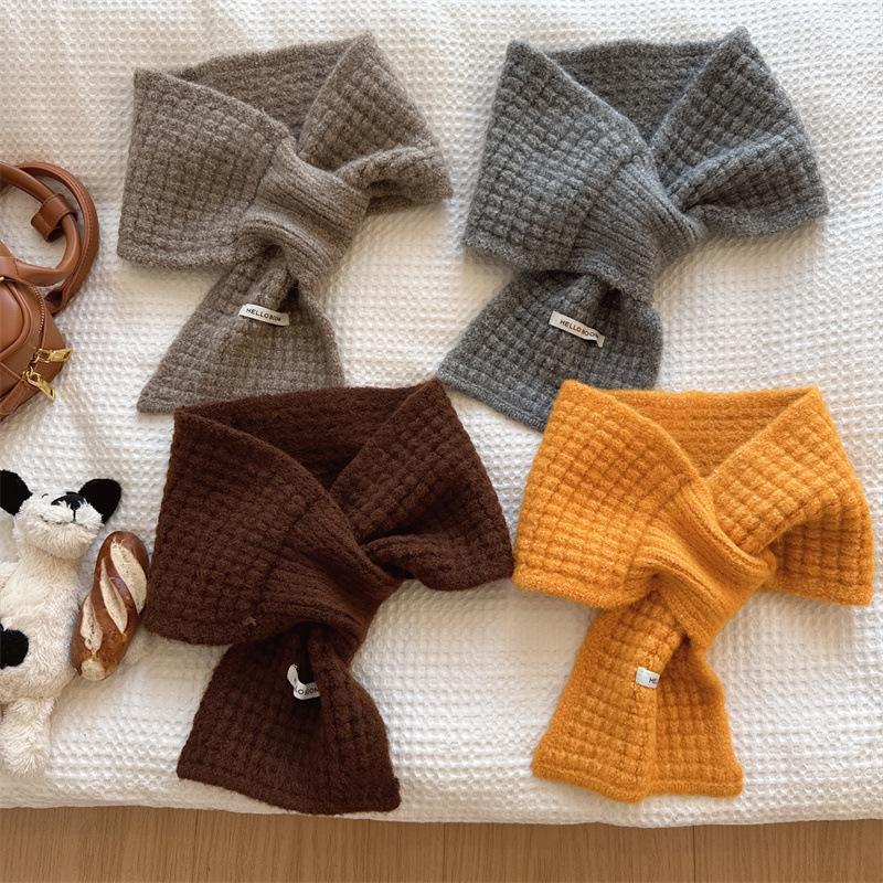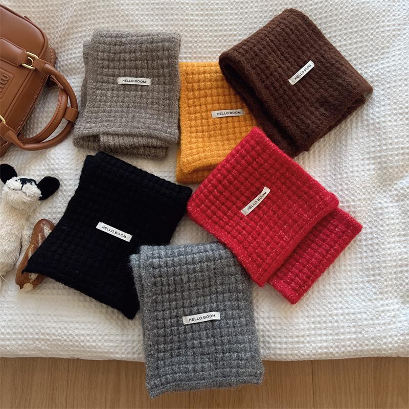 Bufanda pequeña de punto con diseño de celebridades de Internet, estilo coreano, para otoño e invierno, elegante, para mujer, con protección para el cuello, cálida y de color sólido.