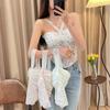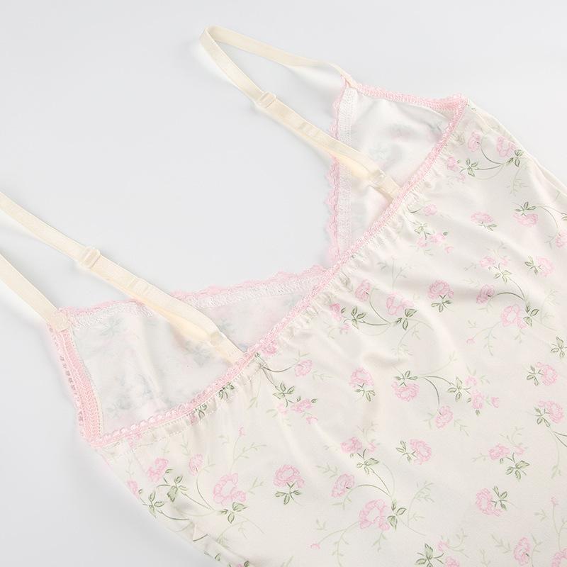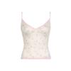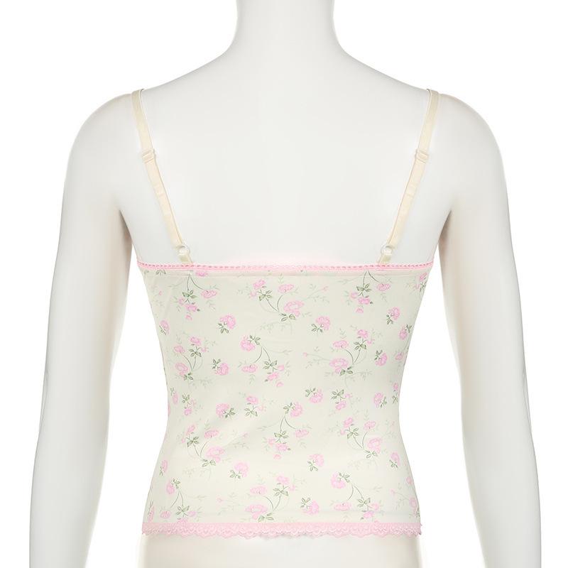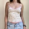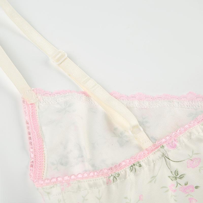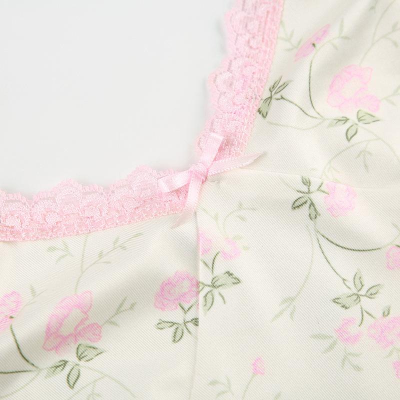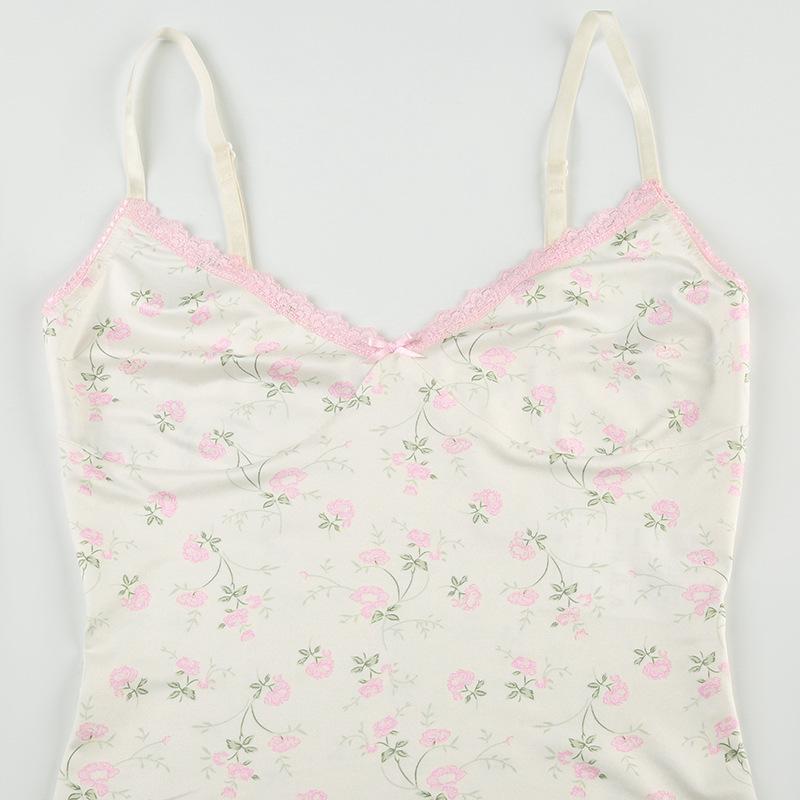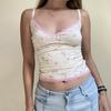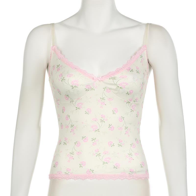 Top corto informal de verano fresco y elegante con cuello de encaje floral y tirantes finos de estilo europeo y americano.