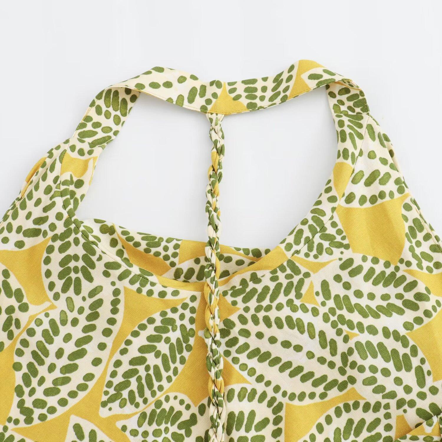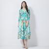 Vestido largo elegante con cuello y espalda descubierta con flores verdes, estilo festivo europeo y americano, para mujer, 2024