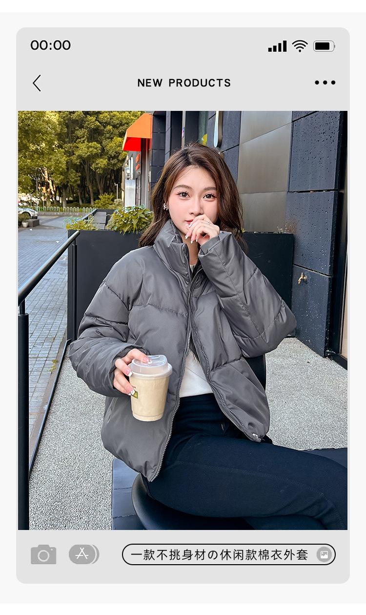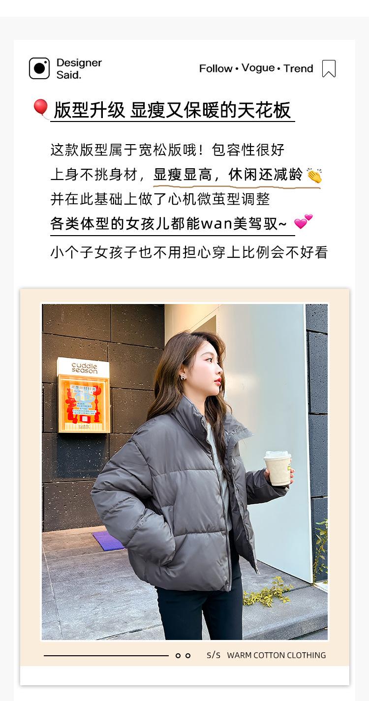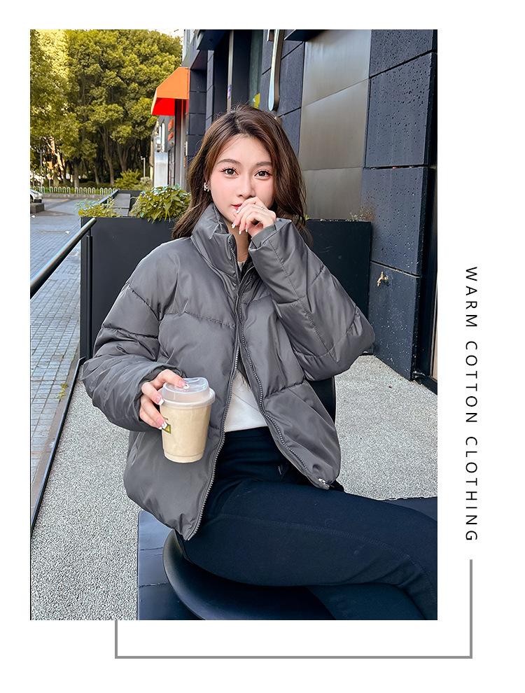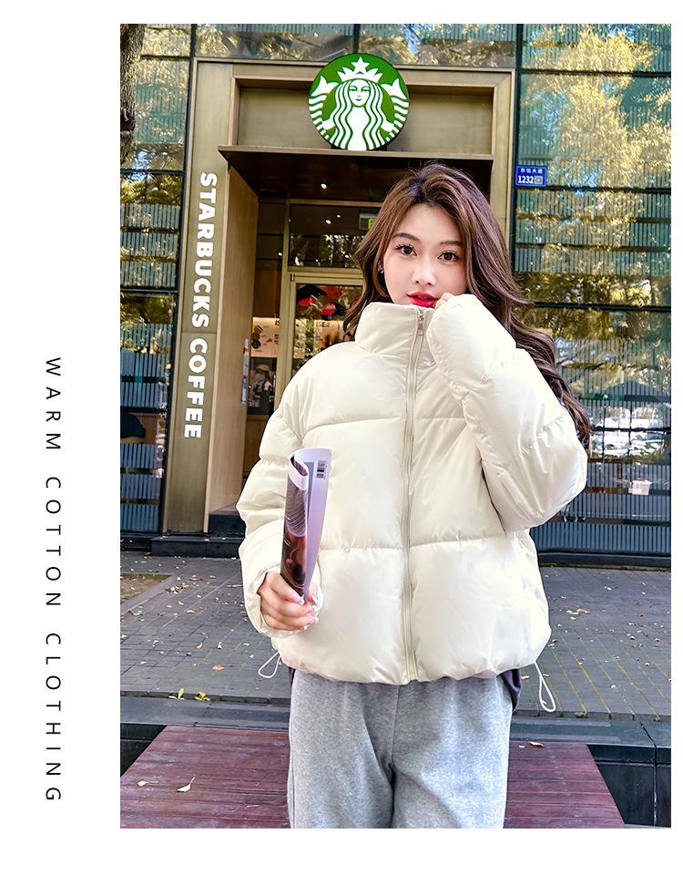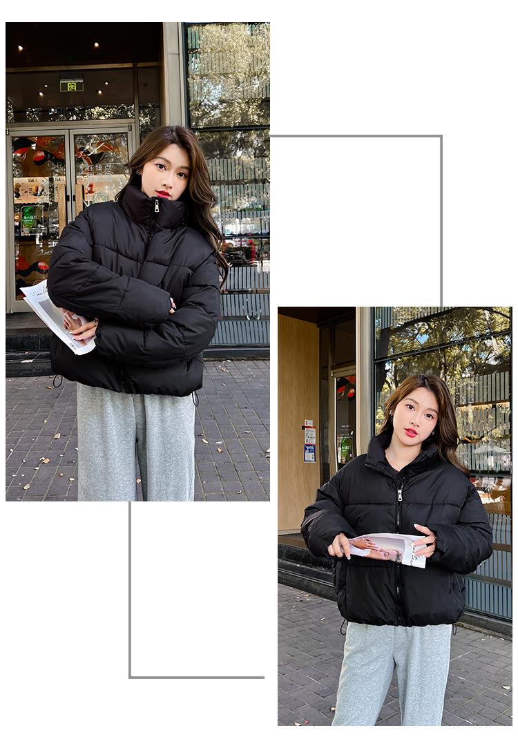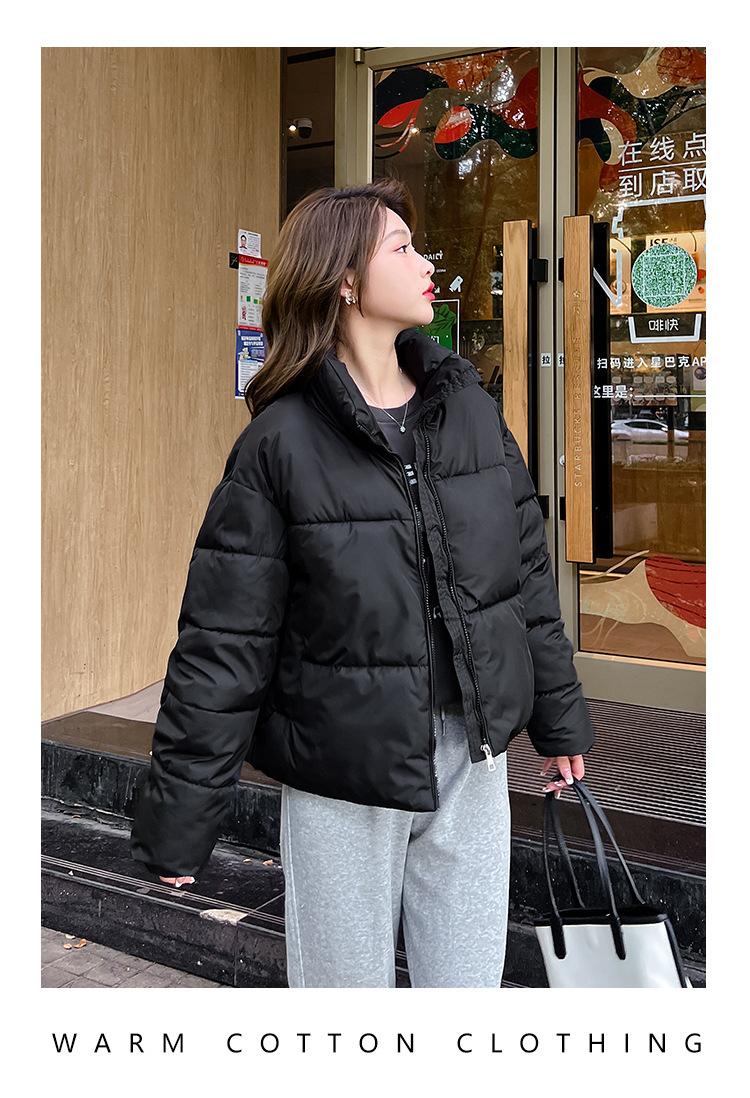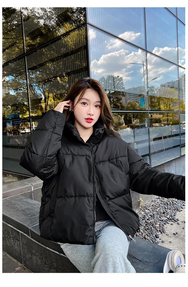 Invierno Cuello Alto Engrosado Pequeño Algodón Ropa Exterior para Mujer Nuevo Suelto Talla Grande Algodón Ropa Exterior Moda y Versátil Chaqueta de Algodón Negra