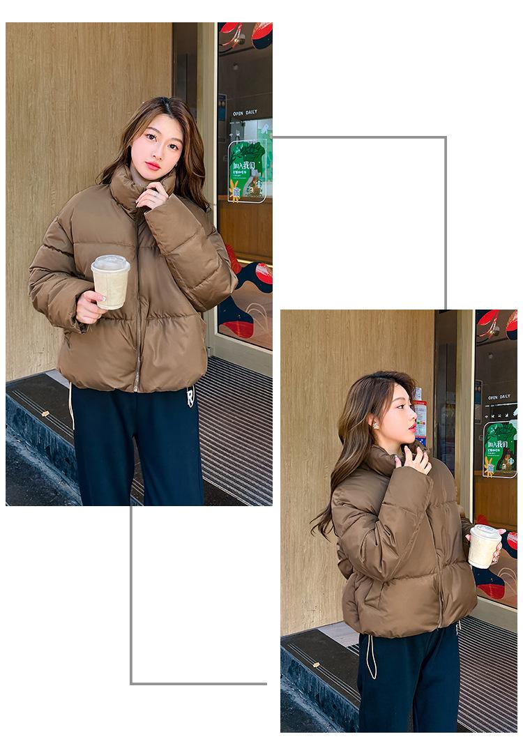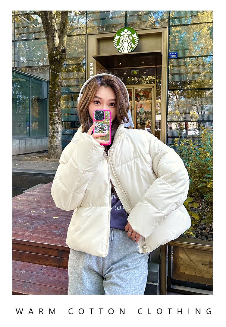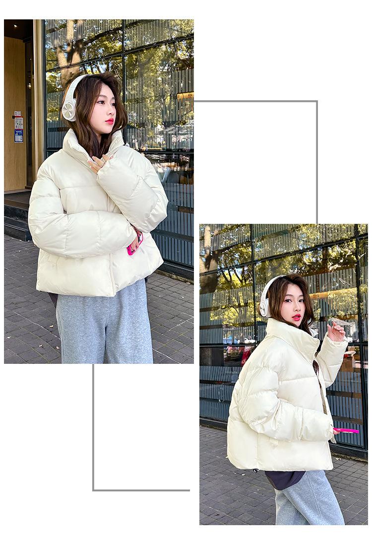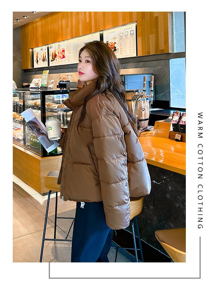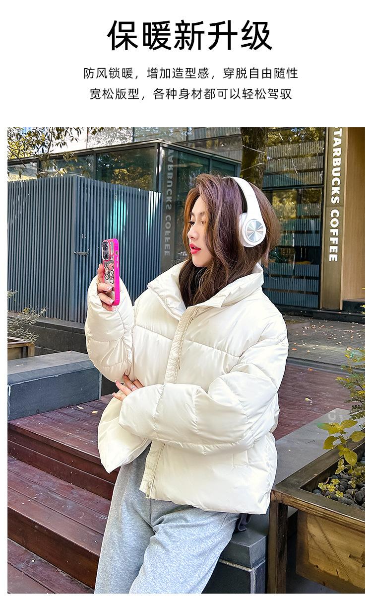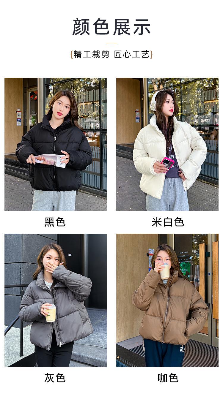 Invierno Cuello Alto Engrosado Pequeño Algodón Ropa Exterior para Mujer Nuevo Suelto Talla Grande Algodón Ropa Exterior Moda y Versátil Chaqueta de Algodón Negra