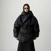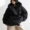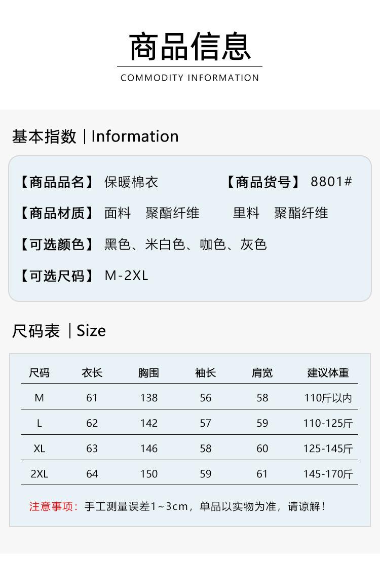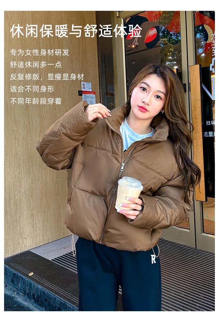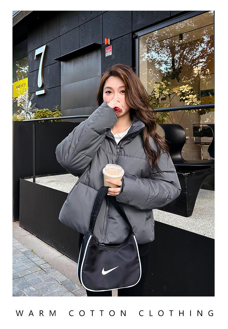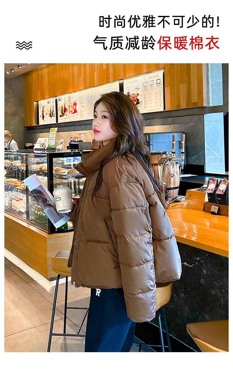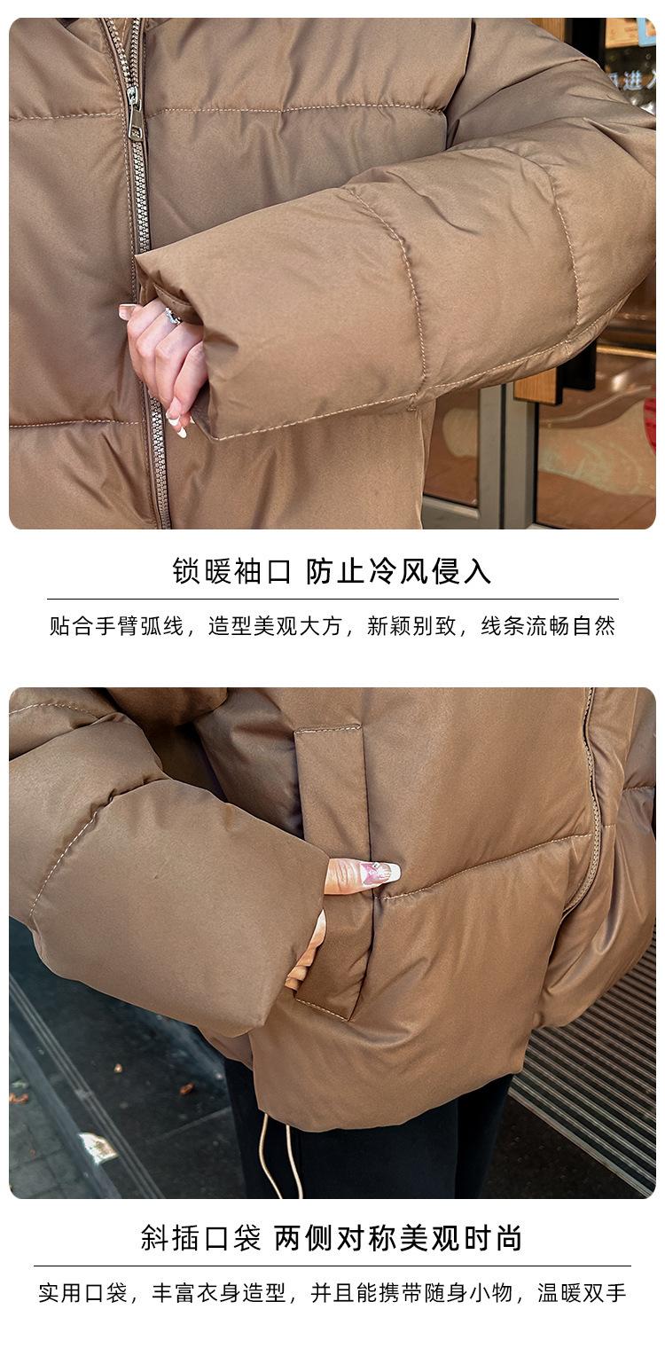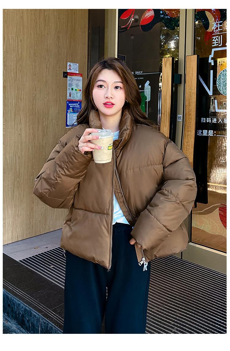 Invierno Cuello Alto Engrosado Pequeño Algodón Ropa Exterior para Mujer Nuevo Suelto Talla Grande Algodón Ropa Exterior Moda y Versátil Chaqueta de Algodón Negra