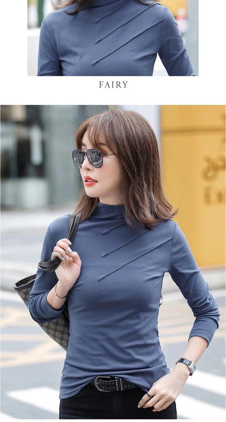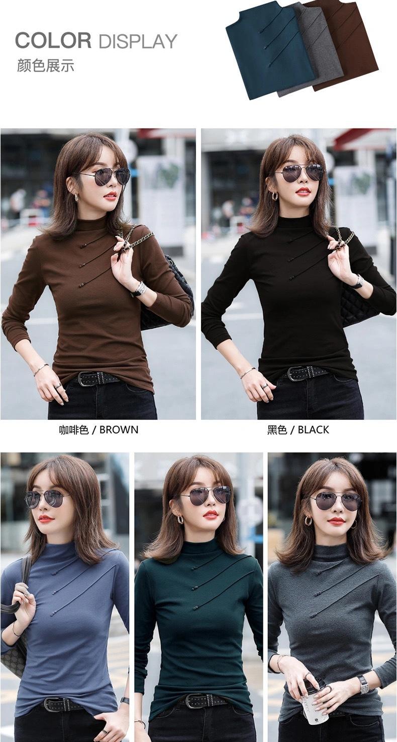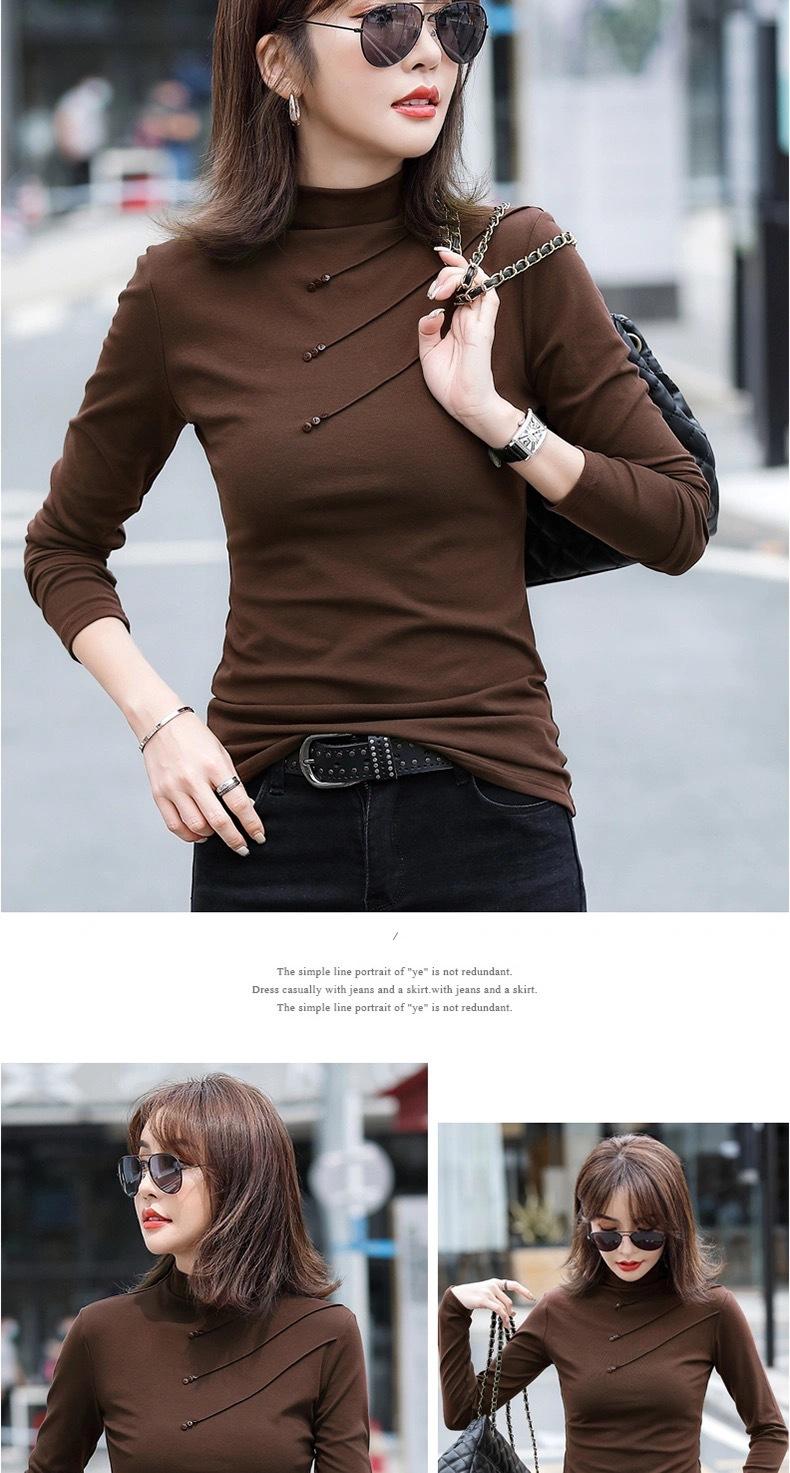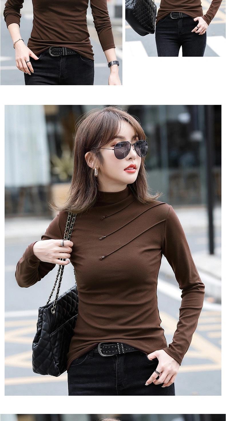 Camisa de cuello medio alto de terciopelo de doble cara para mujer, otoño e invierno, nueva, ajustada, con botones, base de nicho, venta al por mayor, 2025