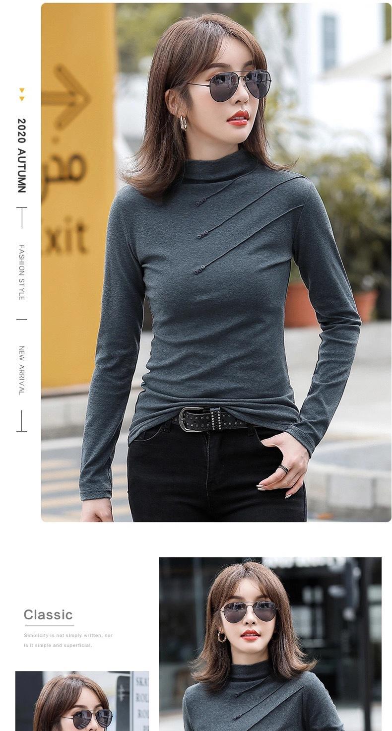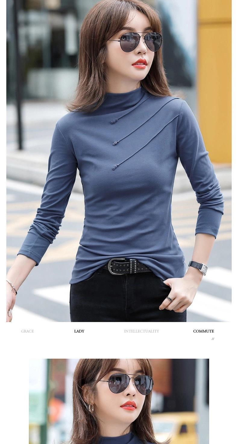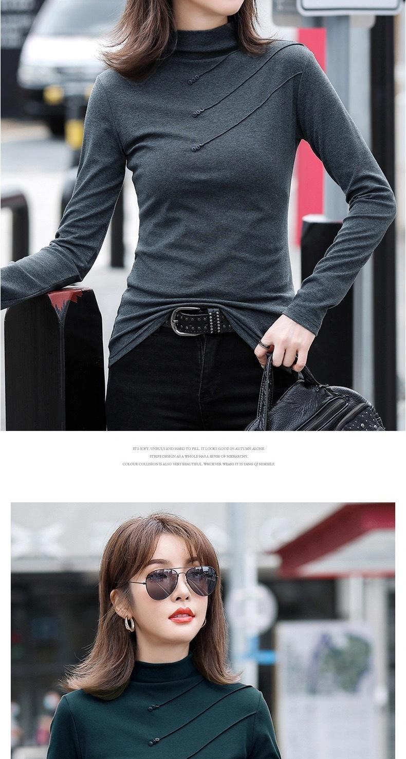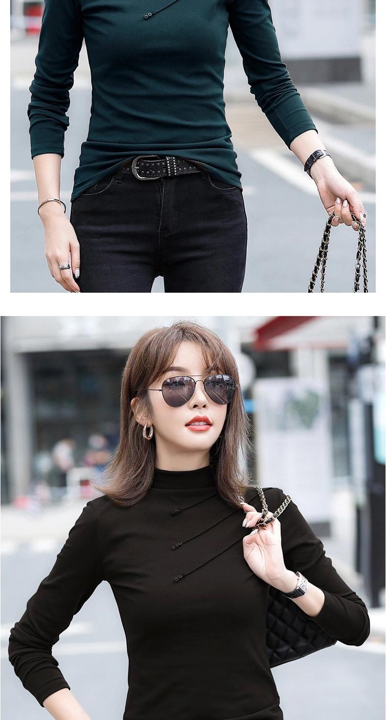 Camisa de cuello medio alto de terciopelo de doble cara para mujer, otoño e invierno, nueva, ajustada, con botones, base de nicho, venta al por mayor, 2025