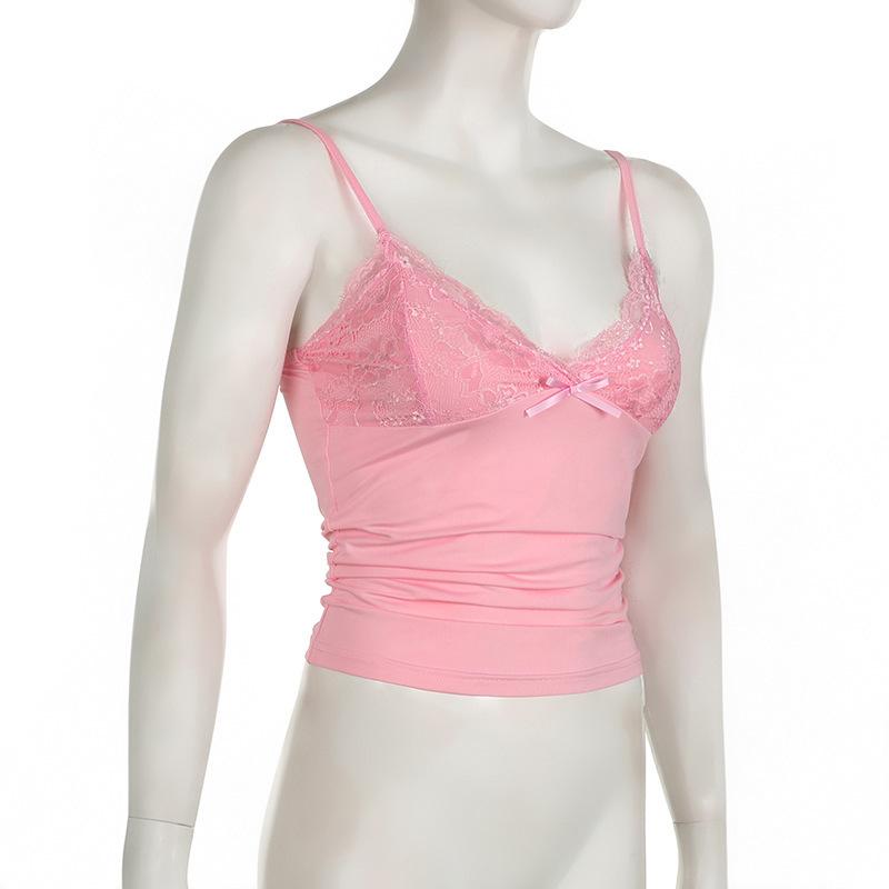Chaleco corto ajustado de color liso con cuello en V, estilo europeo y americano, con lazo y tirantes finos, estilo sexy para chica sexy.