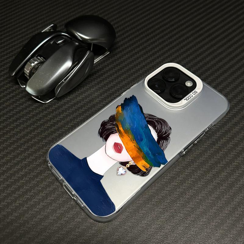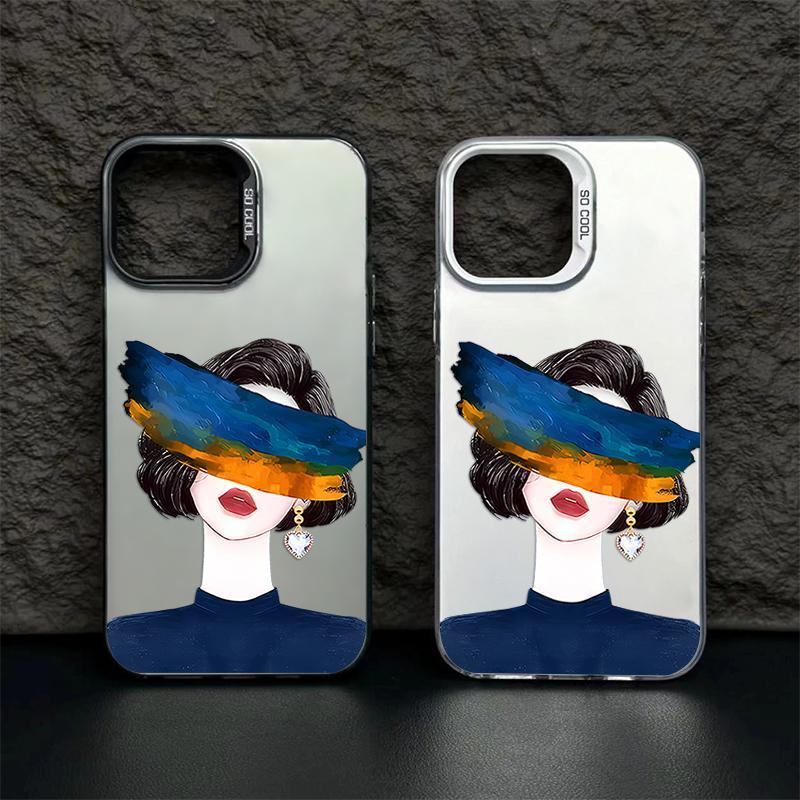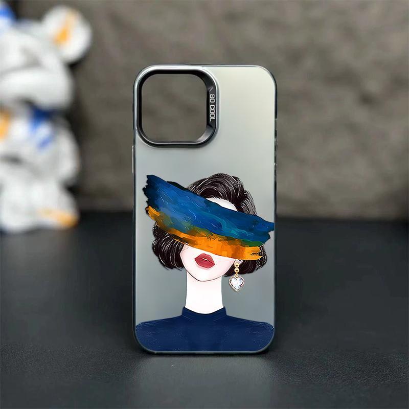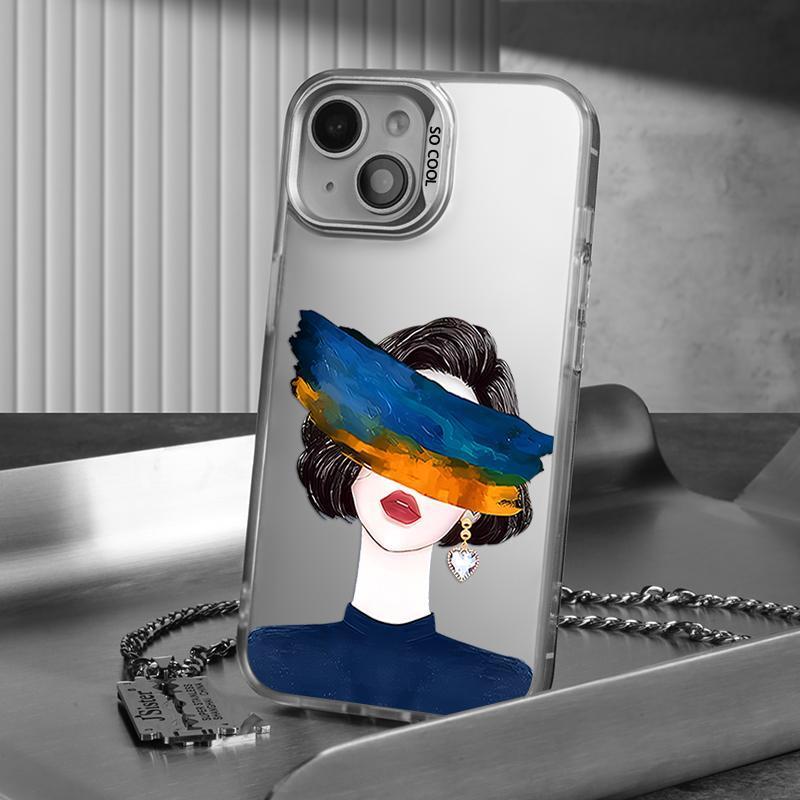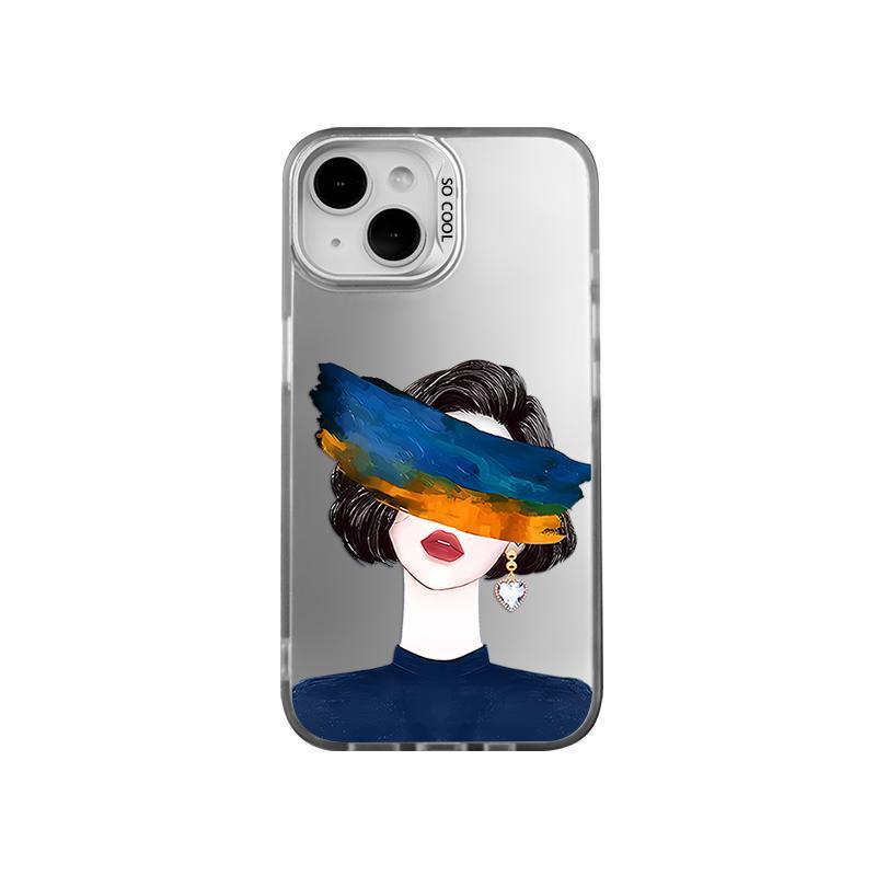 Funda para teléfono móvil Apple 15/14 Huawei OPPO Xiaomi vivo, nueva y creativa, con los ojos vendados, color plata, a prueba de caídas.