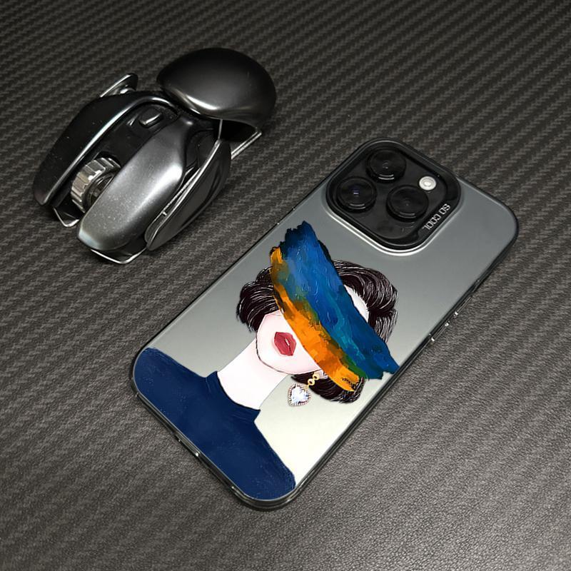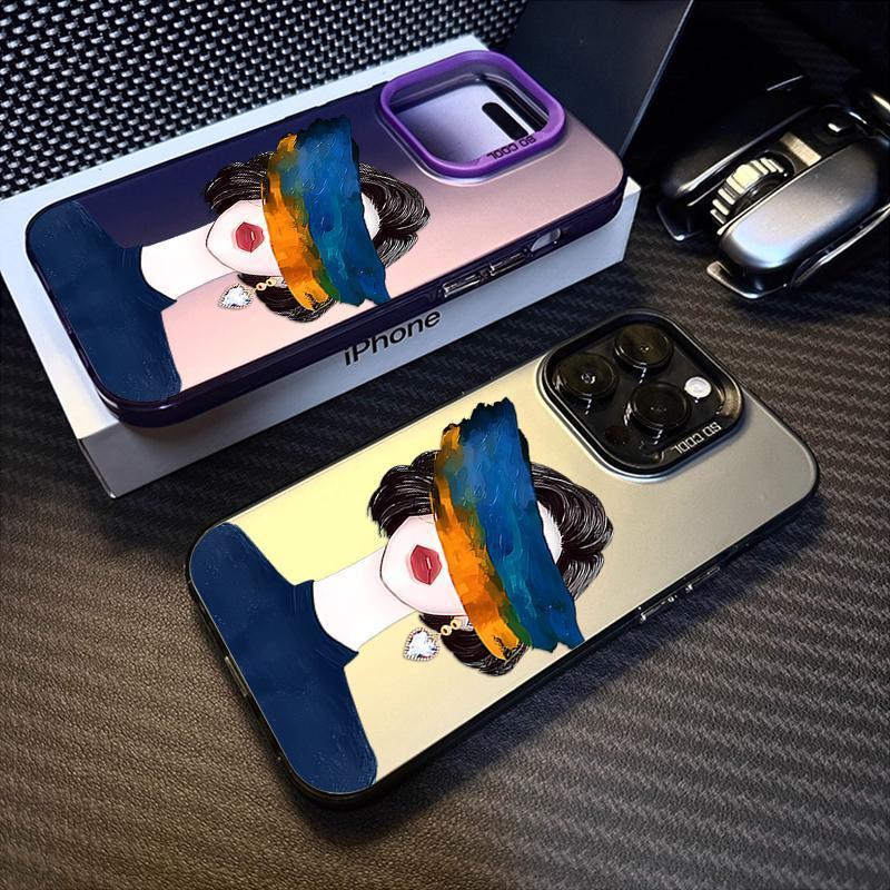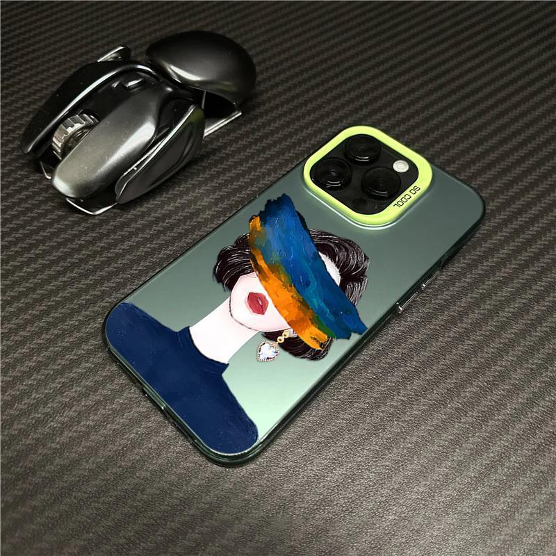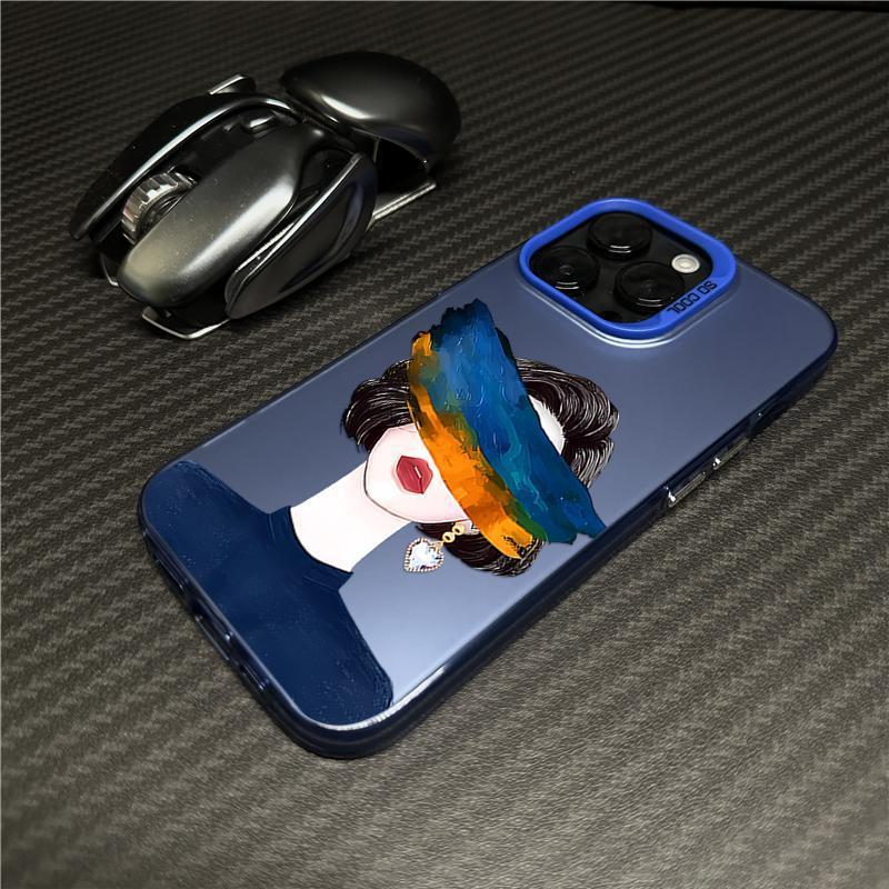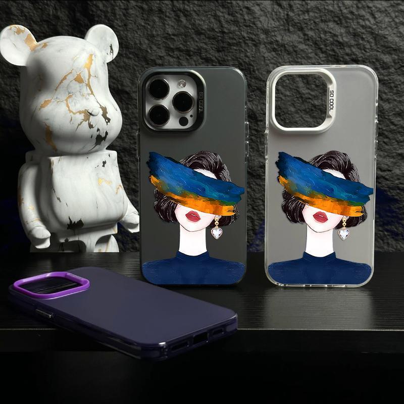 Funda para teléfono móvil Apple 15/14 Huawei OPPO Xiaomi vivo, nueva y creativa, con los ojos vendados, color plata, a prueba de caídas.
