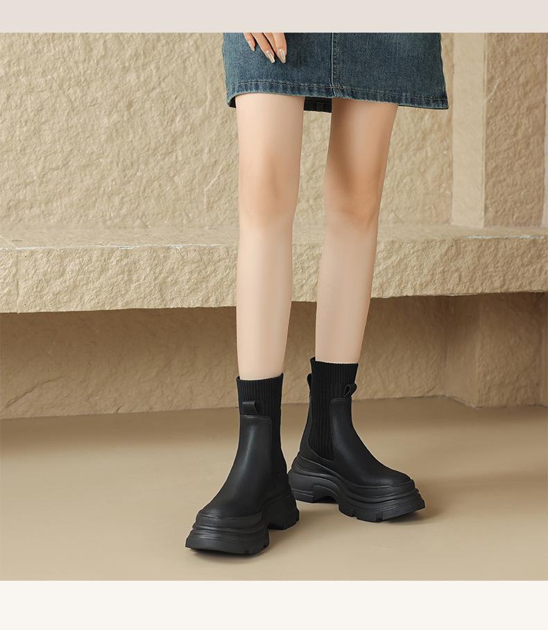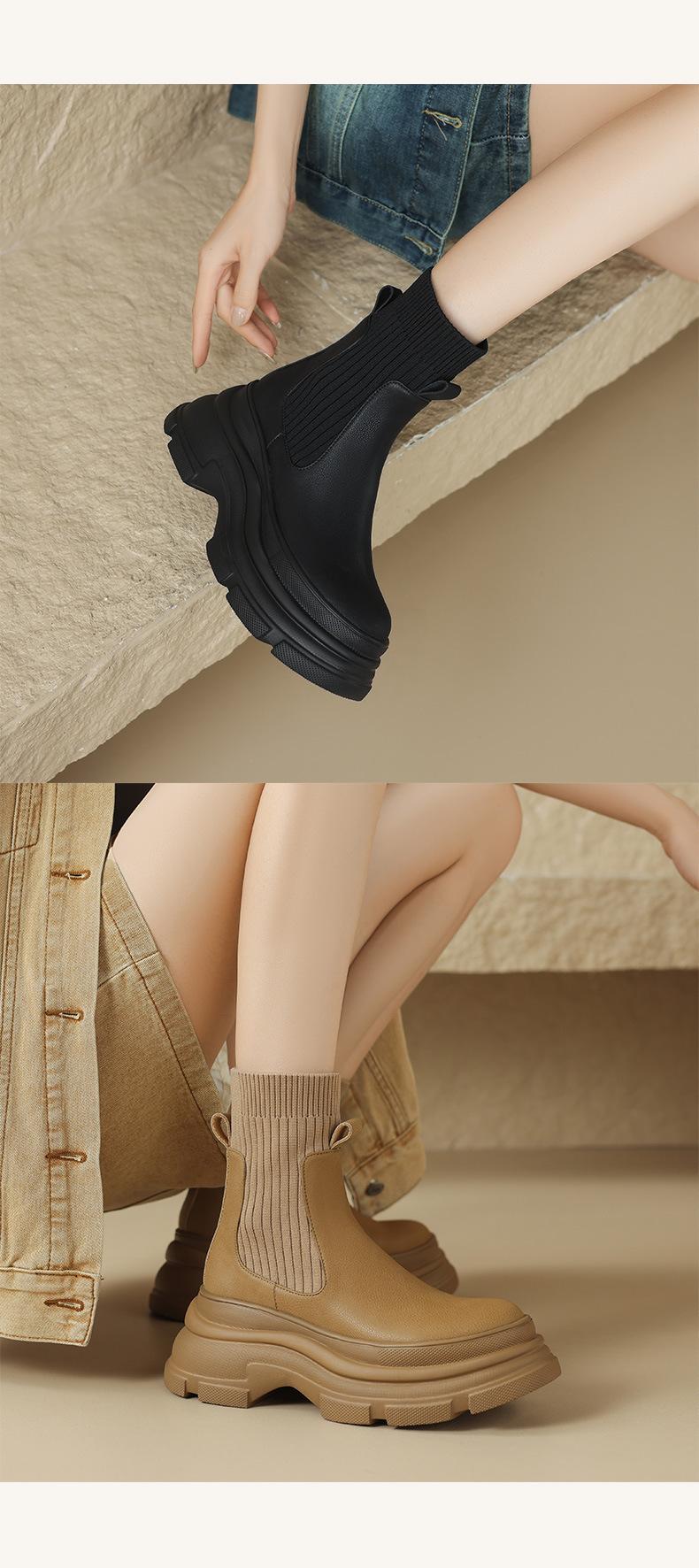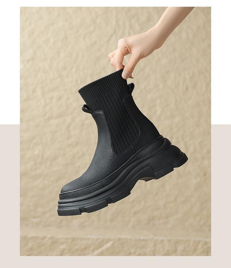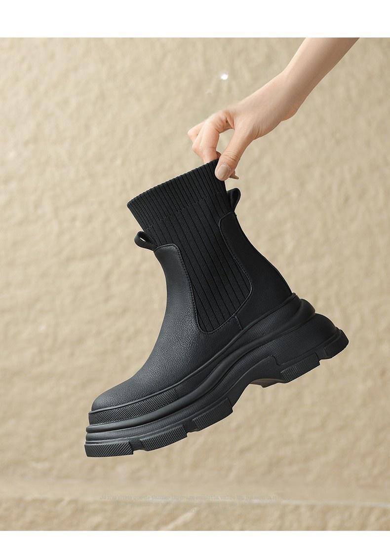 Botas de punto elásticas retro para mujer, otoño e invierno 2024, nuevo estilo, botines de tacón alto adelgazantes con mangas gruesas.