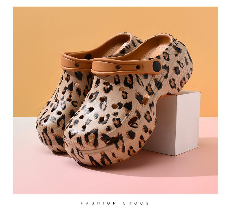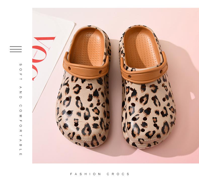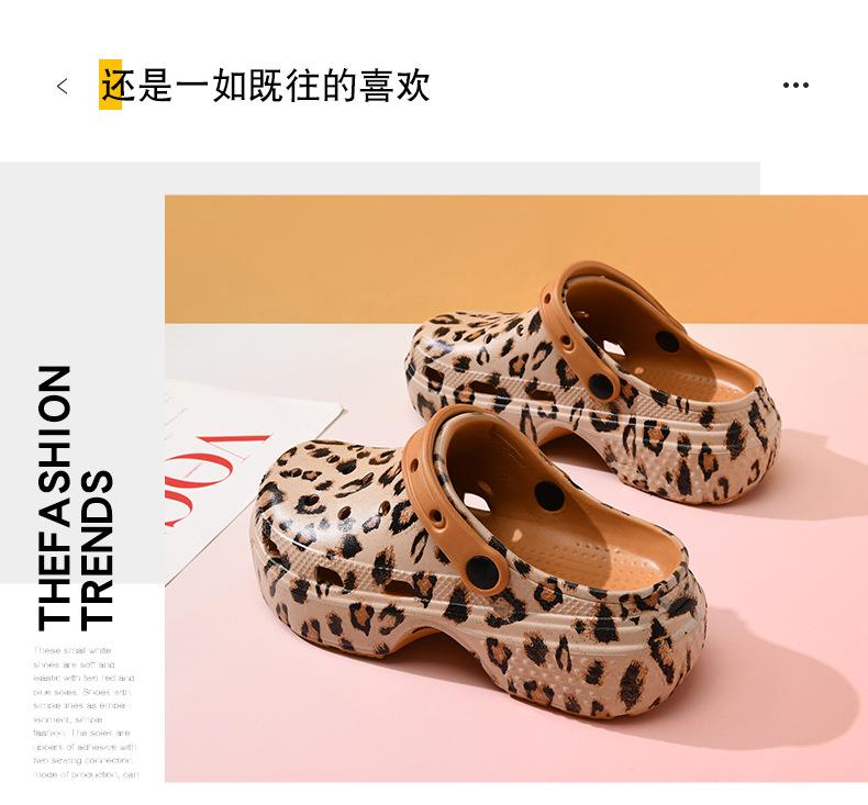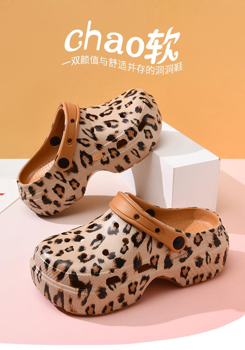 Sandalias de mujer con suela gruesa y estampado de leopardo, antideslizantes, de tiro alto, resistentes al desgaste, transpirables y antiolor, de EVA para playa al aire libre.