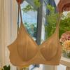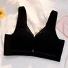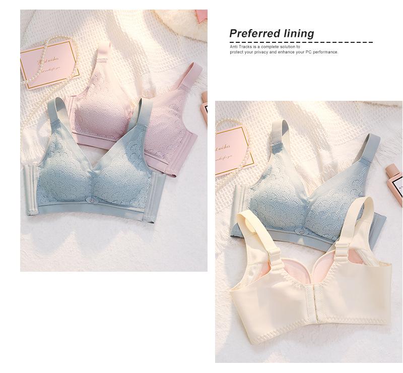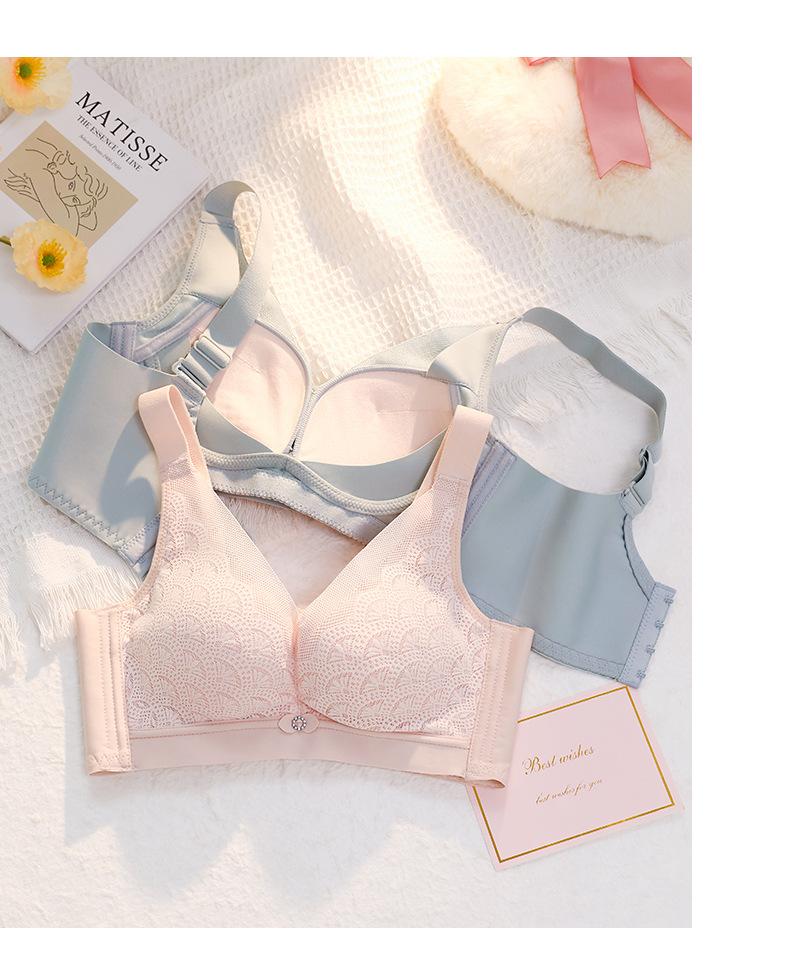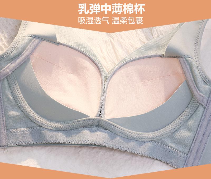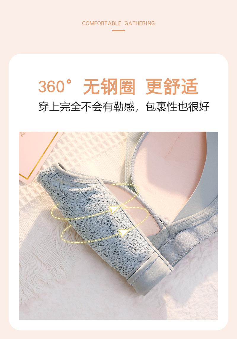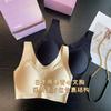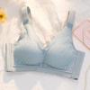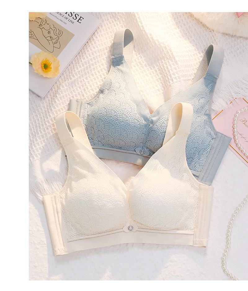 Venta de fábrica, ropa interior de encaje sexy de algodón de leche ligeramente gruesa con copa pequeña suave, tipo ajuste fruncido, sujetador sin aros no magnético