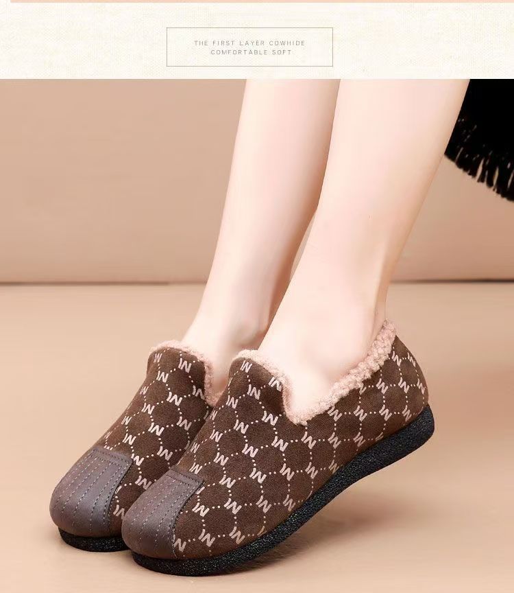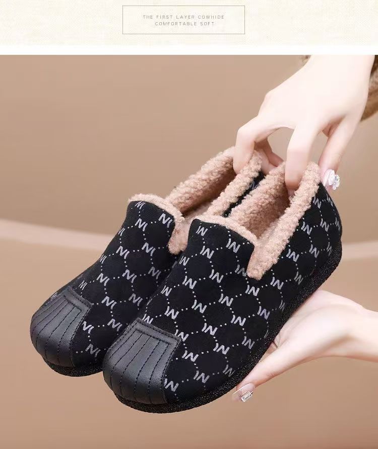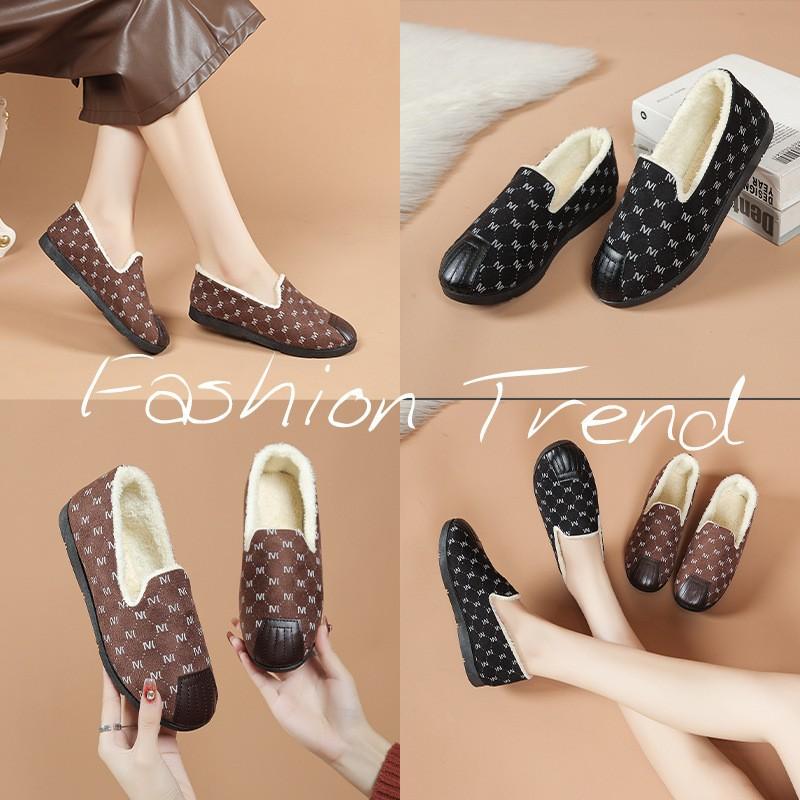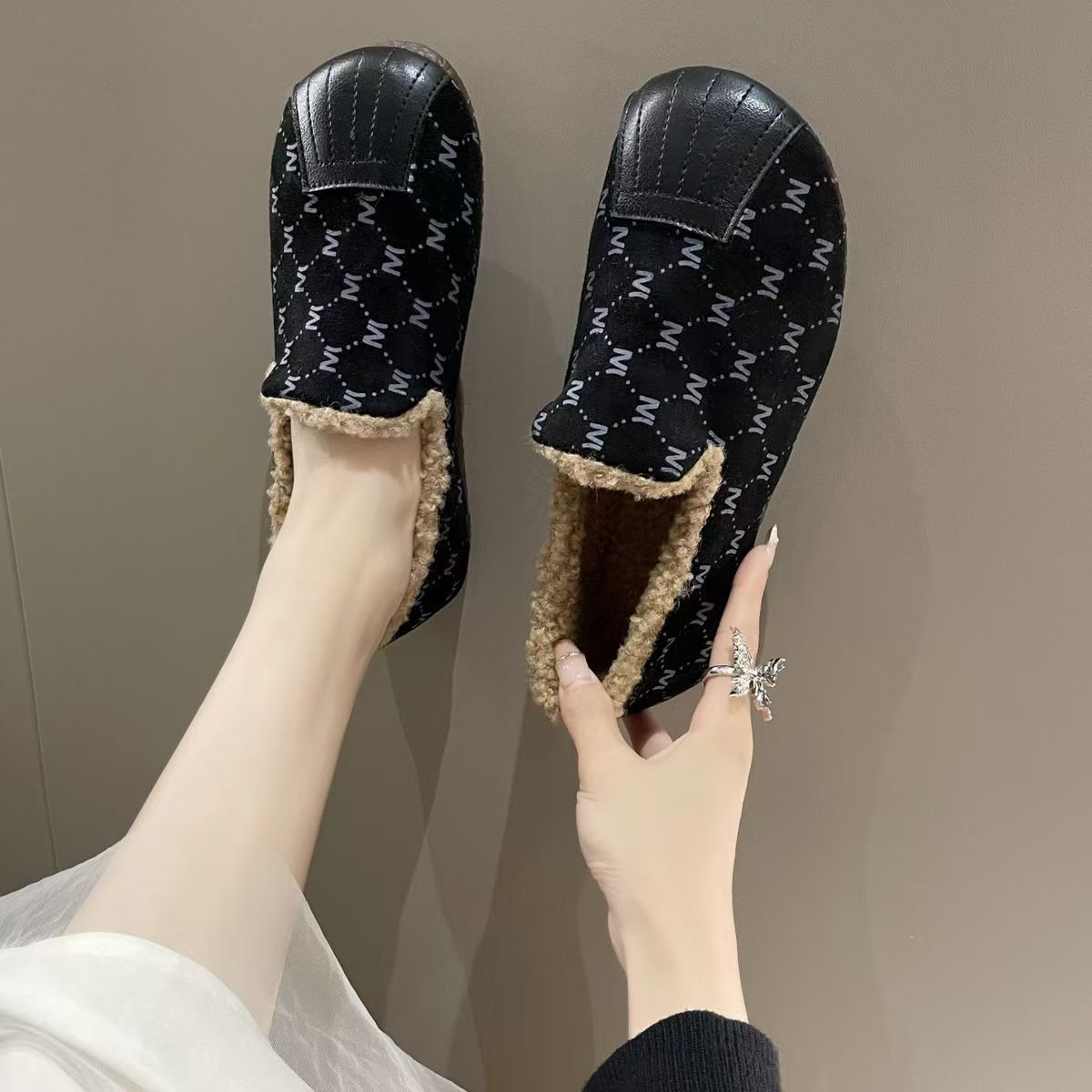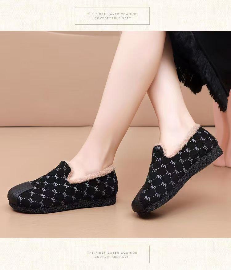 Zapatos forrados de vellón Zapatos de moda para mujer Otoño e Invierno Combinan con todo Cálidos Slip-on Planos Suela suave Zapatos casuales para mujer Zapatos Mao Mao