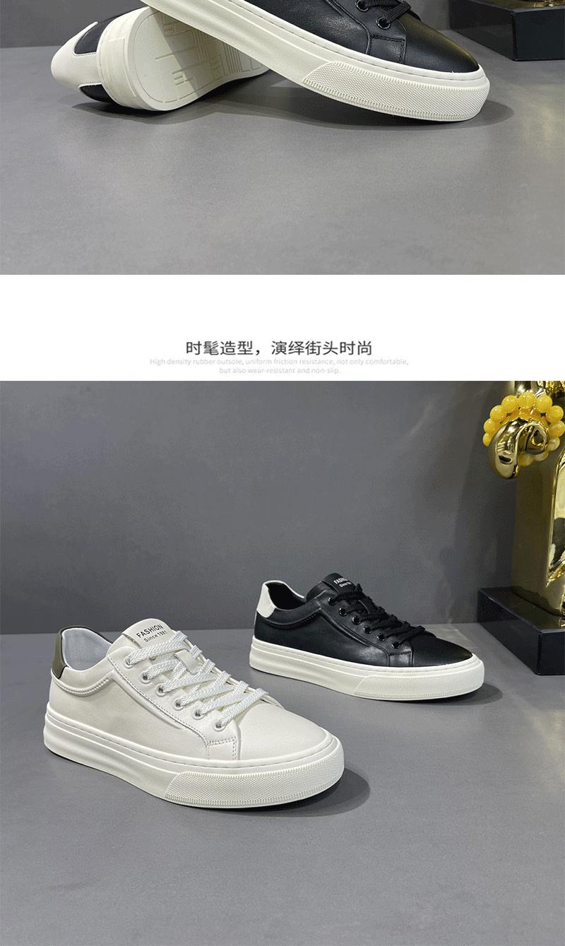 Zapatillas casuales de cuero genuino para hombre, zapatos de moda para hombre, zapatos planos blancos de moda que combinan con todo, zapatos sencillos de otoño de estilo europeo