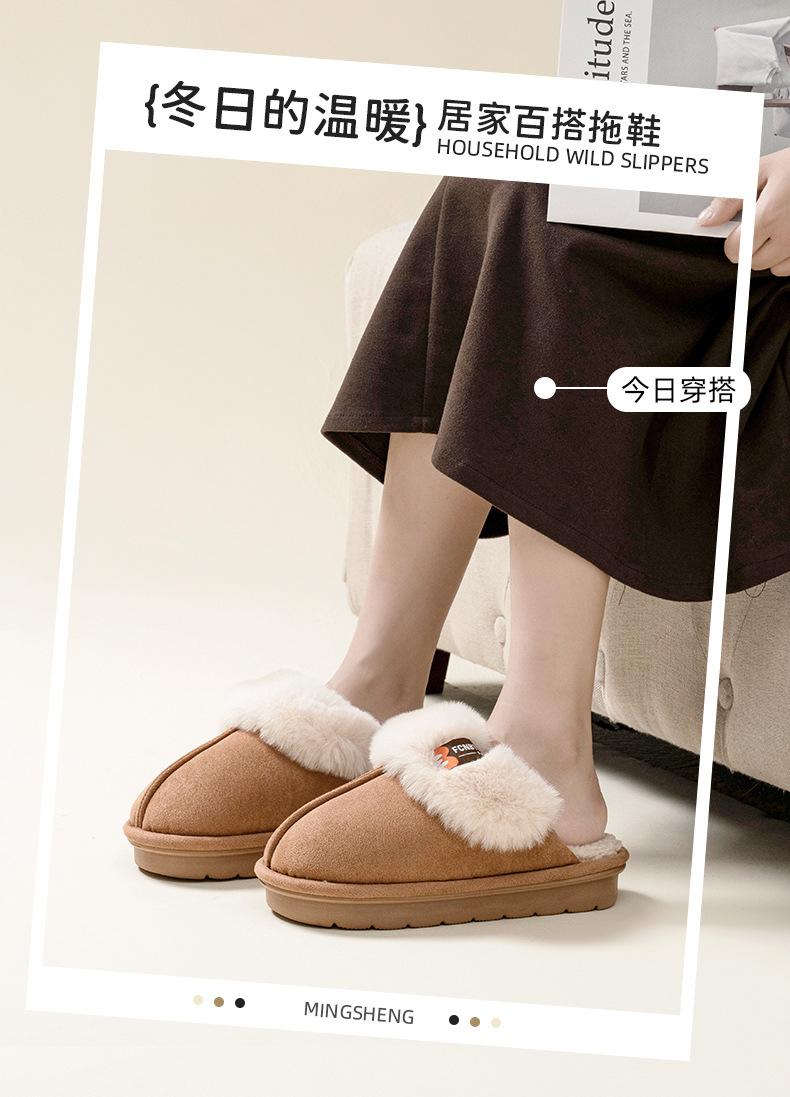 Pantuflas de Algodón para Mujer para Otoño e Invierno 2025, Nuevas Pantuflas Cálidas de Felpa para Interior para Casa de Suela Gruesa para Exterior, Pantuflas Peludas para Hombre, Exportación