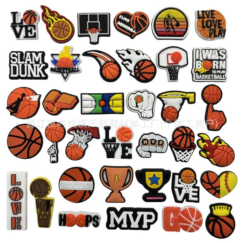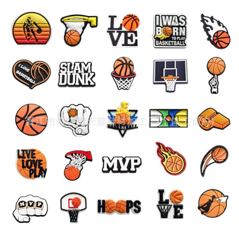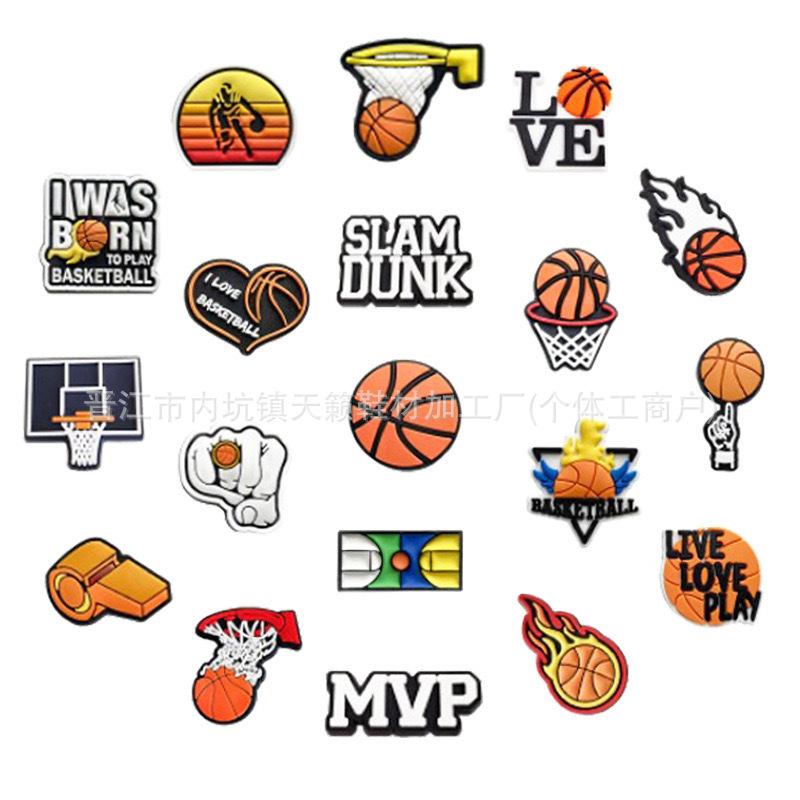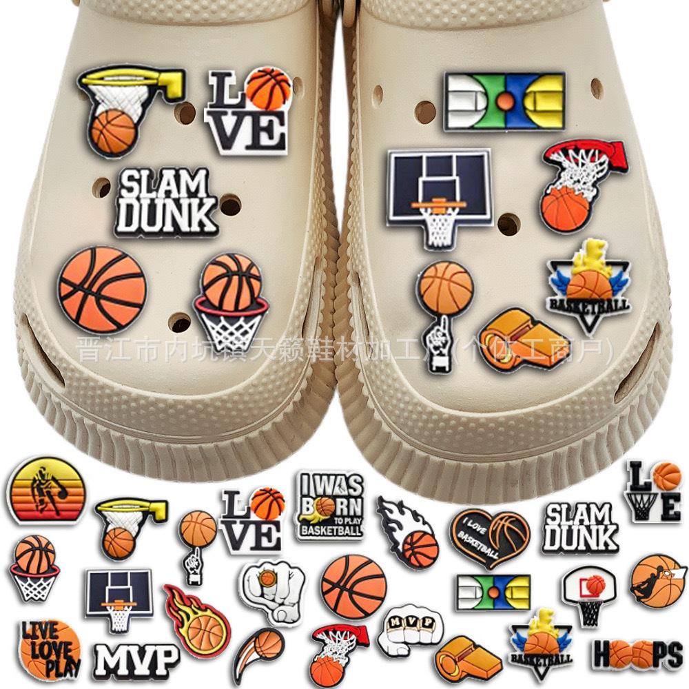 Zapatos deportivos con agujeros y temática de baloncesto, con hebillas de flores para jardín, de PVC, de goma suave, extraíbles, accesorios decorativos para bricolaje.