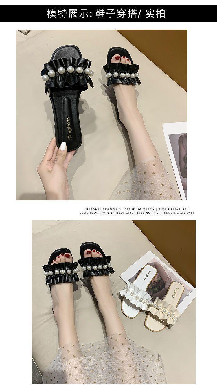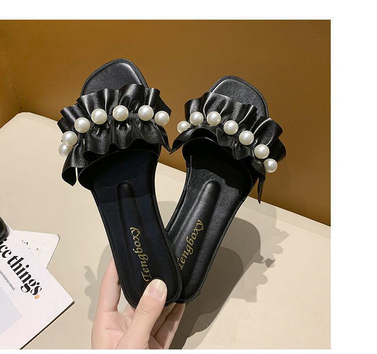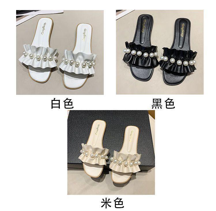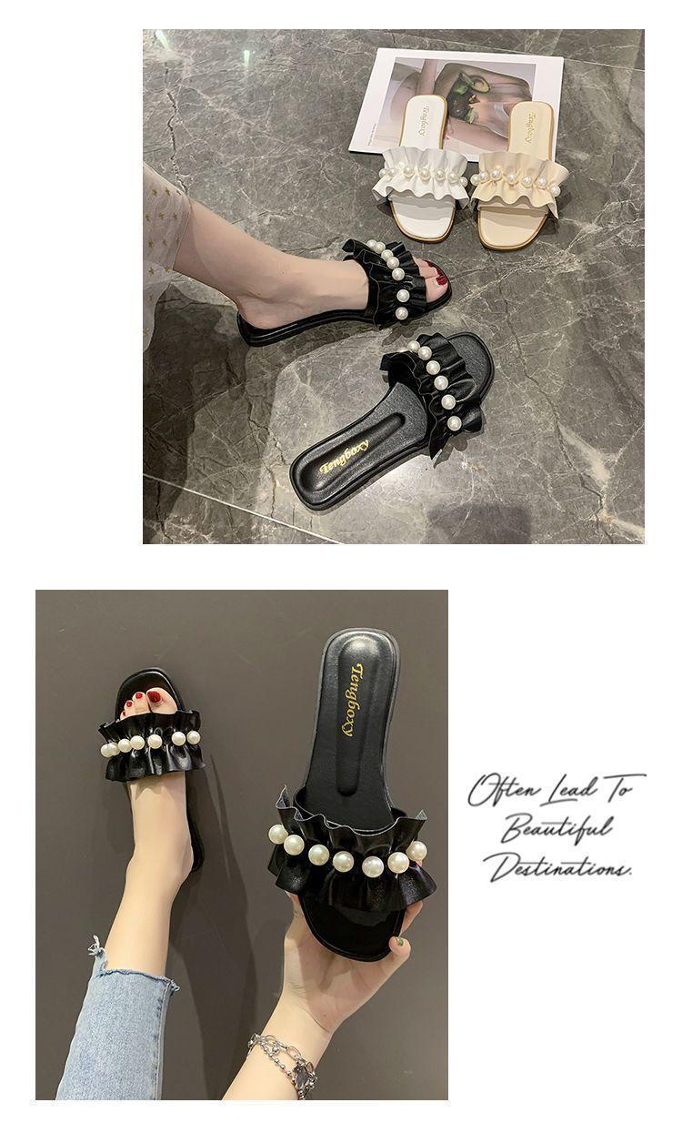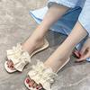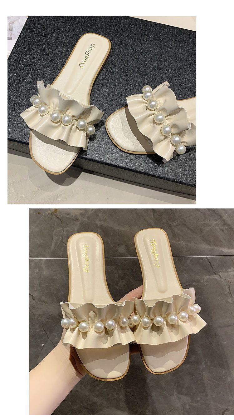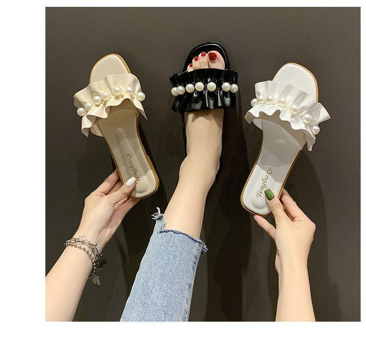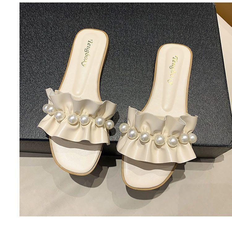 Sandálias femininas de verão ao ar livre na moda 2023 Nova moda estilo fada doce pérola flor chinelos baixos