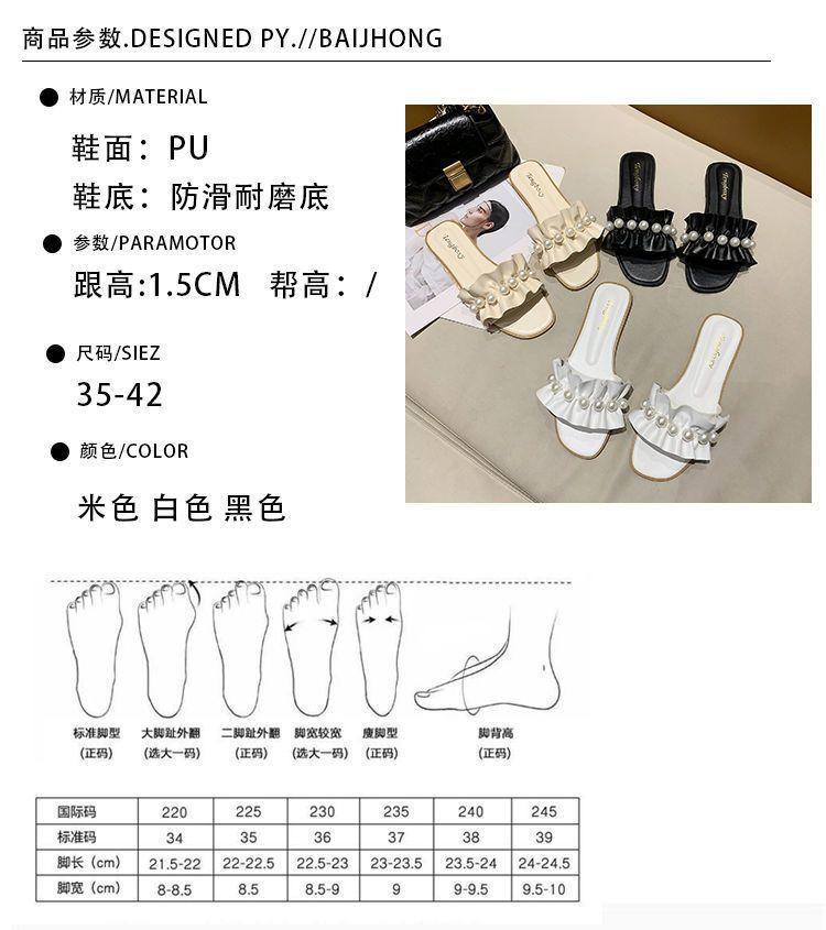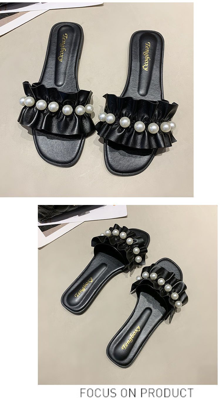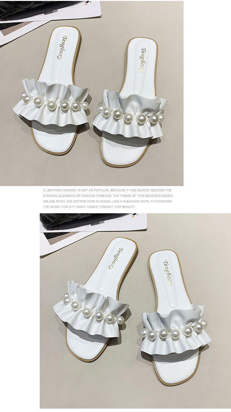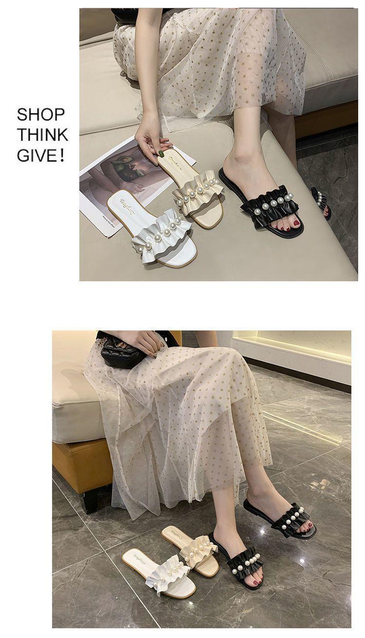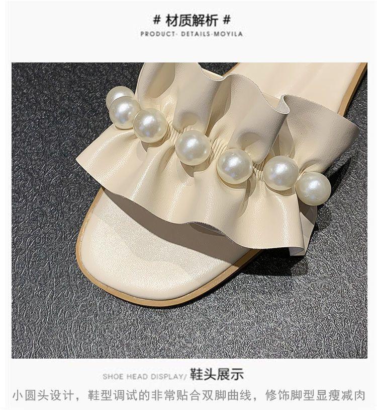 Sandálias femininas de verão ao ar livre na moda 2023 Nova moda estilo fada doce pérola flor chinelos baixos
