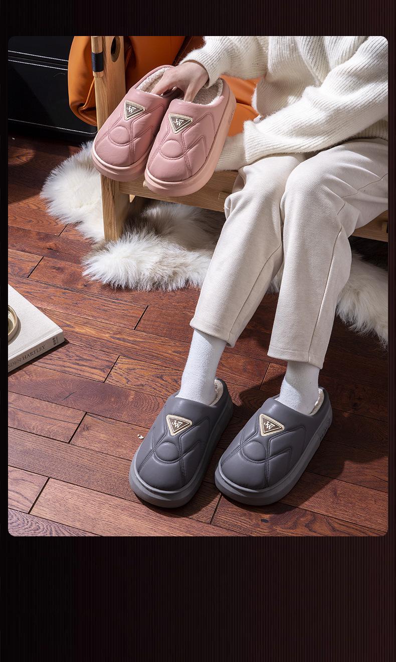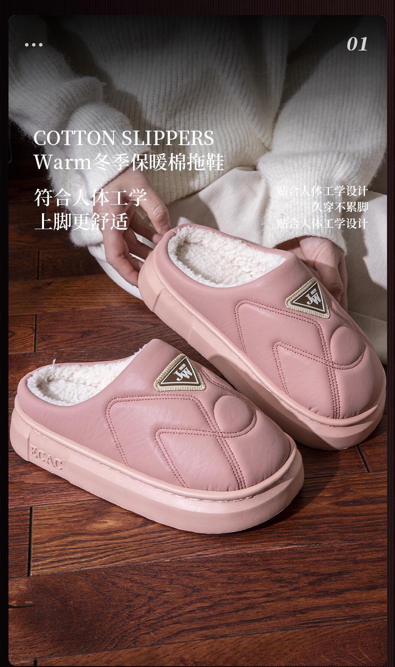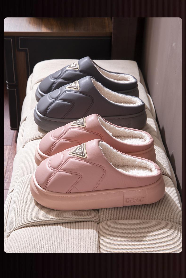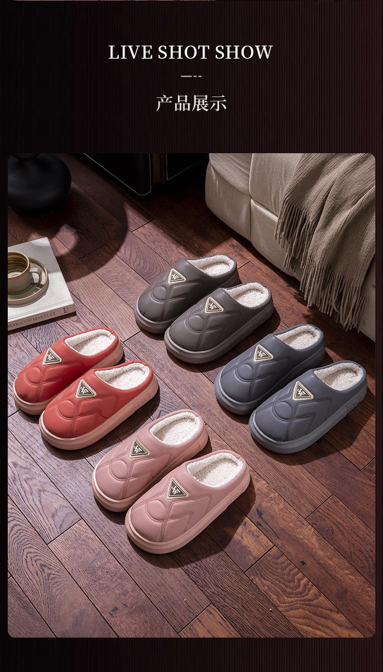 Pantuflas de Algodón Impermeables Nuevas para Mujer Otoño e Invierno Pareja Hogar Suela Gruesa Antideslizante con Forro Polar Cálidas Cómodas Pantuflas de Algodón para Hombre