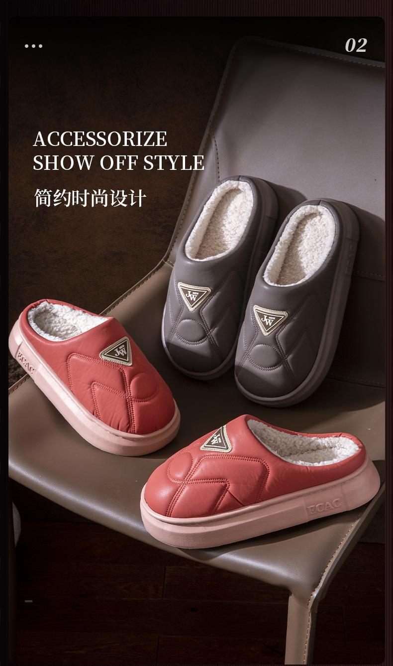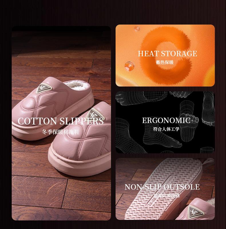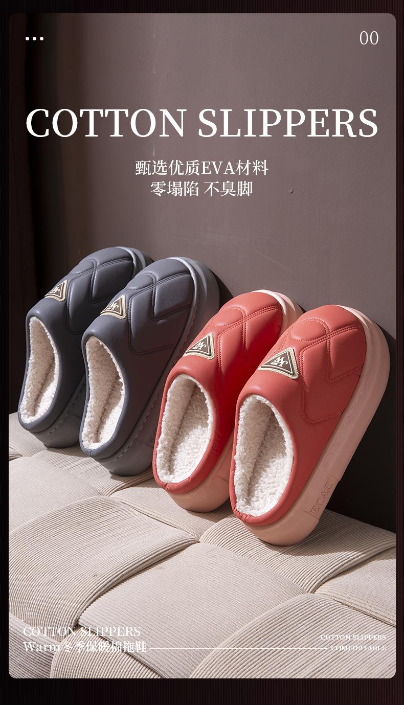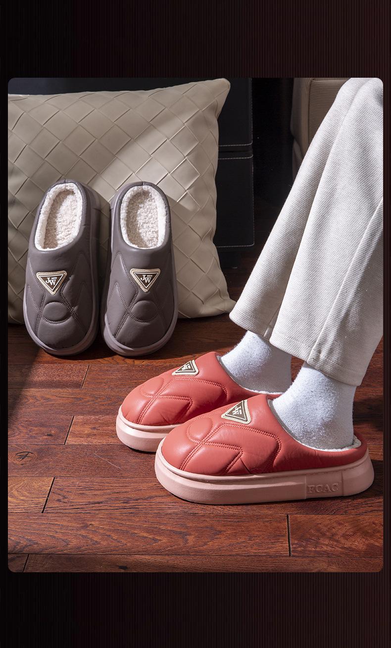 Pantuflas de Algodón Impermeables Nuevas para Mujer Otoño e Invierno Pareja Hogar Suela Gruesa Antideslizante con Forro Polar Cálidas Cómodas Pantuflas de Algodón para Hombre