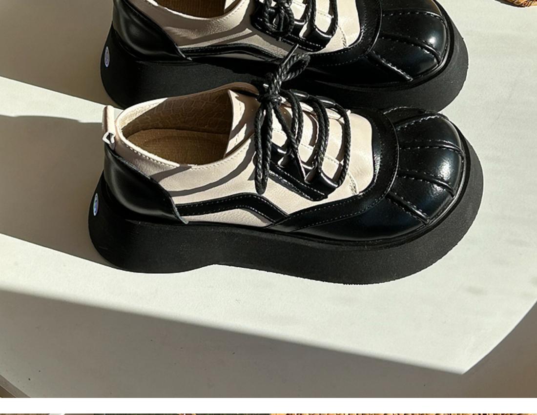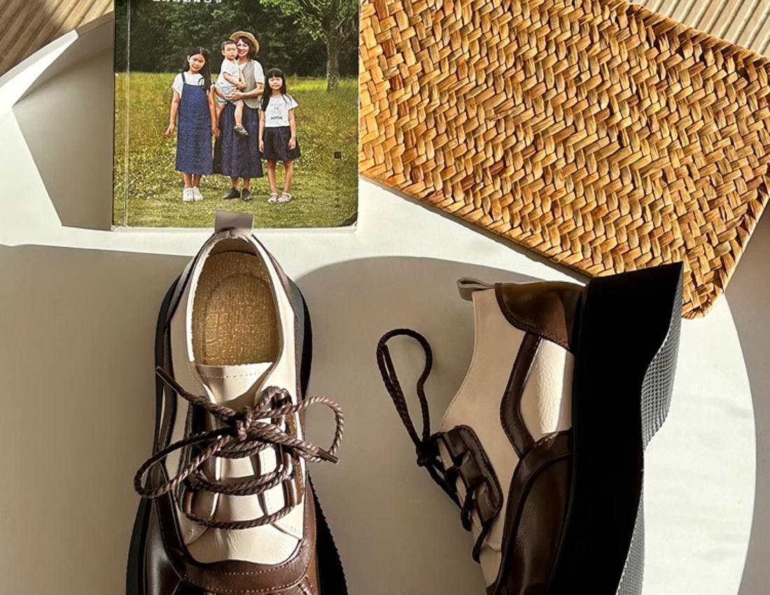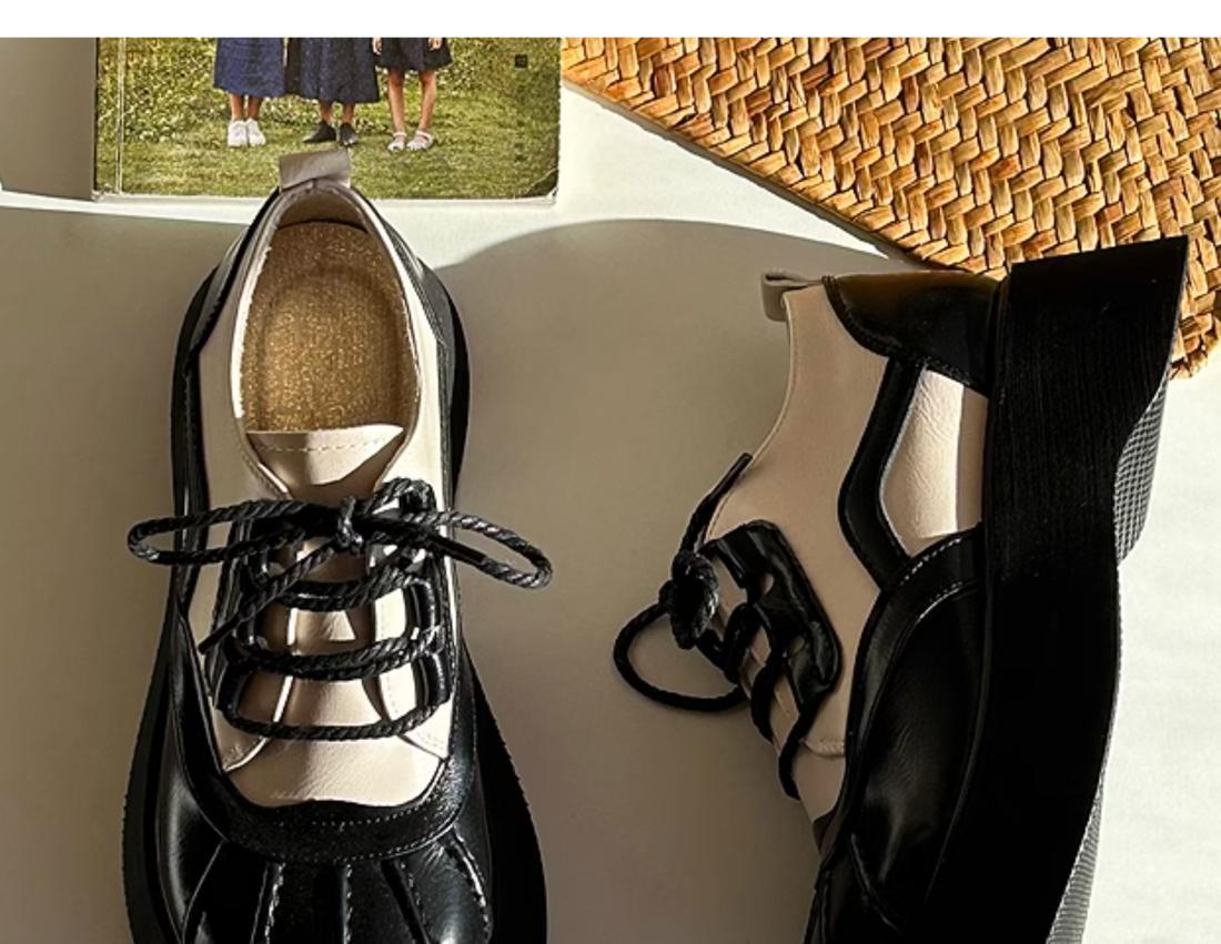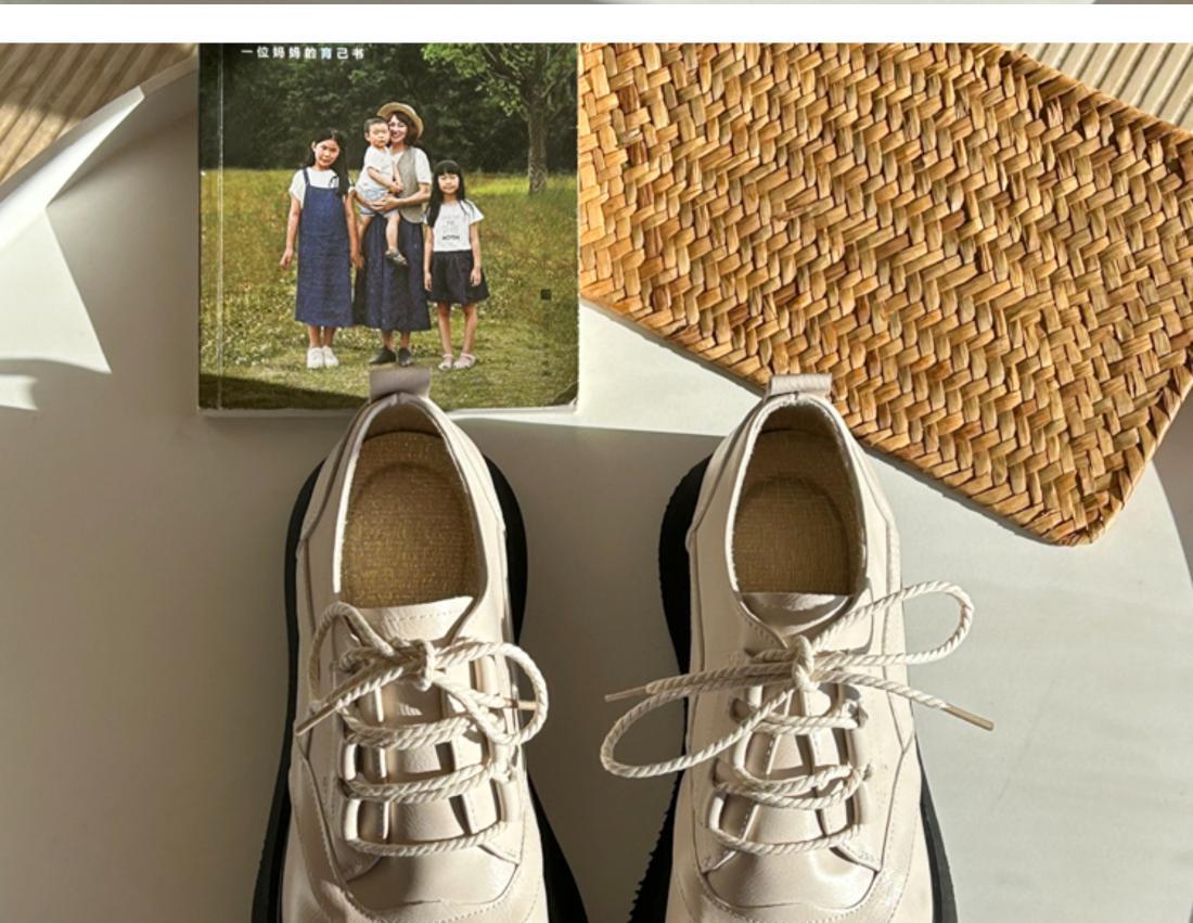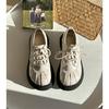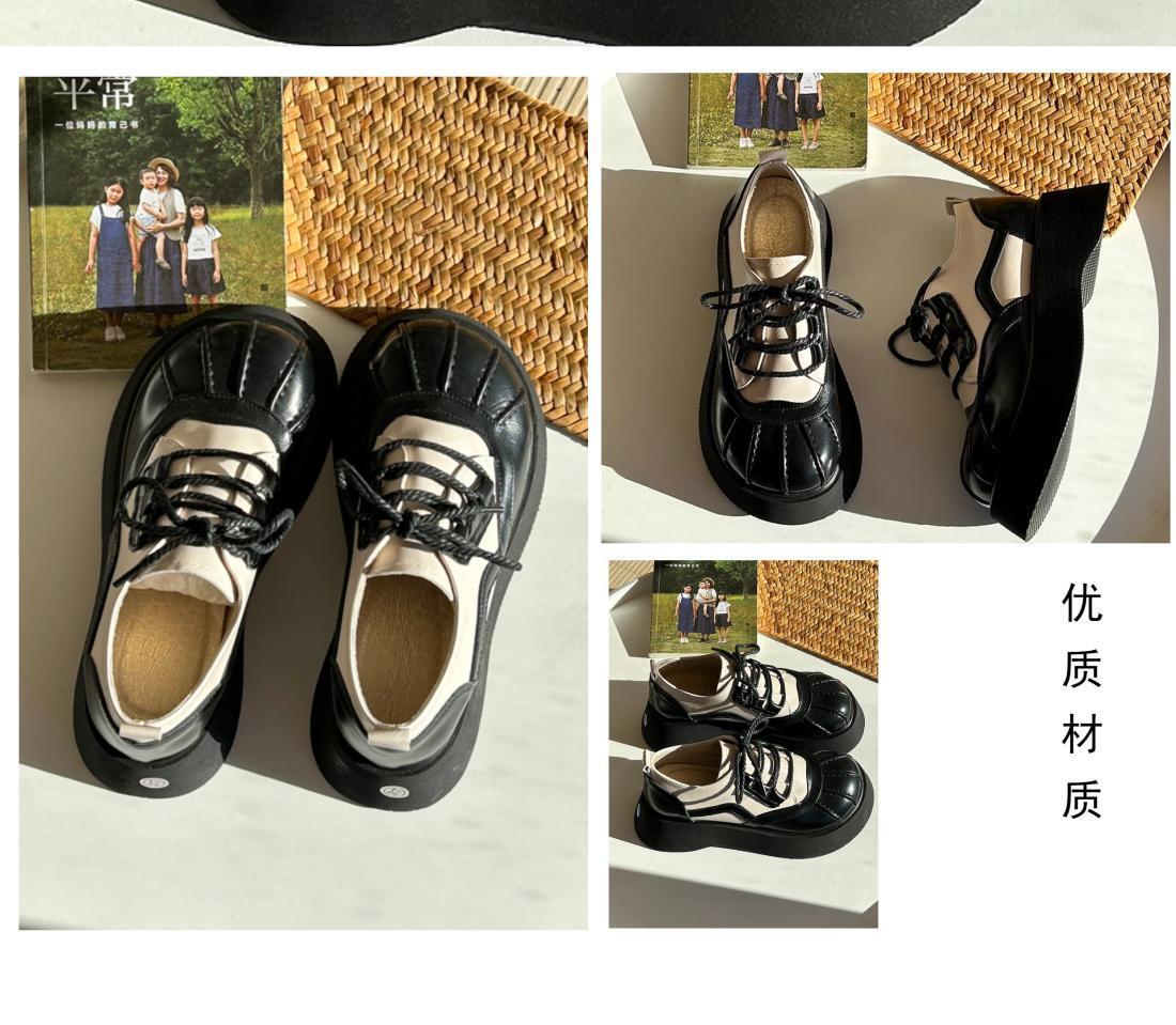 Zapatos Retro de Punta Redonda con Cordones, Suela Gruesa, Versátiles, de Punta Ancha, Primavera 2025 Nuevo, Aumentantes de Altura, Versátiles, Casuales, de Cuero Pequeño