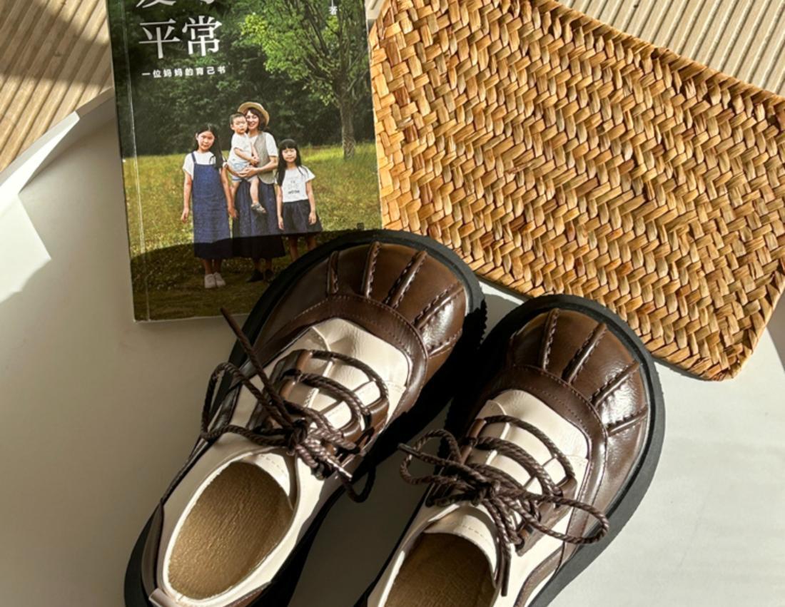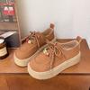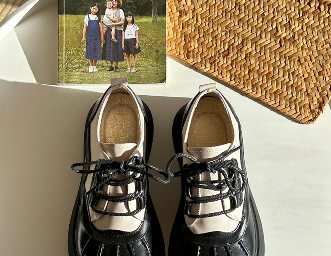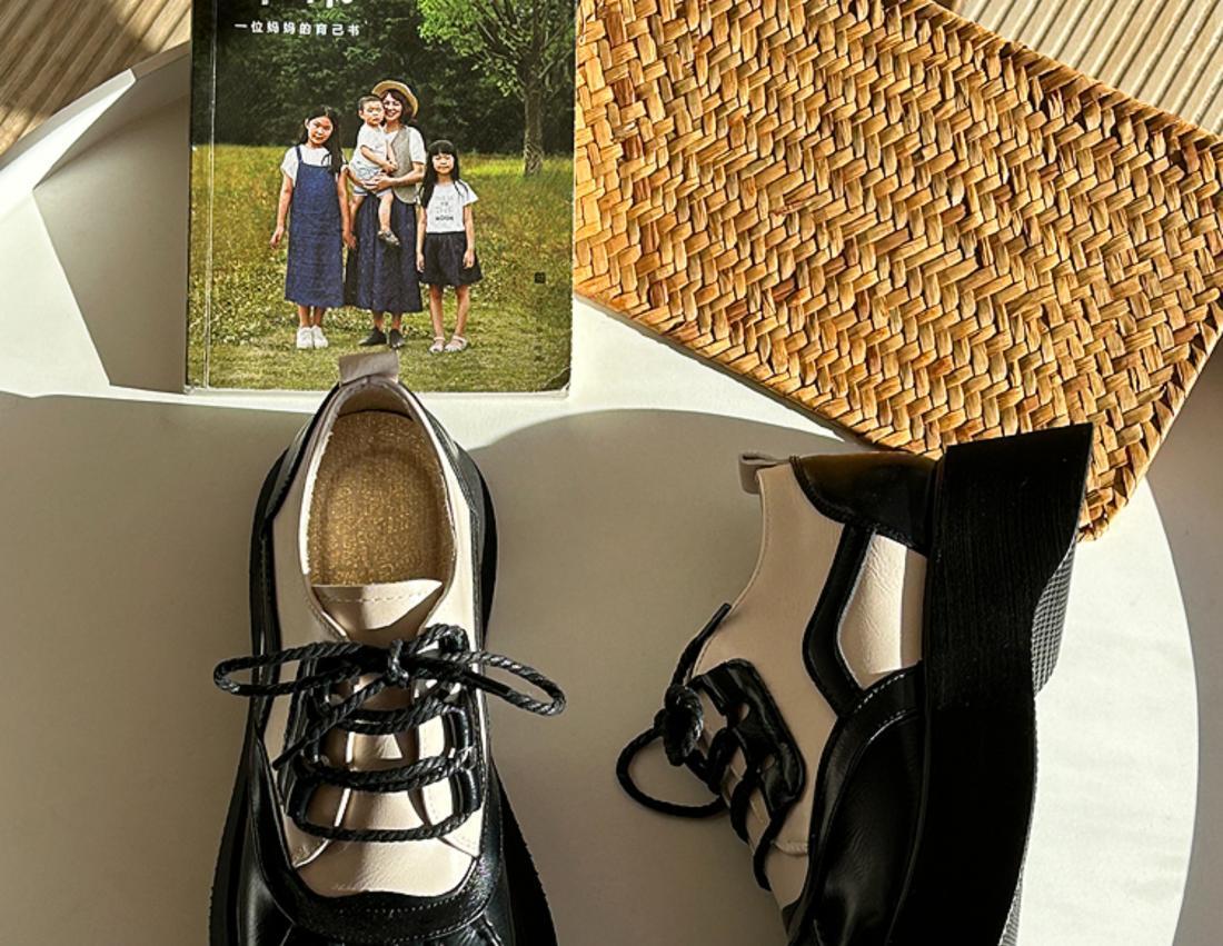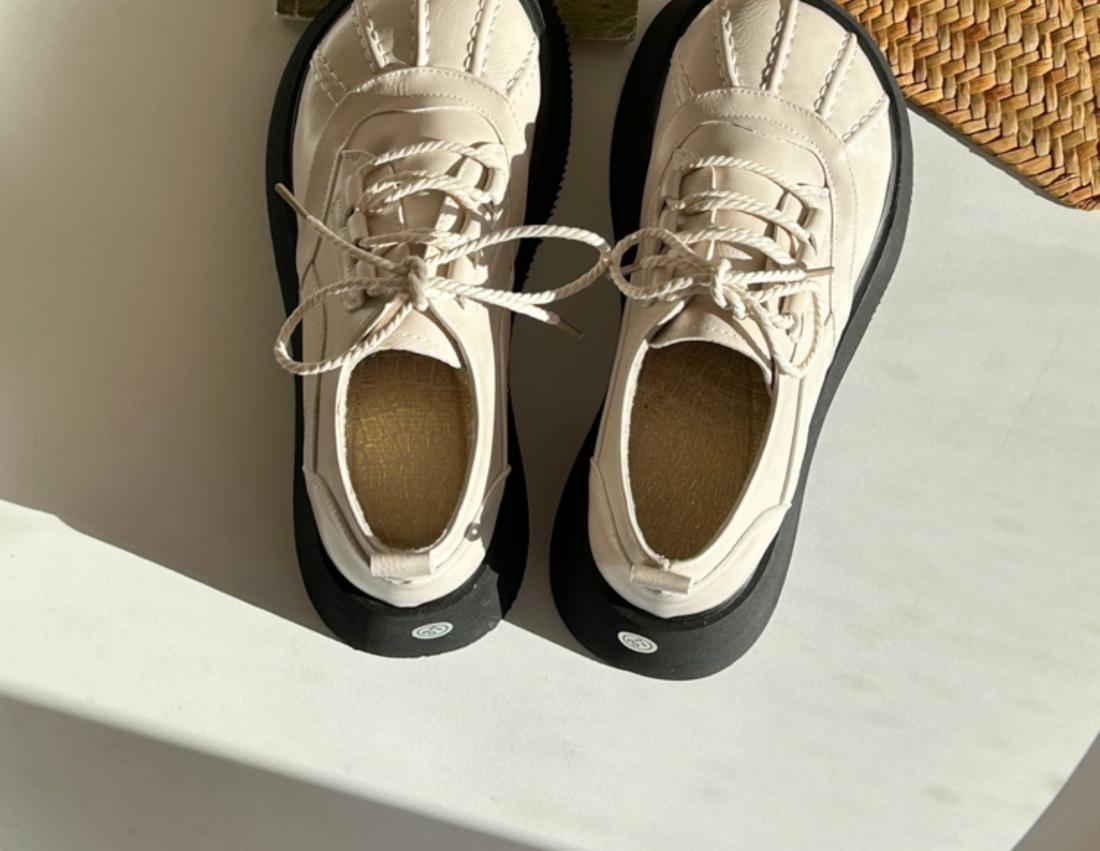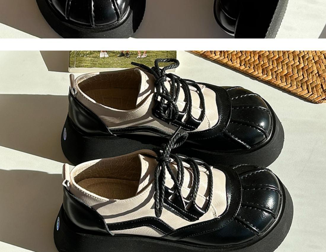Zapatos Retro de Punta Redonda con Cordones, Suela Gruesa, Versátiles, de Punta Ancha, Primavera 2025 Nuevo, Aumentantes de Altura, Versátiles, Casuales, de Cuero Pequeño