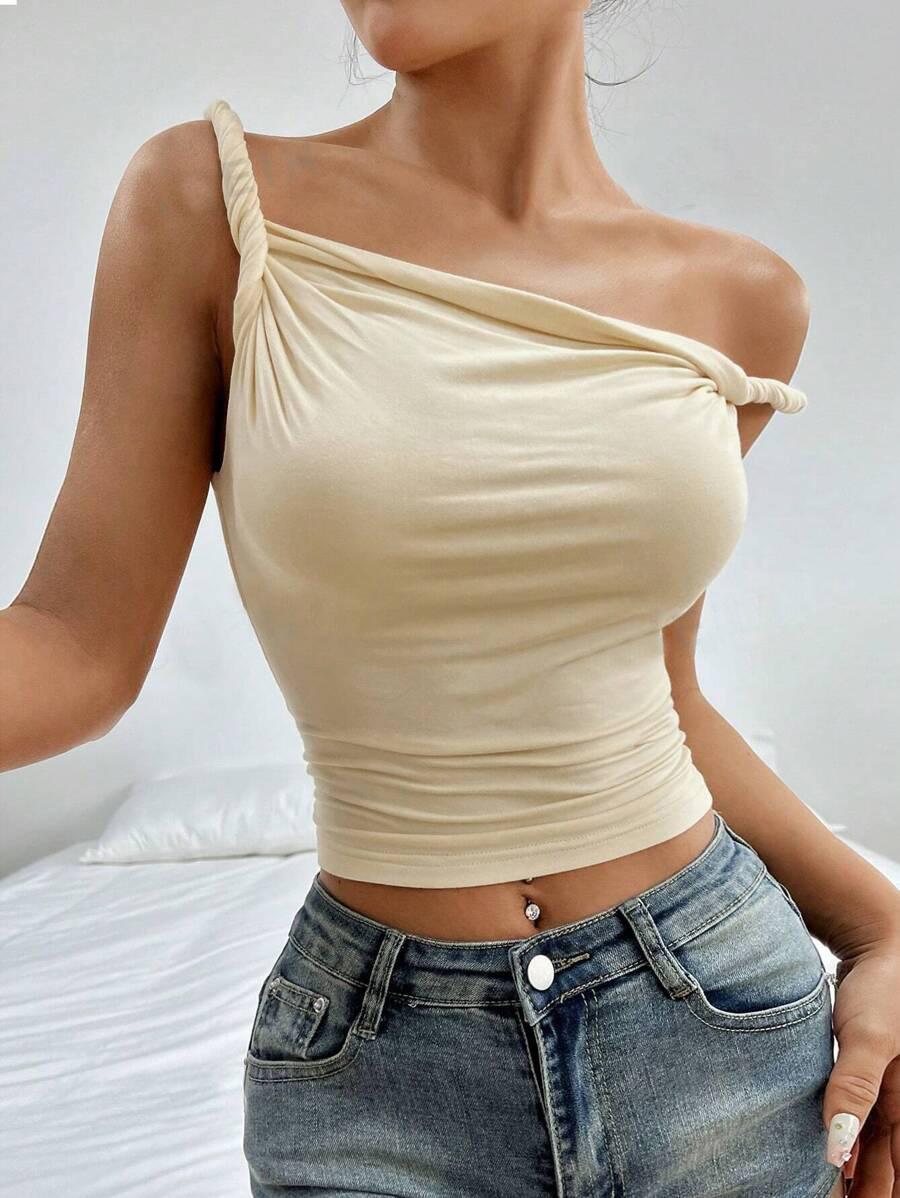 Chaleco sexy sin mangas con tirantes torcidos, ajustado, de color liso, para mujer, Amazon Cross-border 2024
