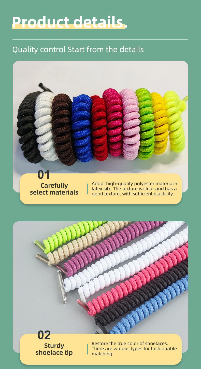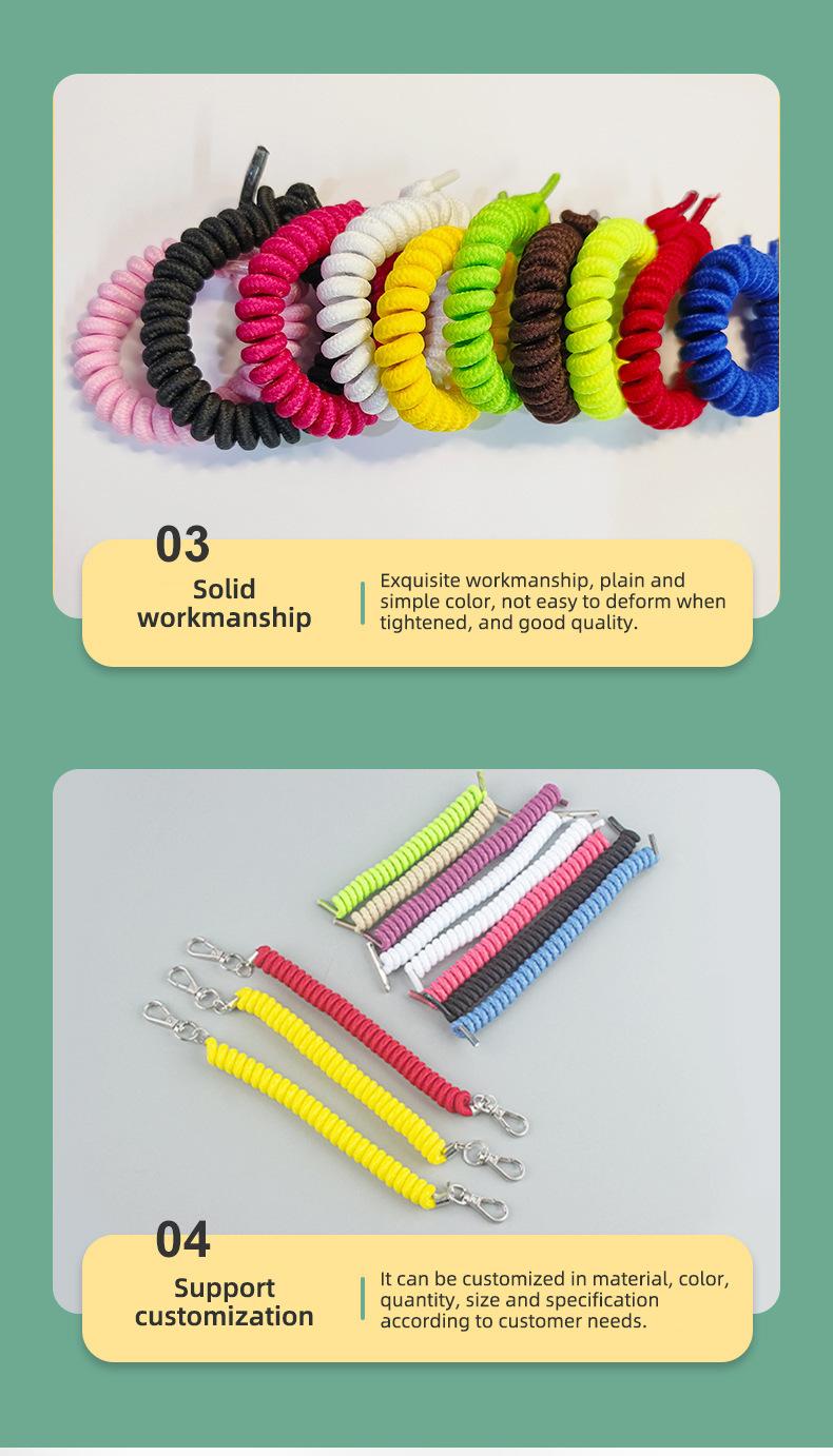 Cordón de látex en espiral para zapatos, cuerda elástica de poliéster para teléfono, para deportes, tabla, sin ataduras
