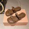 Sandalias y pantuflas informales transpirables con hebilla de cinturón, estilo retro, de suela plana, para mujer, novedad de verano de 2024