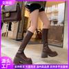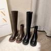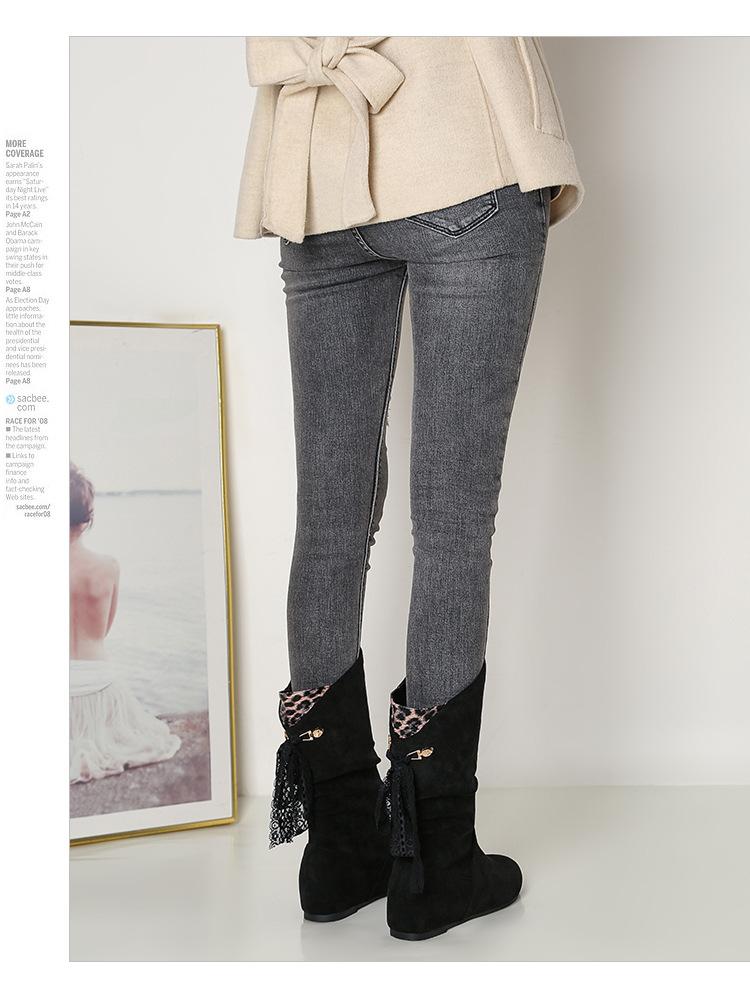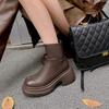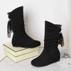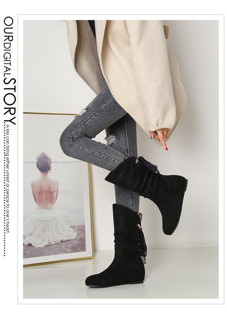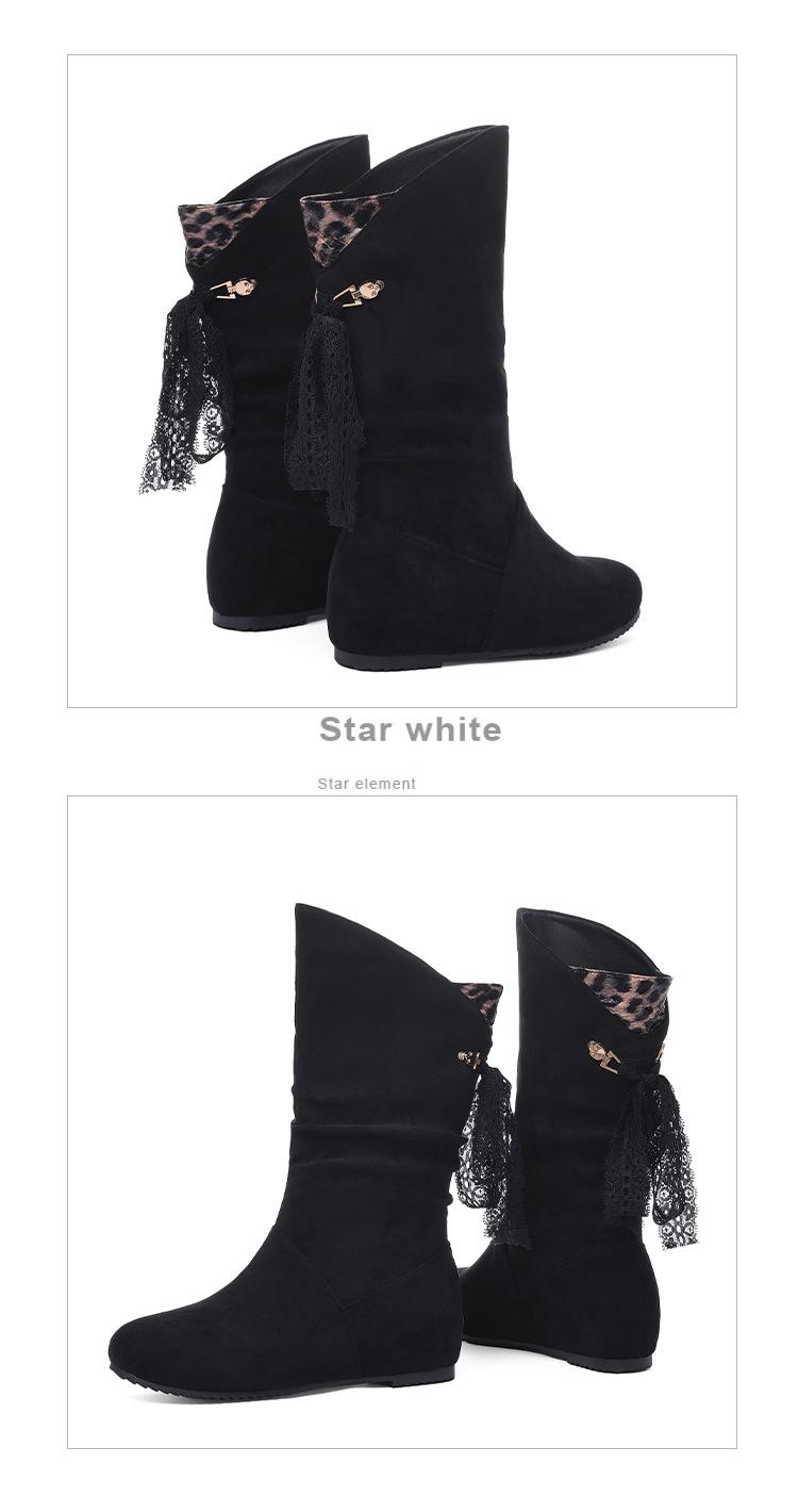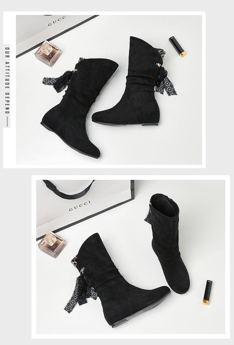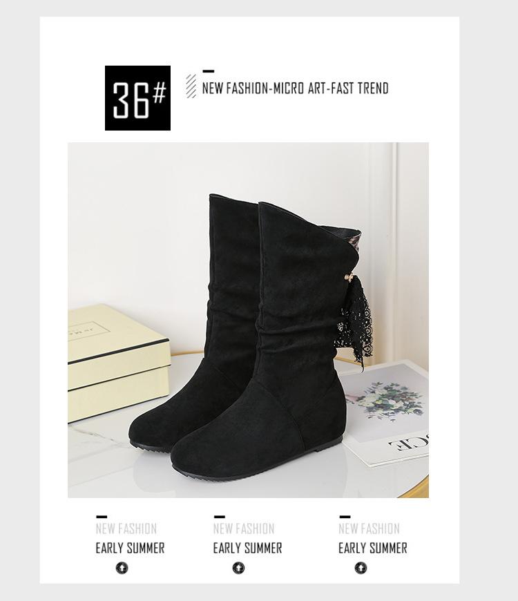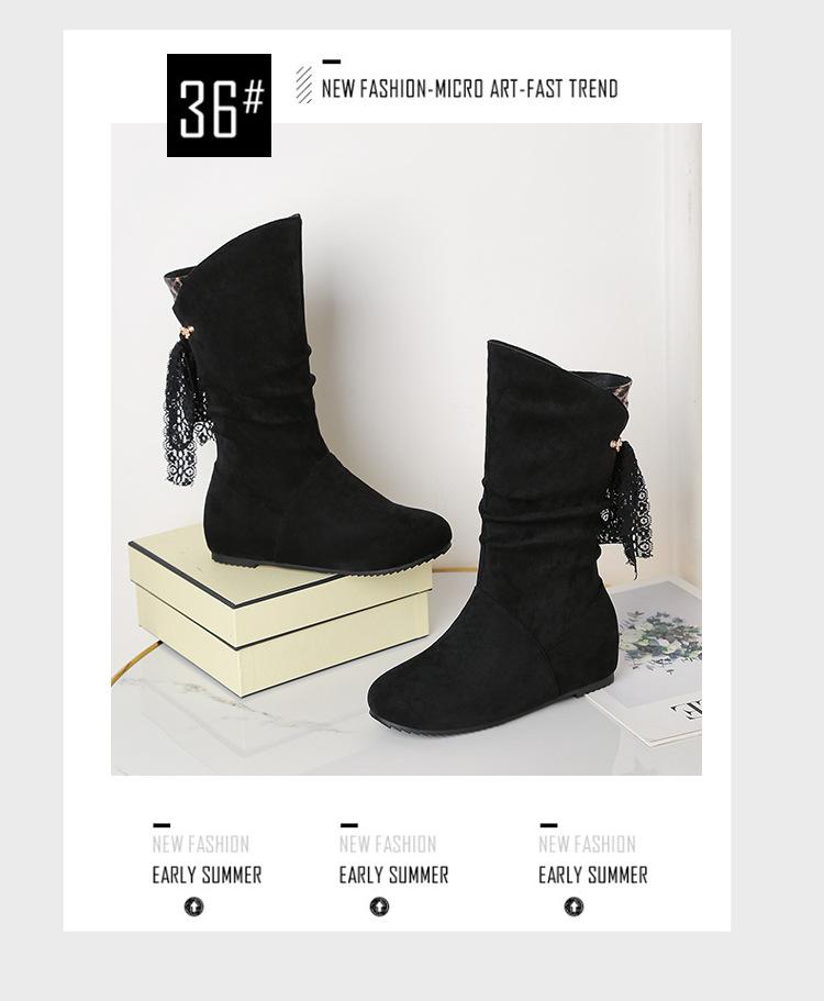 Botas de media caña para mujer, de otoño e invierno, con tacón interior elevado y punta redonda de ante, talla grande 3543, con cordones traseros.