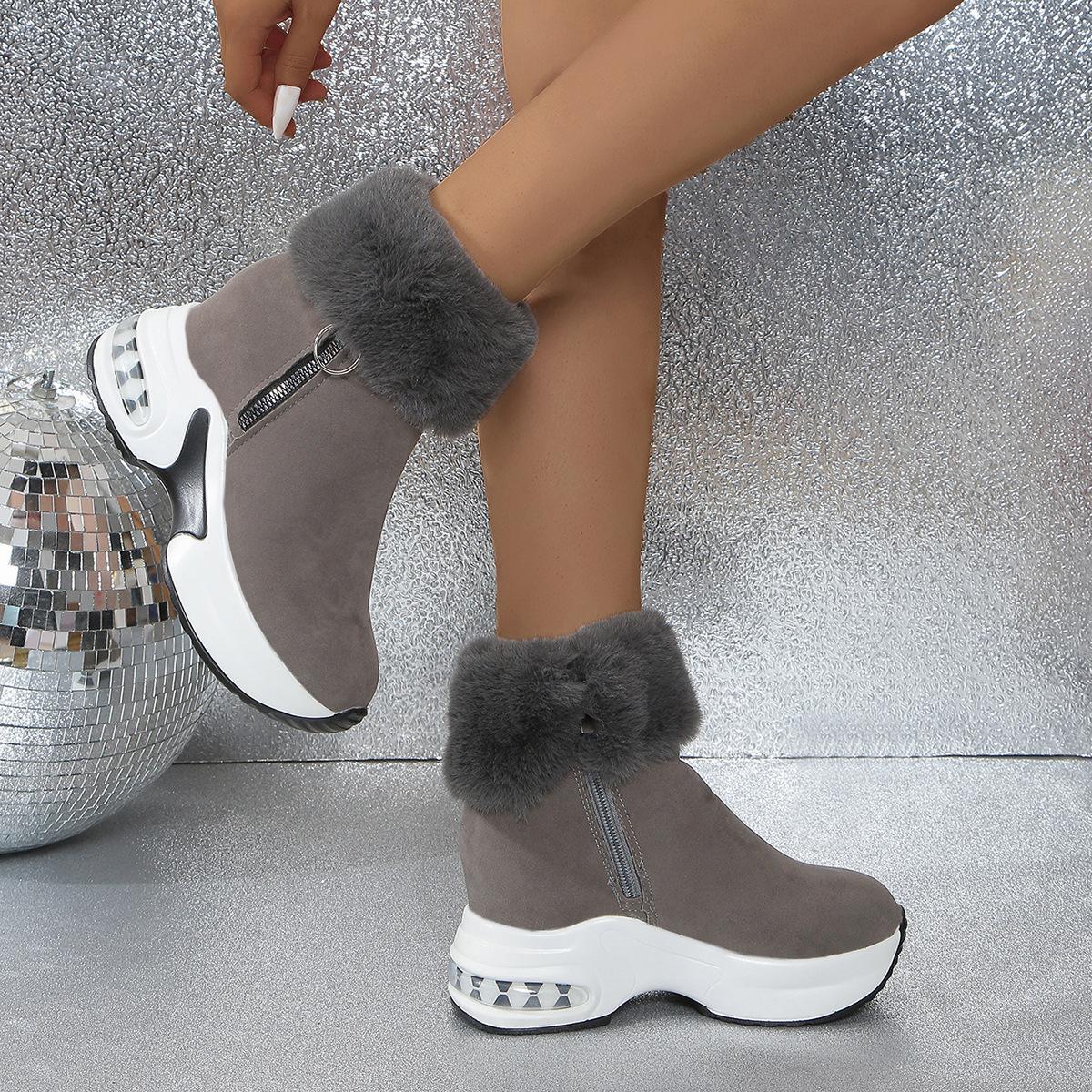 Comercio exterior transfronterizo talla grande botas de nieve para mujer 2024 invierno nuevo europeo y americano pelo erizado tubo corto forro polar cálido botas de algodón aumentadas
