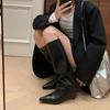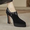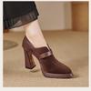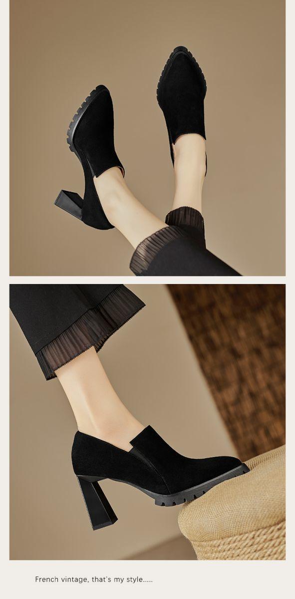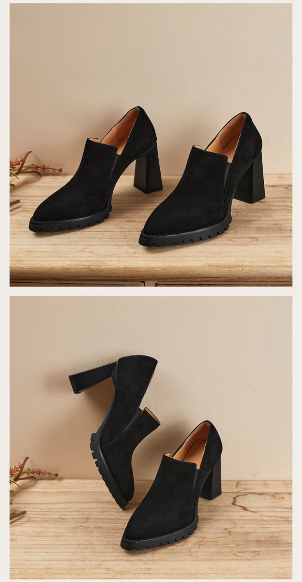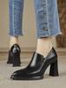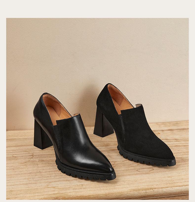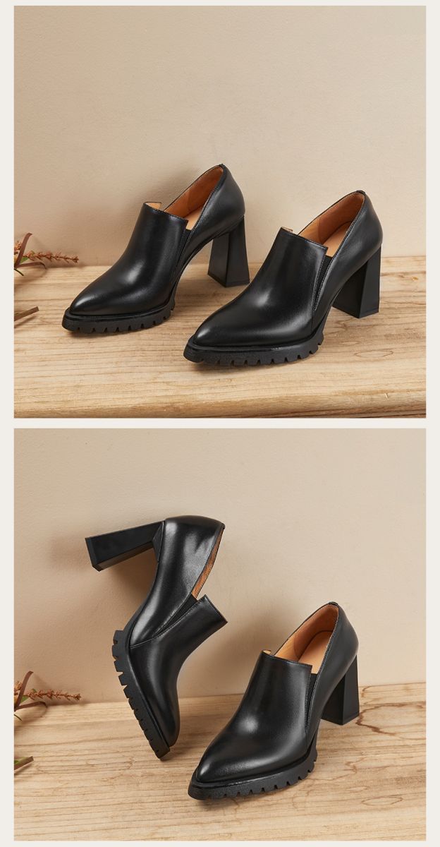 Zapatos de Moda de Tacón Alto con Corte Profundo para Mujer 2025 Primavera y Otoño Nuevos Punta Afilada Tacón Grueso Plataforma Versátil Zapatos de Cuero Versátiles para Mujer