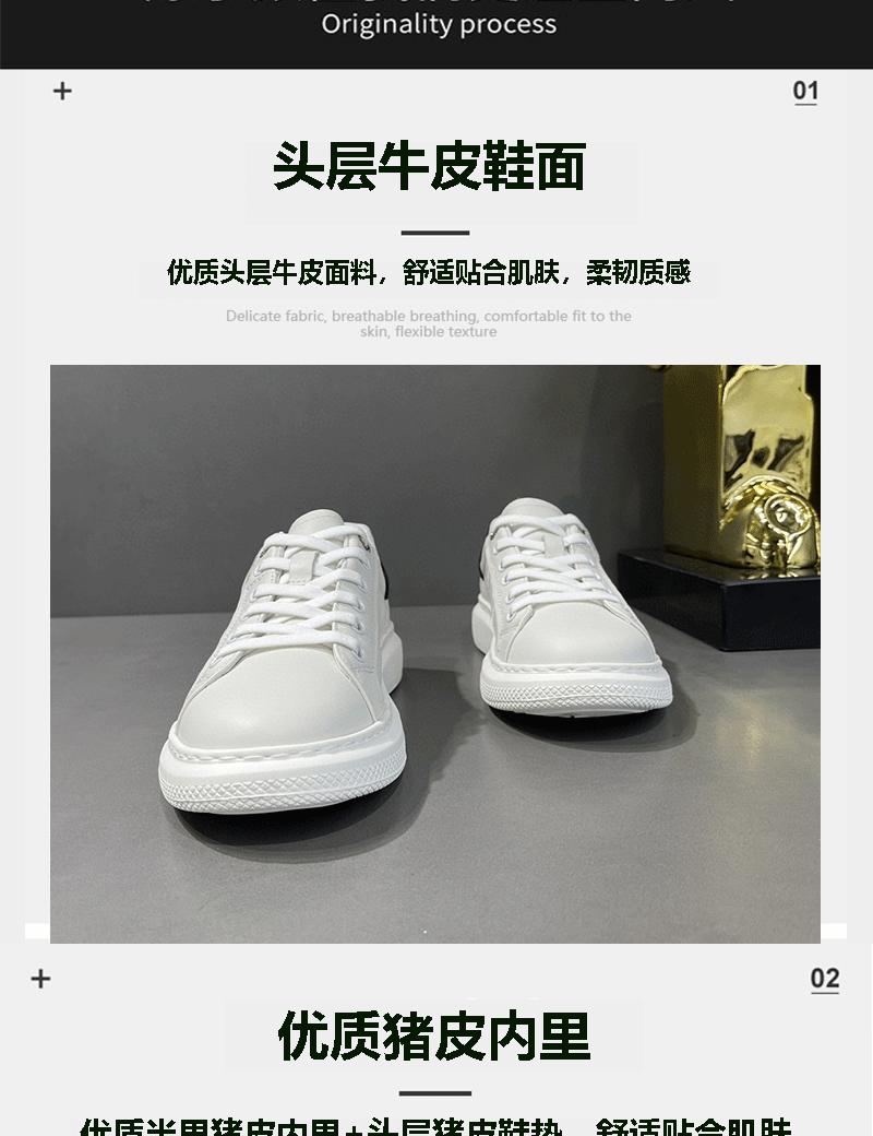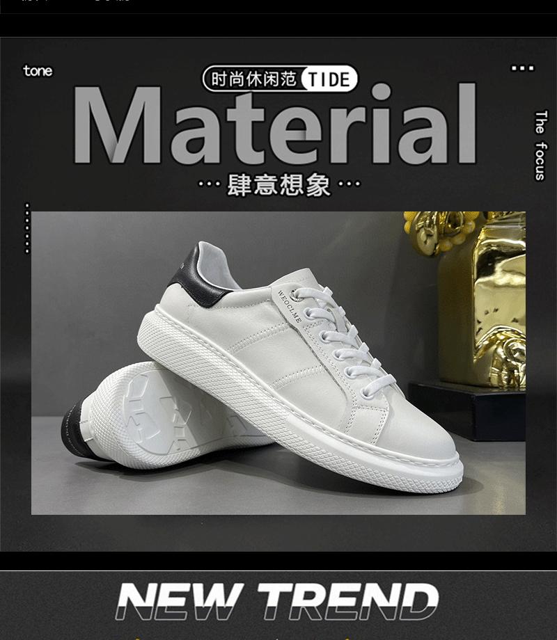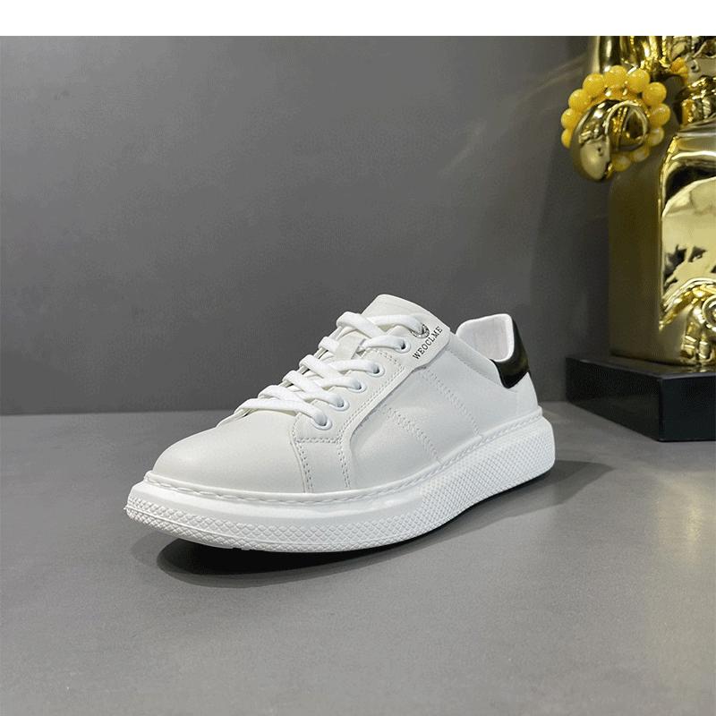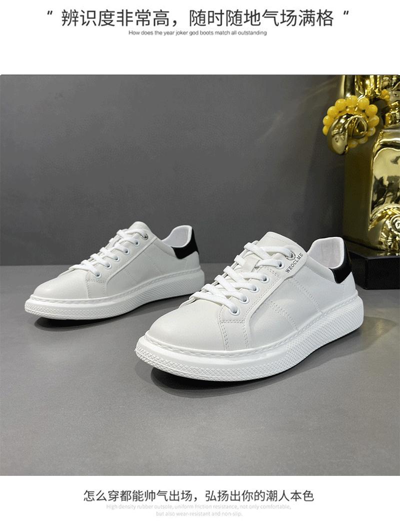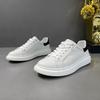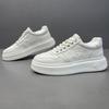 Zapatos de marca de moda para hombre, otoño 2024, nuevos zapatos blancos de cuero, zapatillas de suela gruesa de estilo coreano para hombre, zapatos casuales de moda.