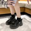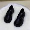 Zapatos de cuero negro estilo británico para mujer, mocasines retro con plataforma, primavera 2023