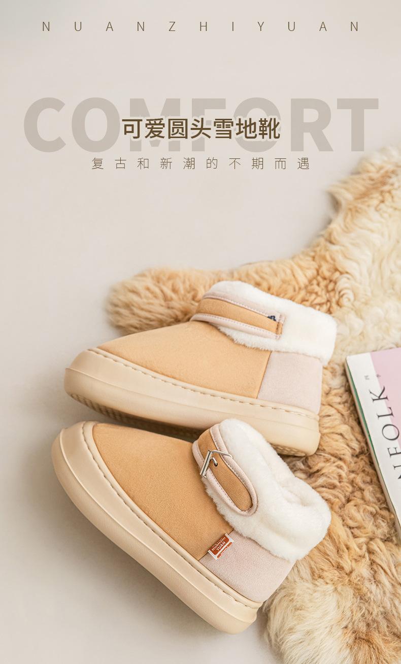 Borde cálido Forrado de vellón cálido Botas gruesas de algodón Moda de invierno para mujer Exterior Suela gruesa Antideslizante Corazón de niña Botas de nieve Zapatos de algodón
