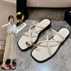 Verano 2020 Nuevo Estilo Coreano Estudiante Volantes Celebridad de Internet Moda Sandalias Planas Playa Una Línea Sandalias de Mujer
