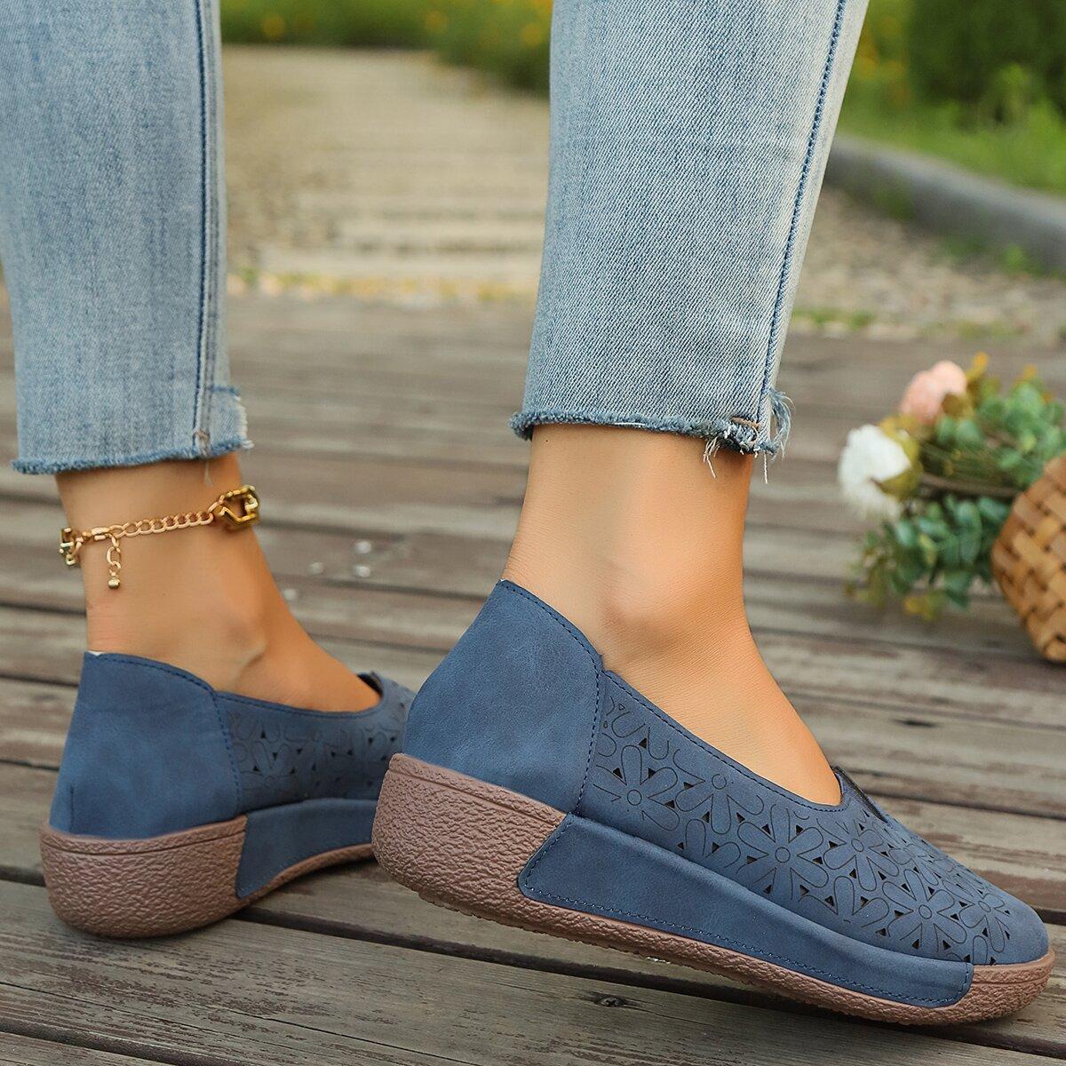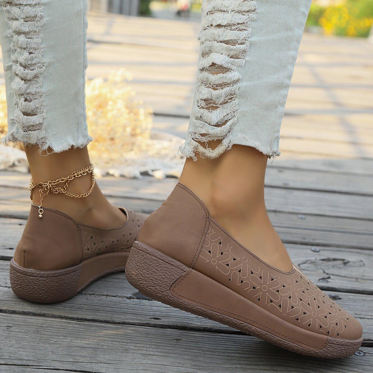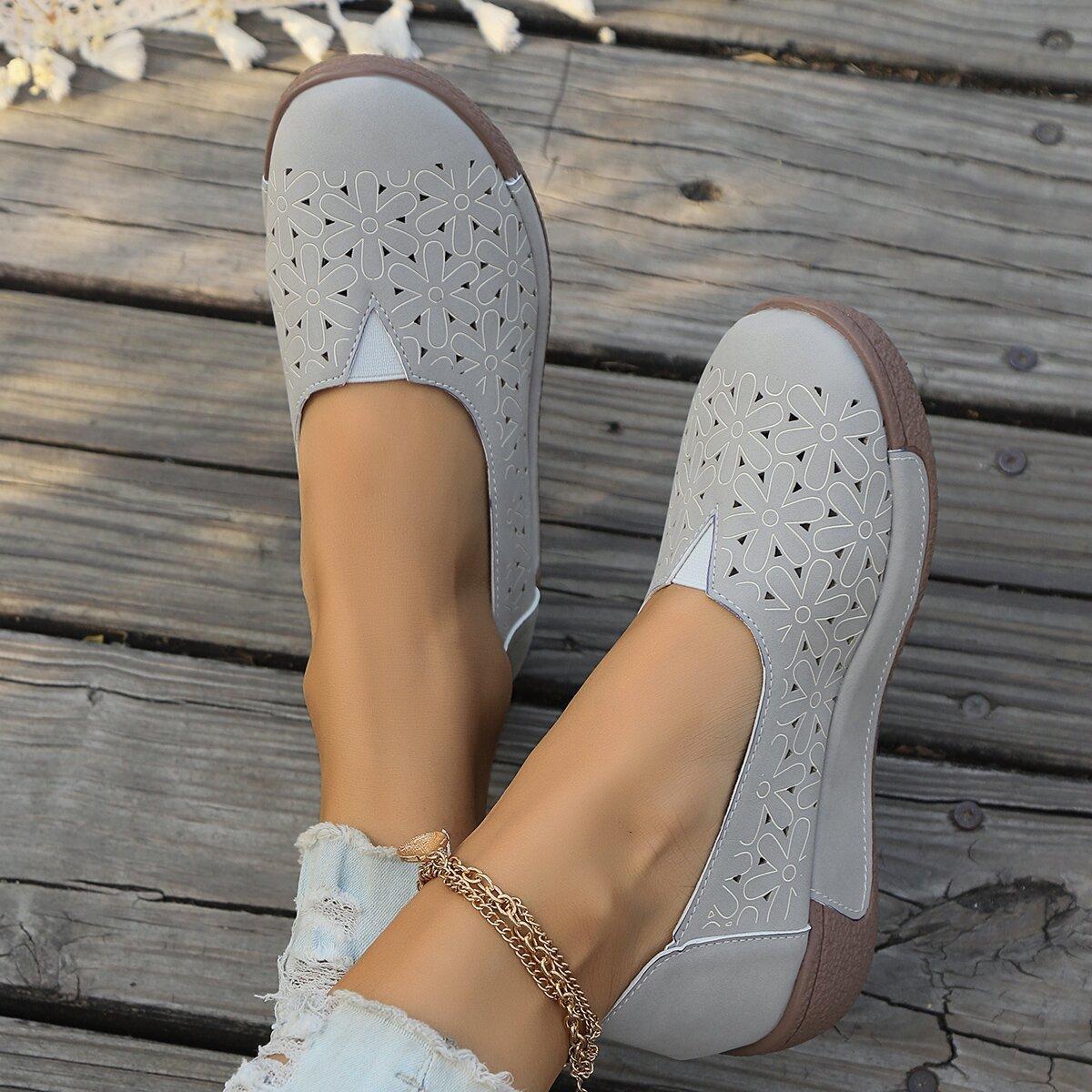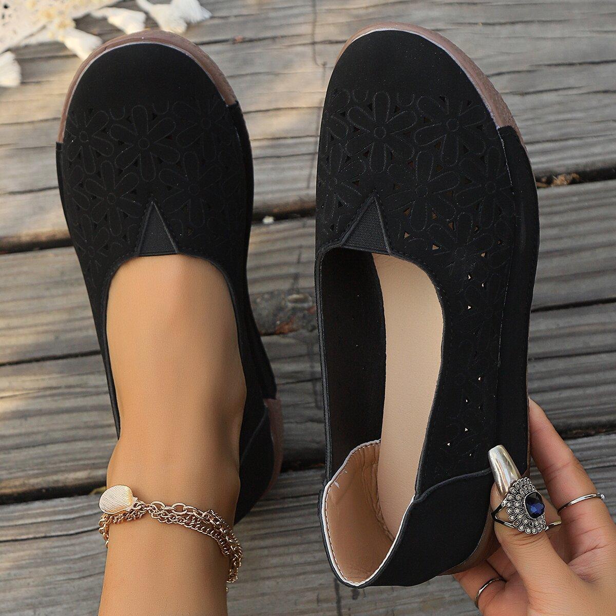 Comercio Exterior Zapatos Casuales Planos Huecos para Mujer 2024 Nuevos Transpirables Estilo Étnico Corte Bajo Talla Grande Slip-on Zapatos Perezosos