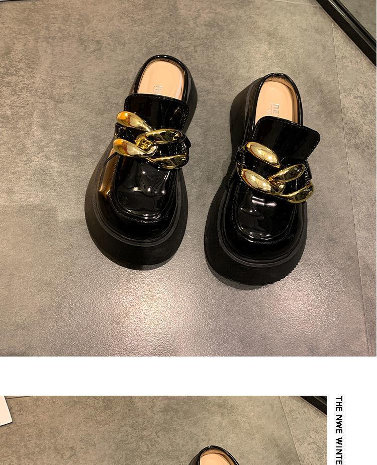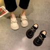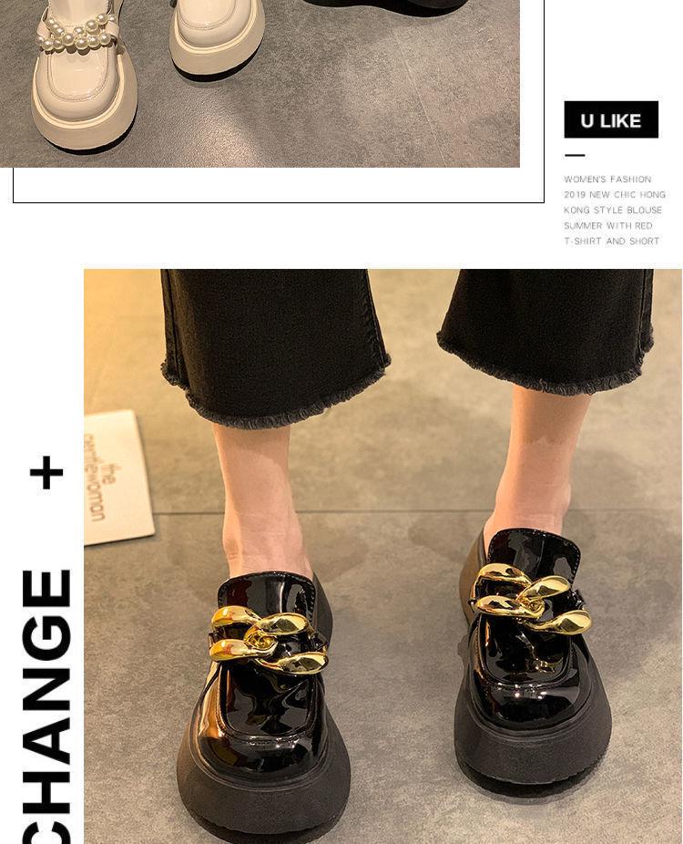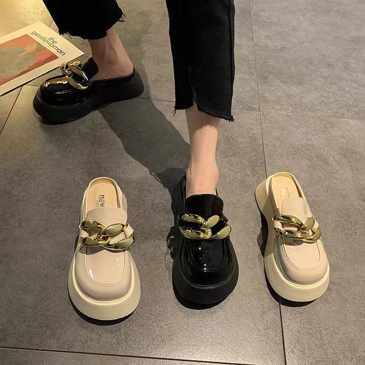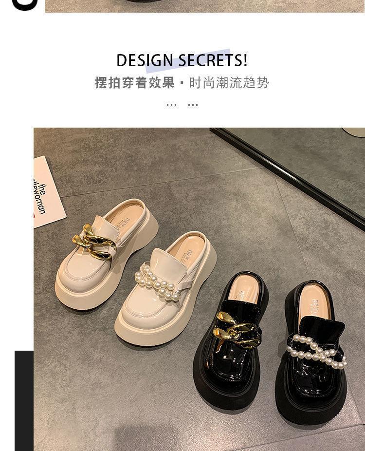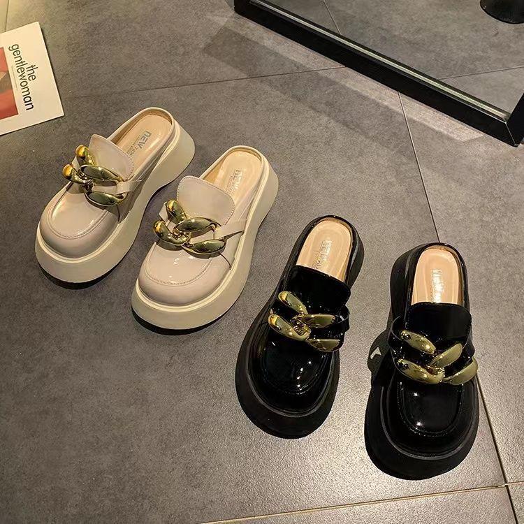 Pantuflas de punta cerrada para mujer verano 2022 nuevo estilo coreano estilo hada hebilla metálica de perlas suela gruesa punta redonda zapatos de cuero moda