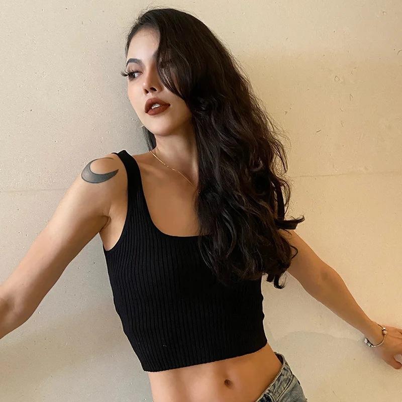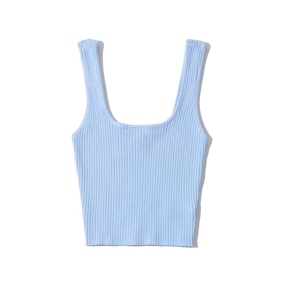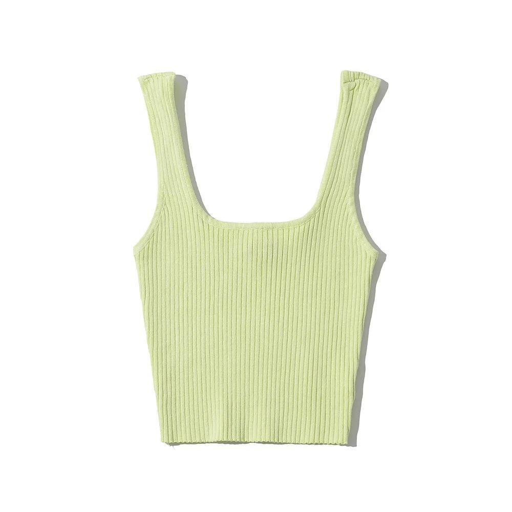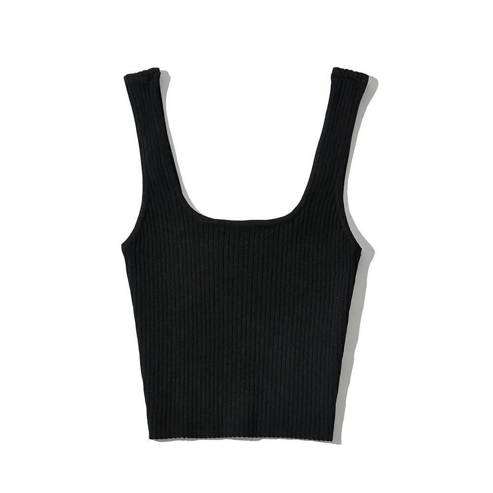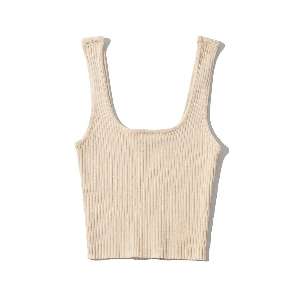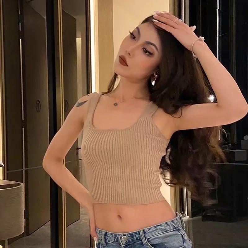 Chaleco de punto corto de color liso para mujer, novedad de primavera y verano de 2023, con cuello cuadrado, camisola corta sin mangas