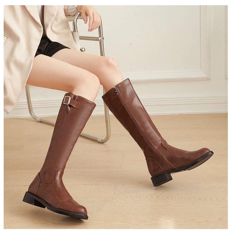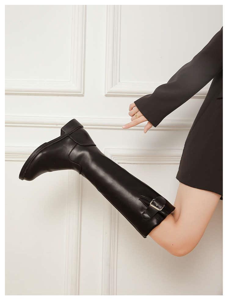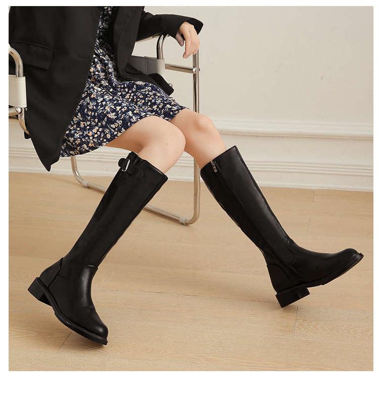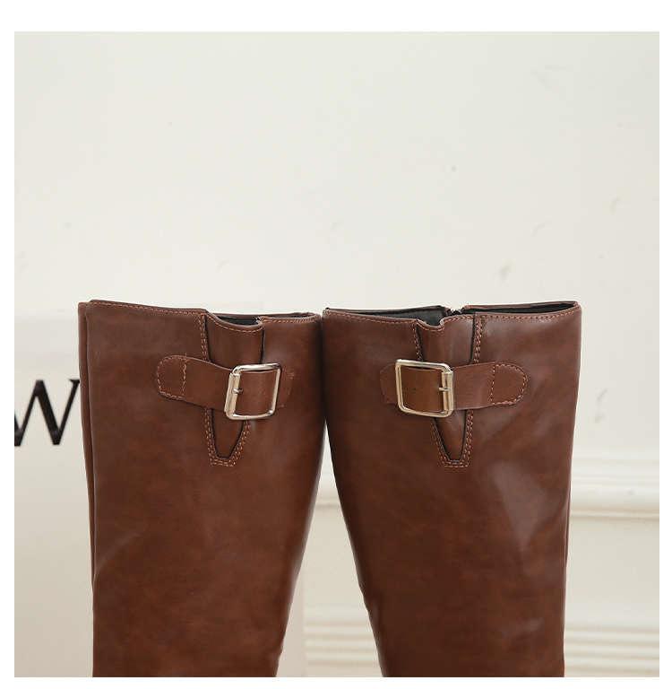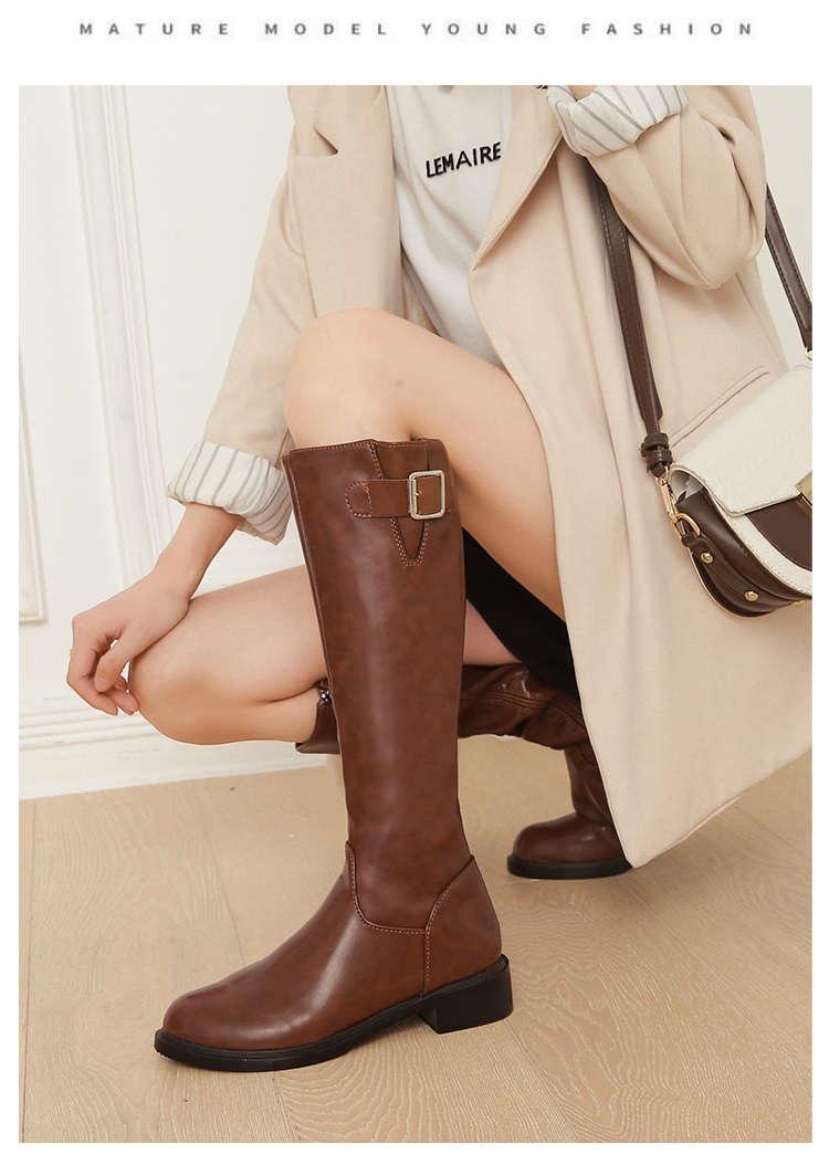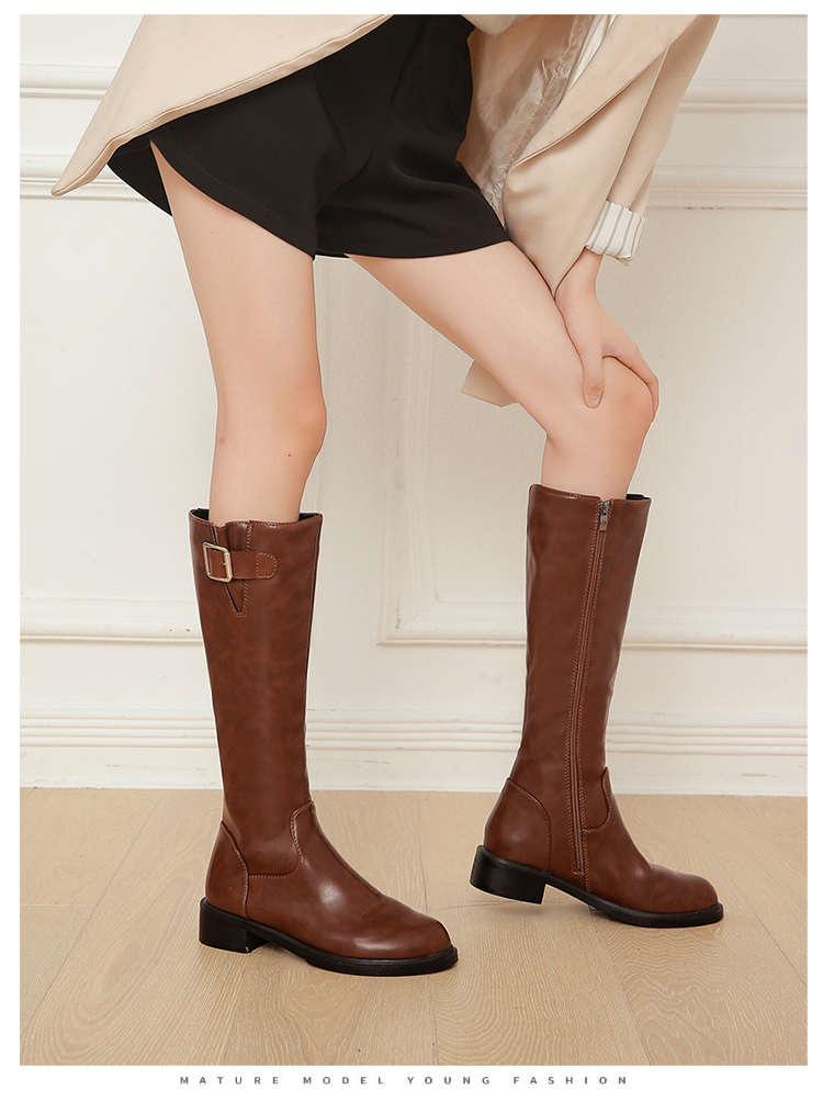 Botas de alta gama pero botas de caballero de tacón grueso que estilizan la rodilla 2024 otoño e invierno nuevas estilo británico retro botas altas para mujer