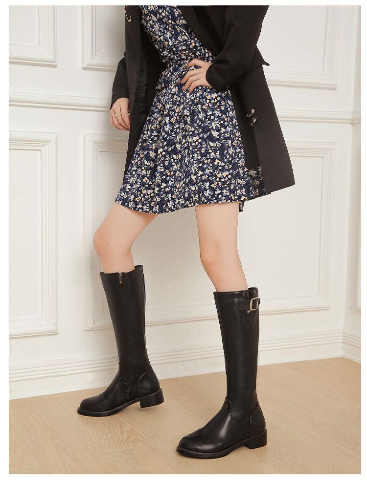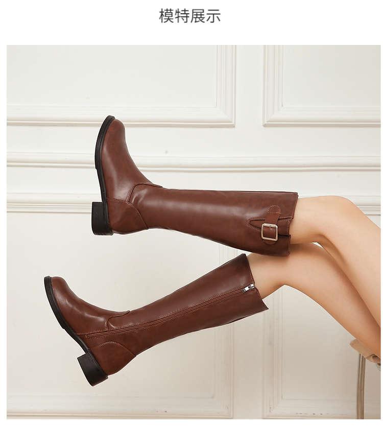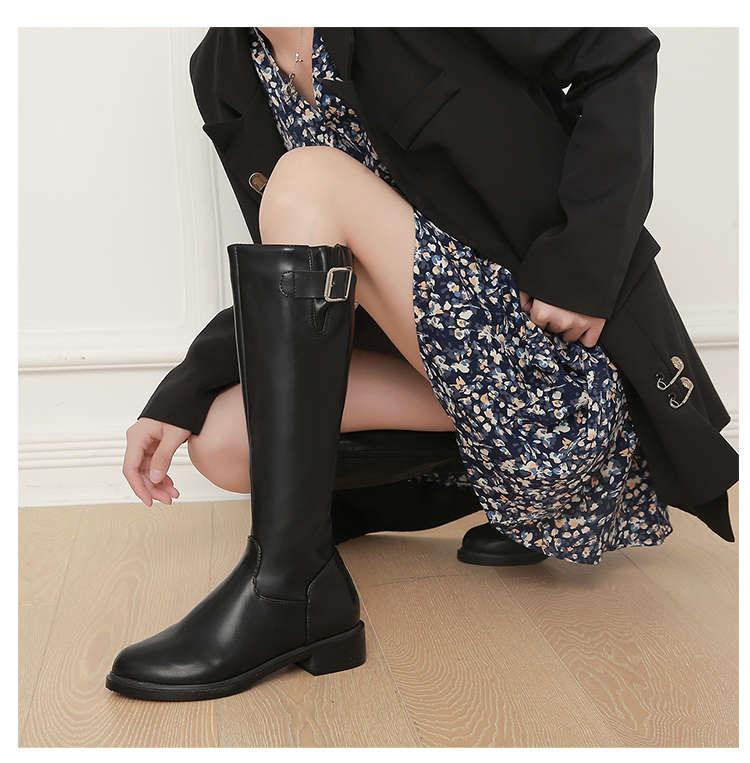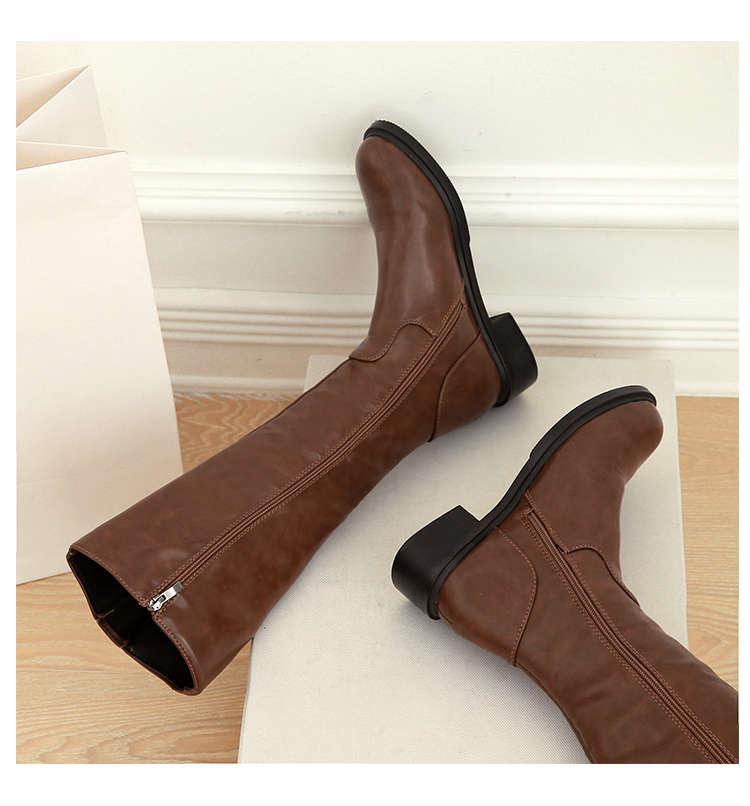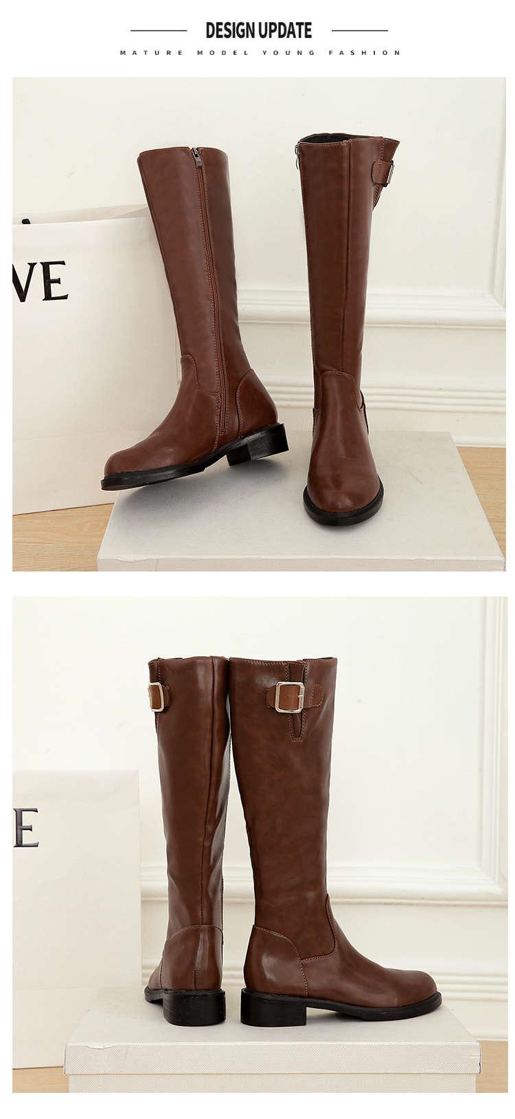 Botas de alta gama pero botas de caballero de tacón grueso que estilizan la rodilla 2024 otoño e invierno nuevas estilo británico retro botas altas para mujer